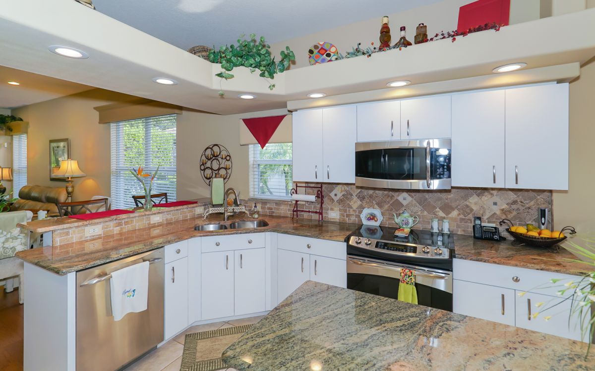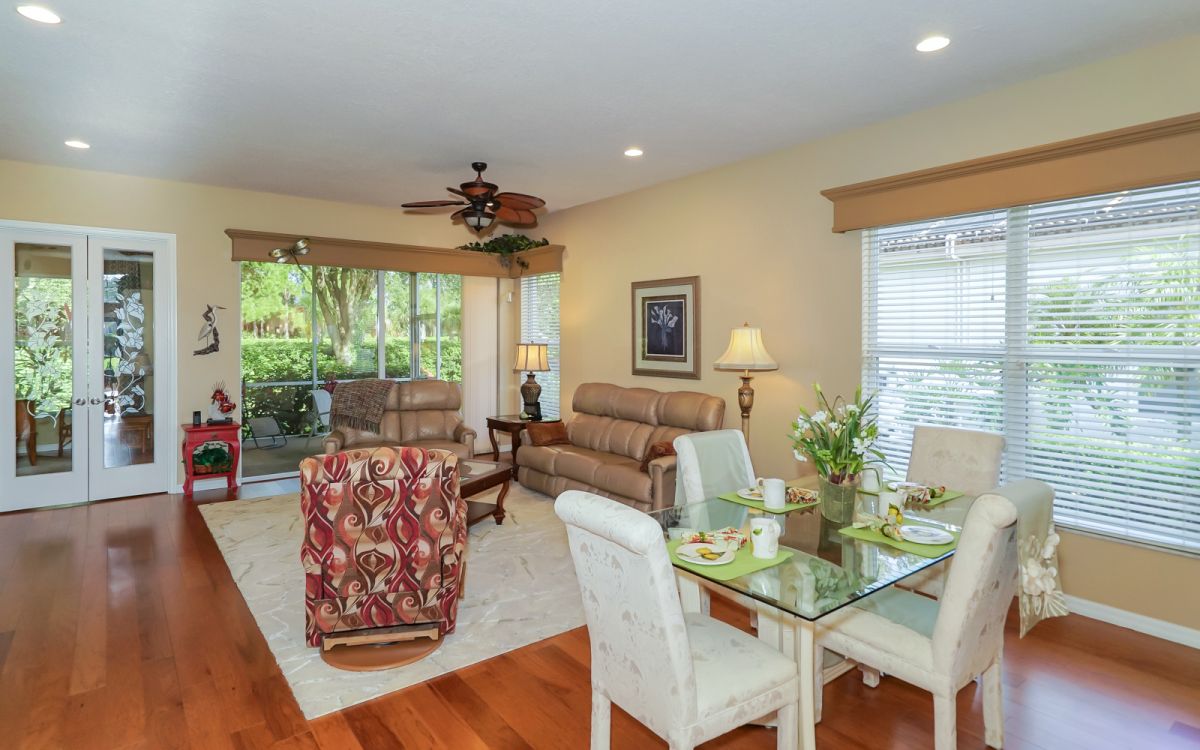 Beautiful Arthur Rutenberg built home in Ashley Oaks section of Tara Golf and Country Club. Two bedrooms and a den,Living/dining area. Beautifully decorated open floor plan, new hardwood floors, new carpet in over-sized bedrooms, newer kitchen with granite counters, stainless appliances, eat-in area with picture window, laundry room, 2 car attached garage, screened in lanai, perfectly landscaped low maintenance yard with new curbing around the gardens. House comes with full golf membership, dining, fitness center, community pool, tennis, pickle ball, bocce, sidewalks for walking, close to beaches and shopping.