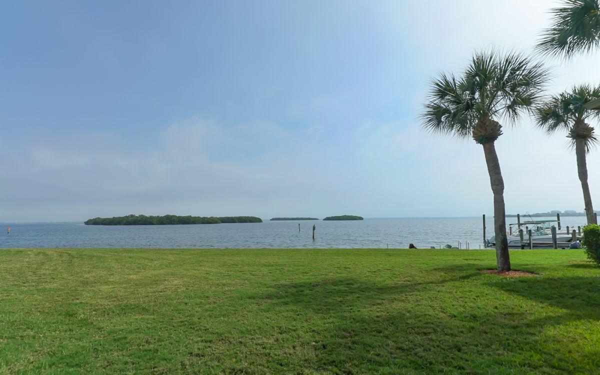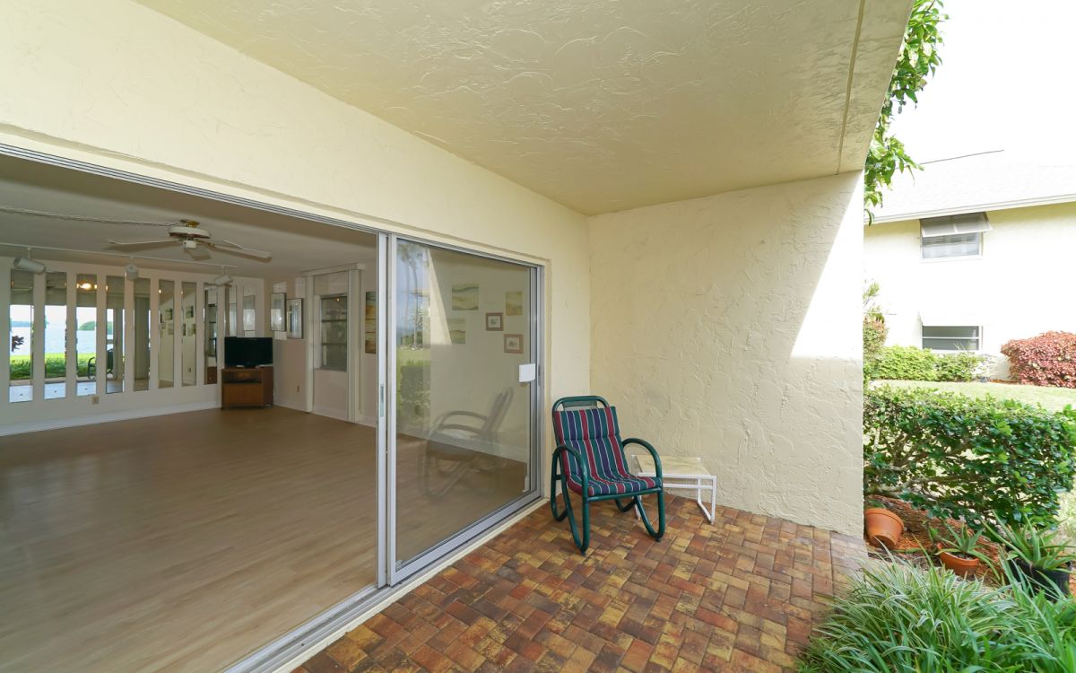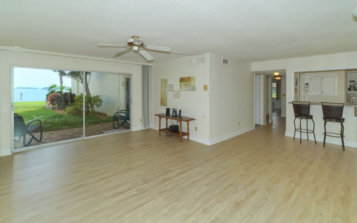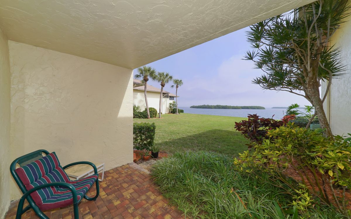 WATER VIEWS FROM EVERY ROOM. BRAND NEW LUXURY FLOORS. MUST SEE UPDATED PHOTOS. One in from the bayfront with direct bay view and deeded beach access, this 2-bedroom 2-bath condo is a desirable private GROUND FLOOR WALKOUT with a lovely paver brick patio, allowing quick access to the beautifully manicured grounds and waterfront. New high-quality luxury wood-look plank flooring has just been installed, and it looks great! The kitchen boasts a view of the lake, is opened up & the ceiling raised with newer cabinetry & barely-used appliances & inside laundry. Newly finished ceilings & high decorative wood baseboards installed throughout the condo. Air conditioning and water heater replaced in 2013. Just waiting for your personal touch & priced accordingly. Enjoy Florida sunrise views and steps to the boat docks and fishing pier right in front. Pelican Harbour is a beautifully landscaped Gulf-to-Bay community with deeded beach access, boat docks ($20 per foot per year) on deep sailboat water, fishing pier, heated pool, 2 tennis courts, kayak/canoe storage & launch, separate storage lockers, and fully-funded reserves. Pet-friendly and on-site manager. MAKE AN OFFER TODAY and start enjoying the Florida coastal lifestyle!