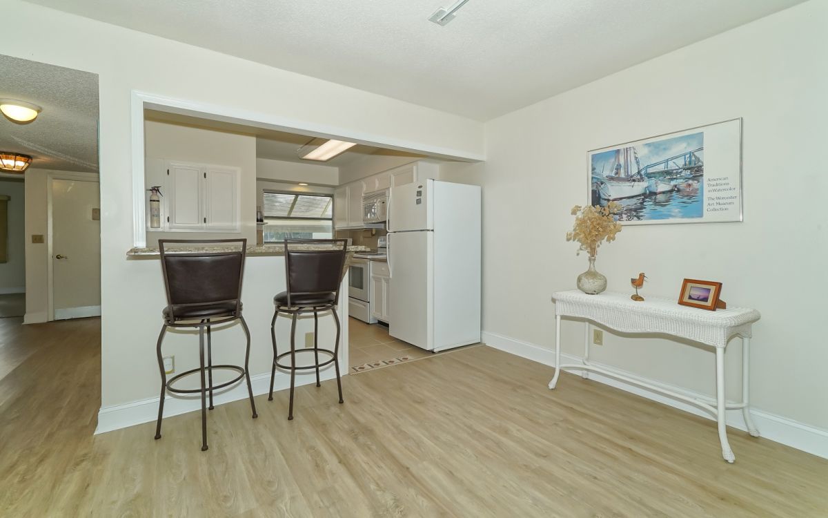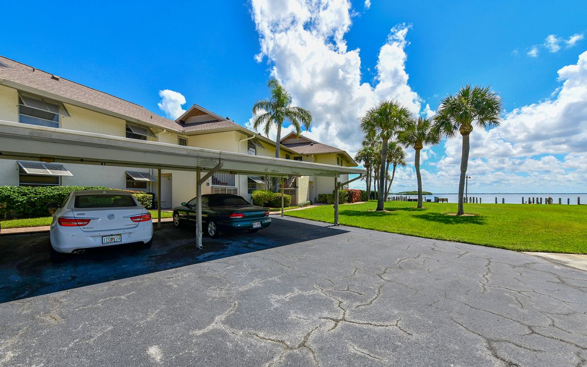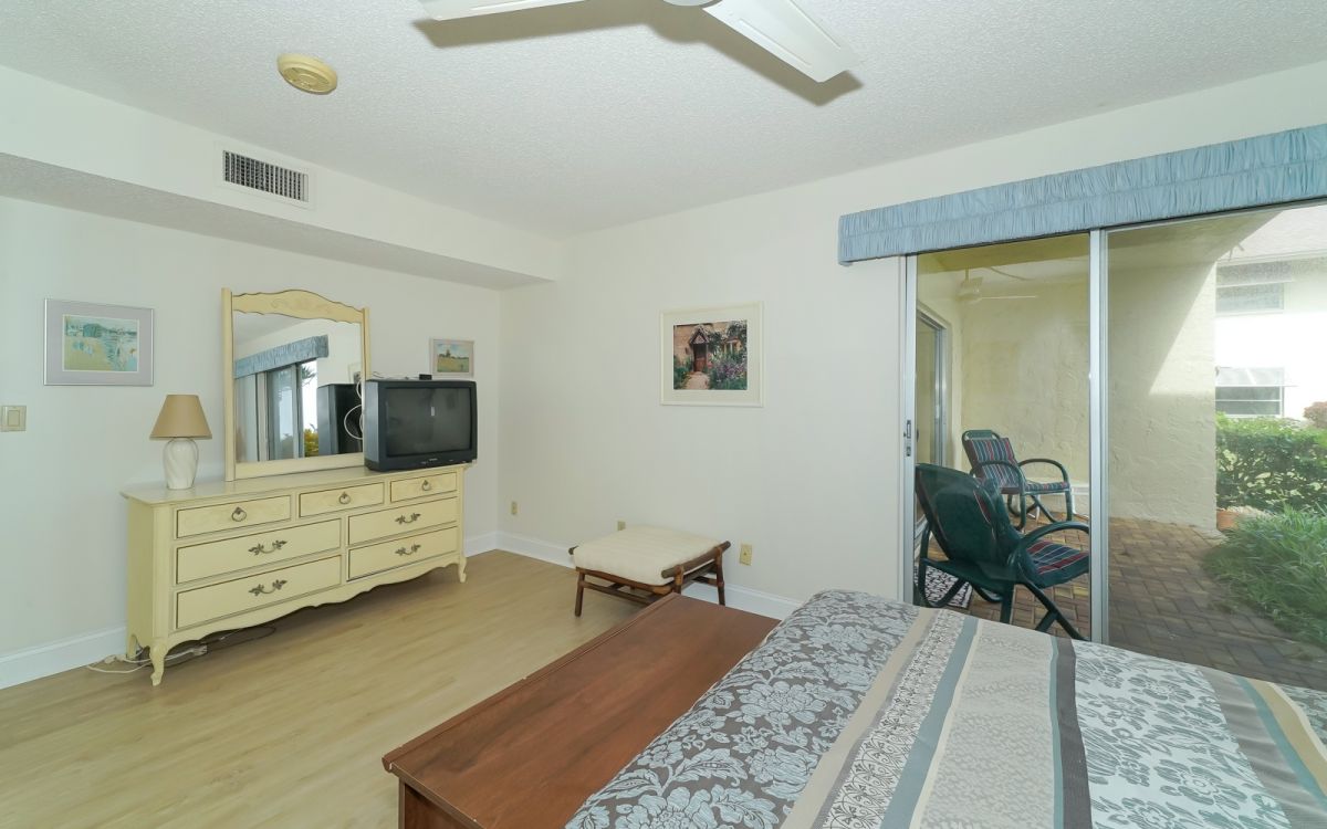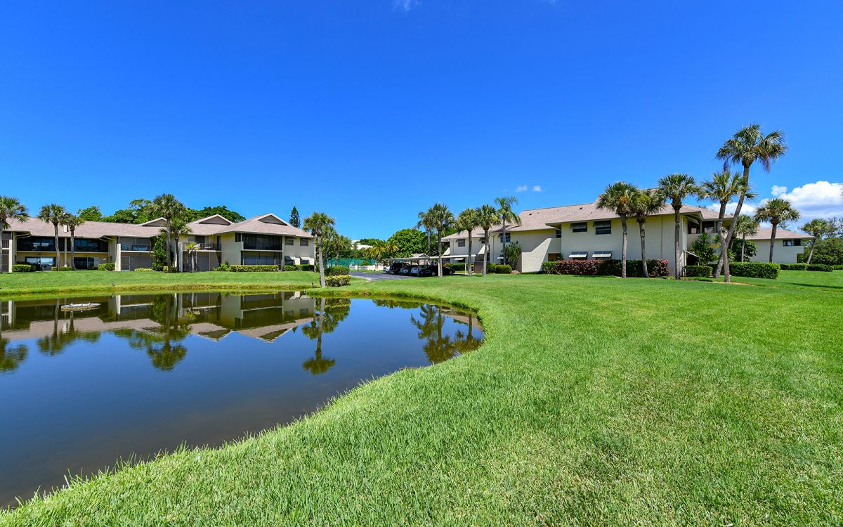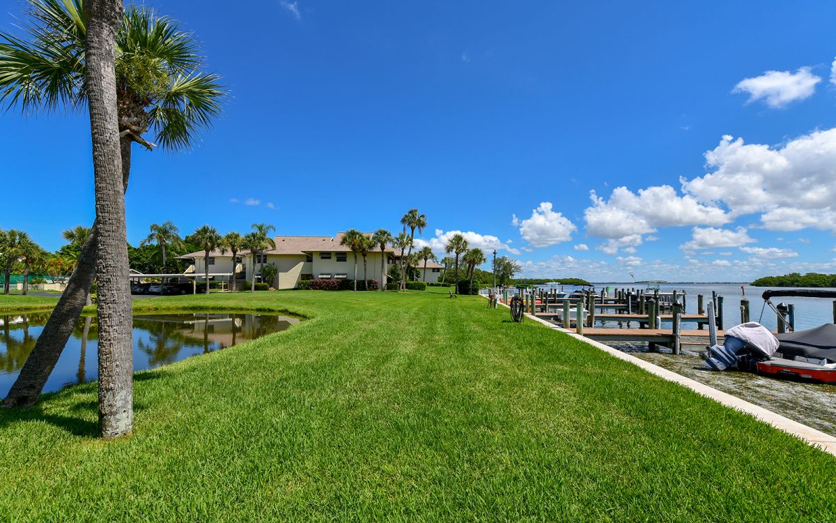 WATER VIEWS FROM EVERY ROOM. BRAND NEW LUXURY FLOORS. MUST SEE UPDATED PHOTOS. One in from the bayfront with direct bay view and deeded beach access, this 2-bedroom 2-bath condo is a desirable private GROUND FLOOR WALKOUT with a lovely paver brick patio, allowing quick access to the beautifully manicured grounds and waterfront. New high-quality luxury wood-look plank flooring has just been installed, and it looks great! The kitchen boasts a view of the lake, is opened up & the ceiling raised with newer cabinetry & barely-used appliances & inside laundry. Newly finished ceilings & high decorative wood baseboards installed throughout the condo. Air conditioning and water heater replaced in 2013. Just waiting for your personal touch & priced accordingly. Enjoy Florida sunrise views and steps to the boat docks and fishing pier right in front. Pelican Harbour is a beautifully landscaped Gulf-to-Bay community with deeded beach access, boat docks ($20 per foot per year) on deep sailboat water, fishing pier, heated pool, 2 tennis courts, kayak/canoe storage & launch, separate storage lockers, and fully-funded reserves. Pet-friendly and on-site manager. MAKE AN OFFER TODAY and start enjoying the Florida coastal lifestyle!