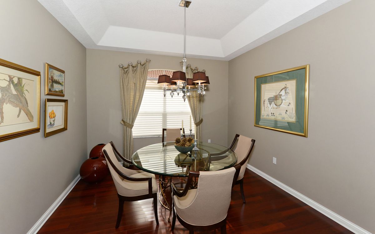 This maintenance free home in Laurel Oak Estates is located on a corner lot with beautiful nature views. Sit in the glass screen enclosed lanai and watch the deer walk about in your backyard. The home features Brazilian Cherry hardwood floors in the living areas as well as tile floors in the bathrooms. The kitchen has a breakfast counter as well as an area for a table. The home also has a full office, with a closet, so it may be used as a third bedroom. The master bedroom is large, and the master bath is handicap friendly. The two-car garage has space for a golf cart in addition to the cars. Laurel Oak Country Club has two 18-hole golf courses, 12 Har-Tru tennis courts and a heated swimming pool. A separate membership is required. The furniture is available under a separate contract.