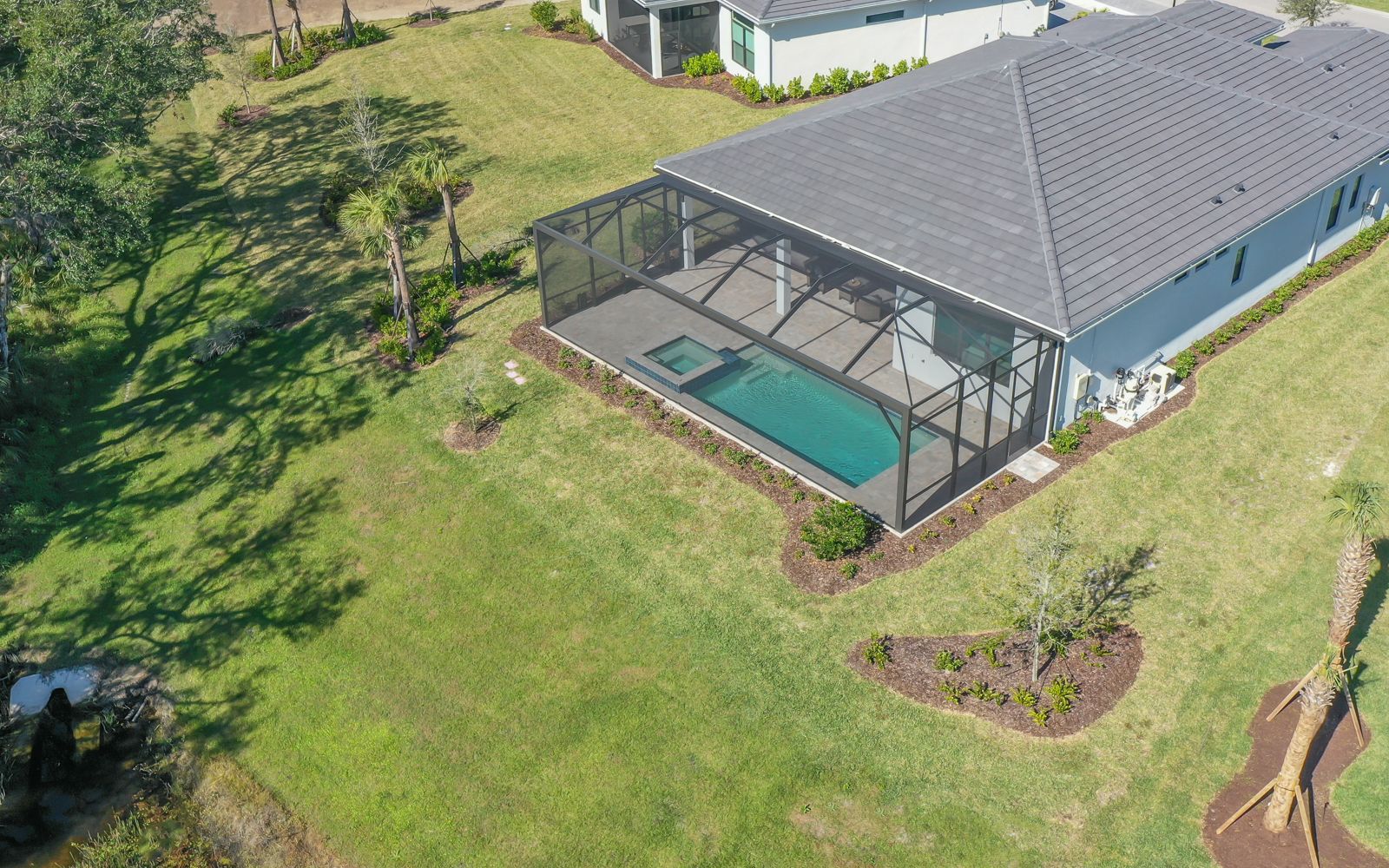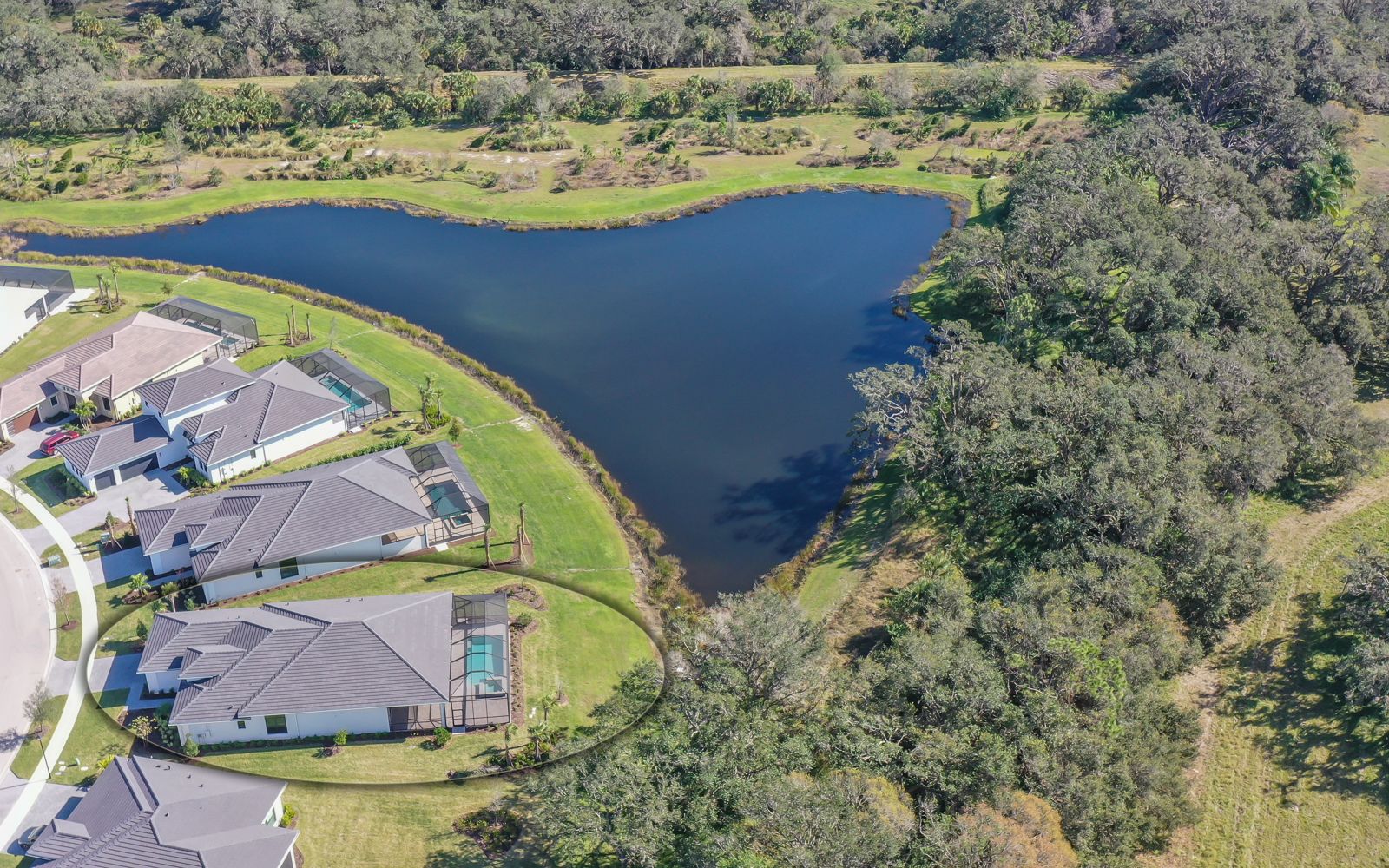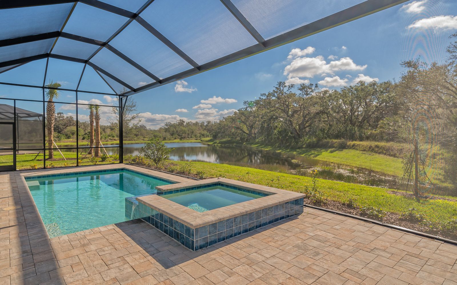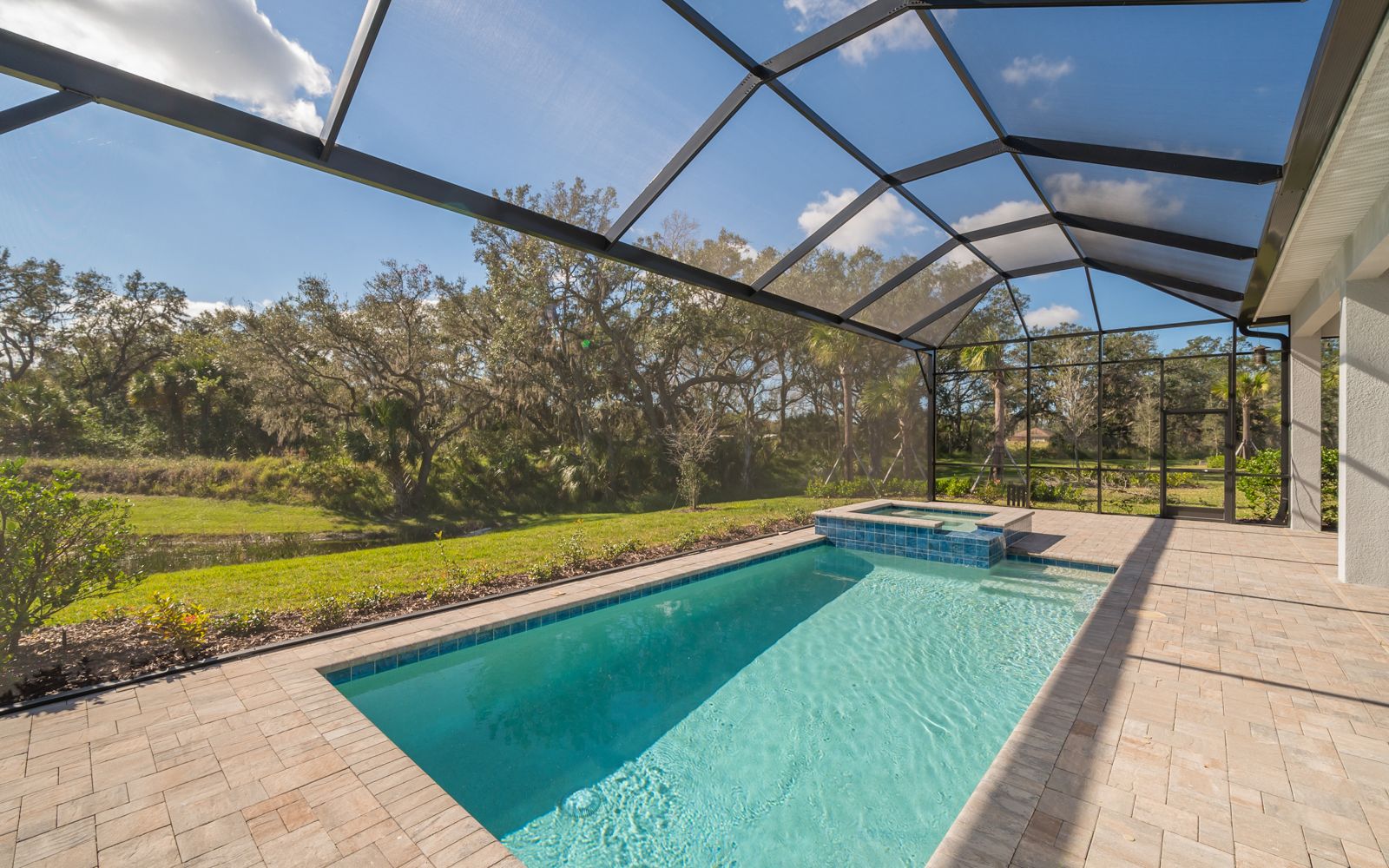 Why wait for your new home! Rarely available in Artistry Sarasota, this Van Gogh floor plan has been greatly enhanced by the owner. A true 3 bedroom / 3 full bath home that sits perfectly on an expansive lot with lake and preserve views. This residence has been constructed for your comfort with impact resistant doors and windows and a whole house water softener. The double door entry with waterfall glass opens to a generous foyer with large format porcelain tile. The adjacent den with its calm wall colors and custom-built ins is enhanced by a dry bar and beverage cooler. Open, light and bright describes the dining and great room combination. The herringbone feature wall in the great room lends a craftsman finish to the space along with the double crown molding that wraps the interior of the home. Transoms above the sliders that lead to the heated pool and spa let the sunlight in, while the clear view screen on the pool cage makes you feel open to the outdoors. A beautiful paver deck with pebble tec pool interior creates an inviting space for an afternoon swim. Inside, the kitchen offers an upgraded stainless appliance package, quartz countertops, a neutral high gloss backsplash and custom built in pantry. The primary bedroom is expansive with a large walk-in closet, lengthy bathroom quartz top vanity with two sinks, plenty of cabinetry and drawer space, linen closet and walk in shower with multiple shower heads. Artistry Sarasota residents enjoy access to a resident-exclusive clubhouse that includes a full fitness center with yoga and aerobics studio, resort-style pool, expansive poolside sun deck, community room, playground and sports courts. Outdoor amenities include covered outdoor seating areas and walking trails. A natural gas community, Artistry has no CDD fee and low monthly fees that include ground maintenance. Located in a quiet but convenient part of Sarasota, you are minutes from downtown, our beautiful beaches and all the convenience and events of Lakewood Ranch.