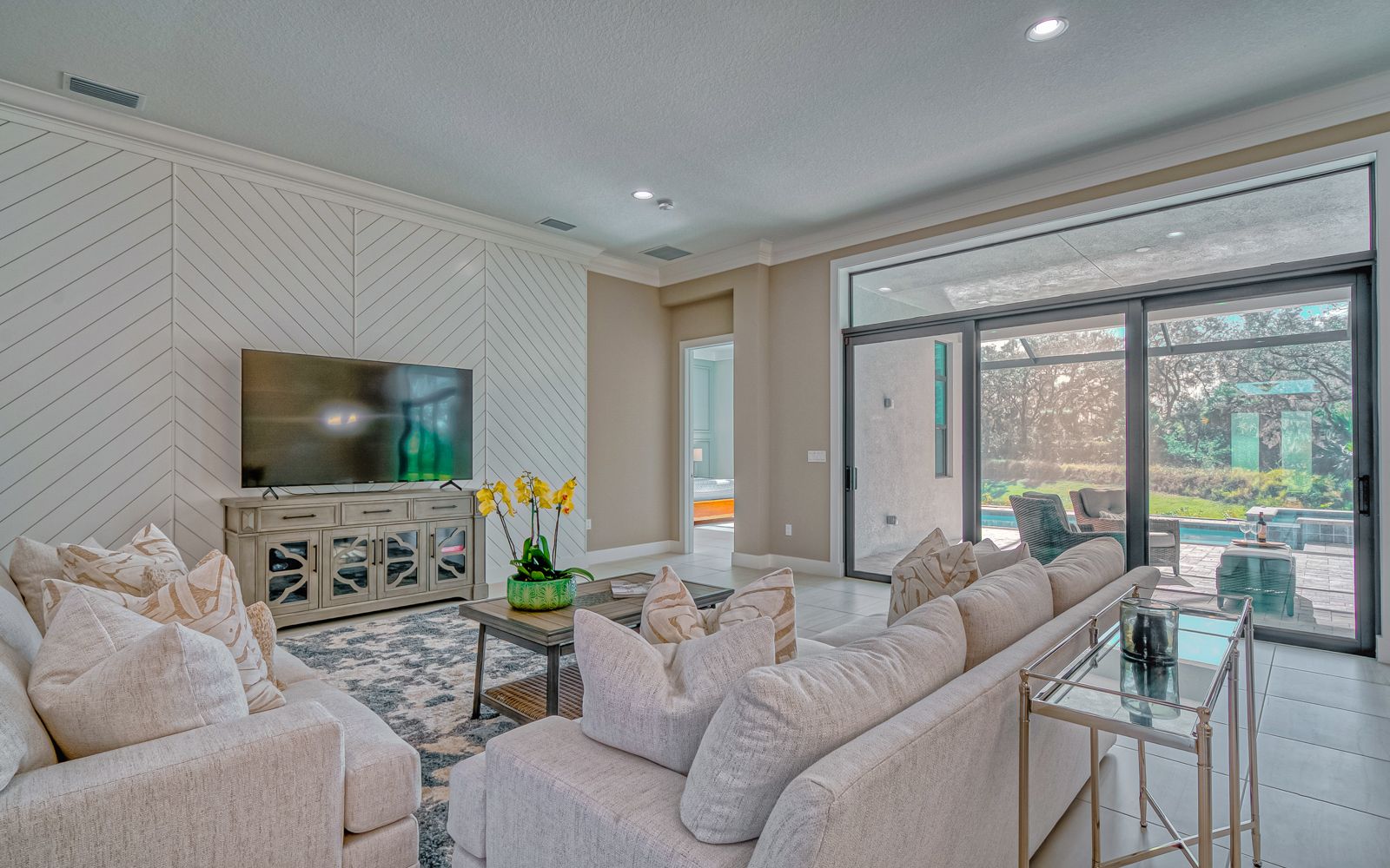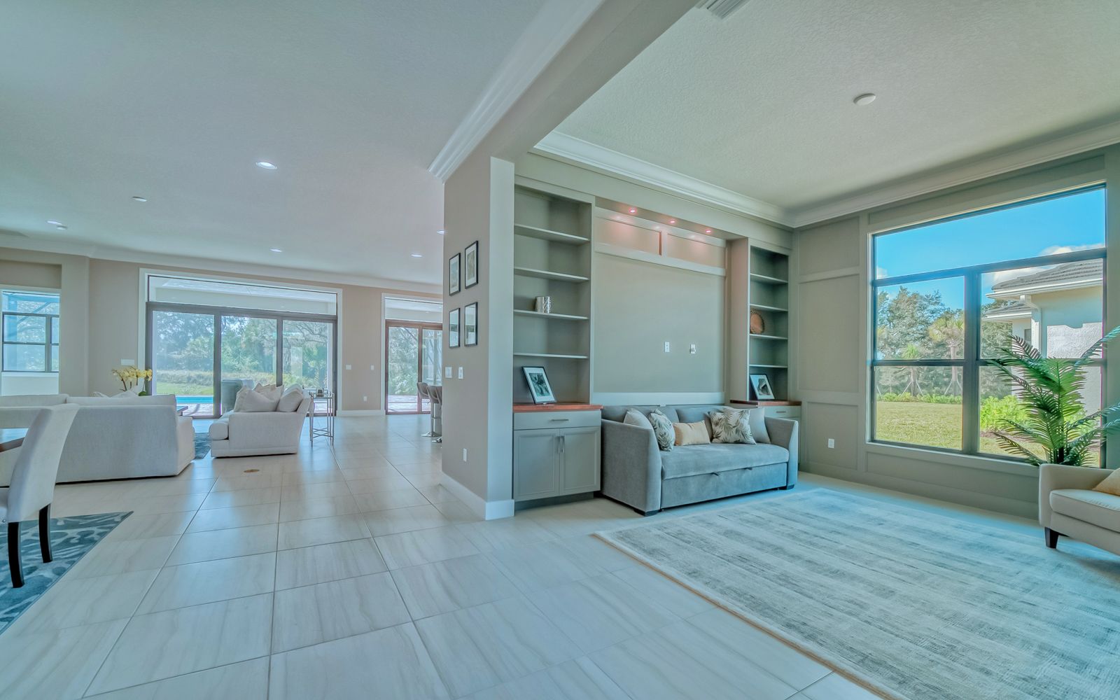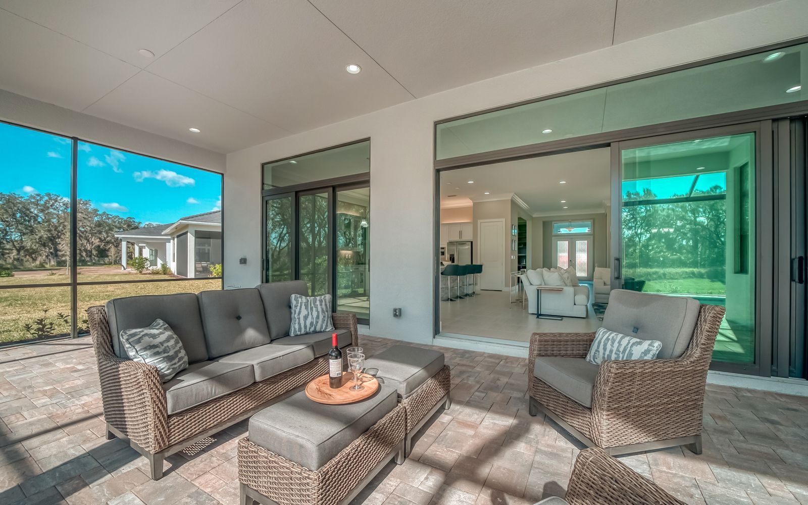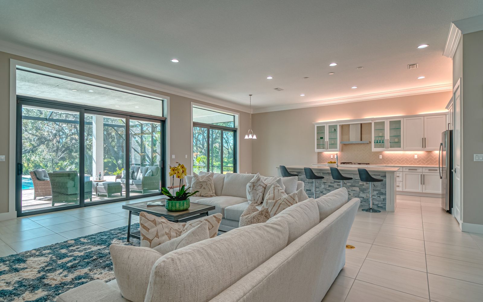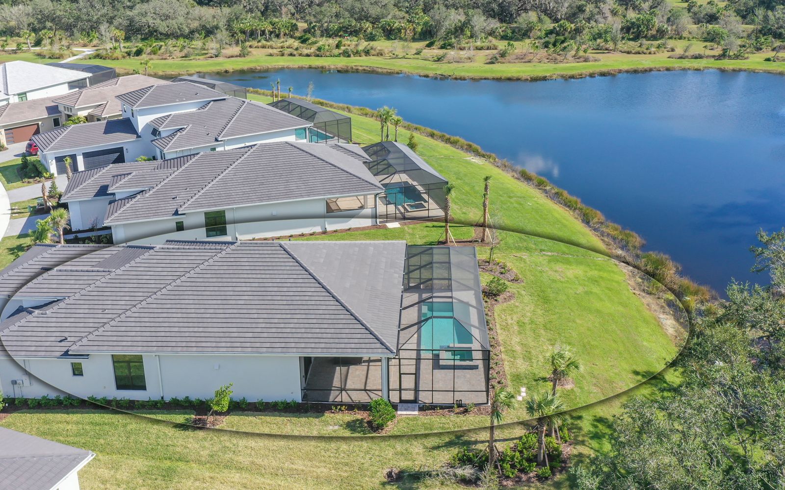 Why wait for your new home! Rarely available in Artistry Sarasota, this Van Gogh floor plan has been greatly enhanced by the owner. A true 3 bedroom / 3 full bath home that sits perfectly on an expansive lot with lake and preserve views. This residence has been constructed for your comfort with impact resistant doors and windows and a whole house water softener. The double door entry with waterfall glass opens to a generous foyer with large format porcelain tile. The adjacent den with its calm wall colors and custom-built ins is enhanced by a dry bar and beverage cooler. Open, light and bright describes the dining and great room combination. The herringbone feature wall in the great room lends a craftsman finish to the space along with the double crown molding that wraps the interior of the home. Transoms above the sliders that lead to the heated pool and spa let the sunlight in, while the clear view screen on the pool cage makes you feel open to the outdoors. A beautiful paver deck with pebble tec pool interior creates an inviting space for an afternoon swim. Inside, the kitchen offers an upgraded stainless appliance package, quartz countertops, a neutral high gloss backsplash and custom built in pantry. The primary bedroom is expansive with a large walk-in closet, lengthy bathroom quartz top vanity with two sinks, plenty of cabinetry and drawer space, linen closet and walk in shower with multiple shower heads. Artistry Sarasota residents enjoy access to a resident-exclusive clubhouse that includes a full fitness center with yoga and aerobics studio, resort-style pool, expansive poolside sun deck, community room, playground and sports courts. Outdoor amenities include covered outdoor seating areas and walking trails. A natural gas community, Artistry has no CDD fee and low monthly fees that include ground maintenance. Located in a quiet but convenient part of Sarasota, you are minutes from downtown, our beautiful beaches and all the convenience and events of Lakewood Ranch.