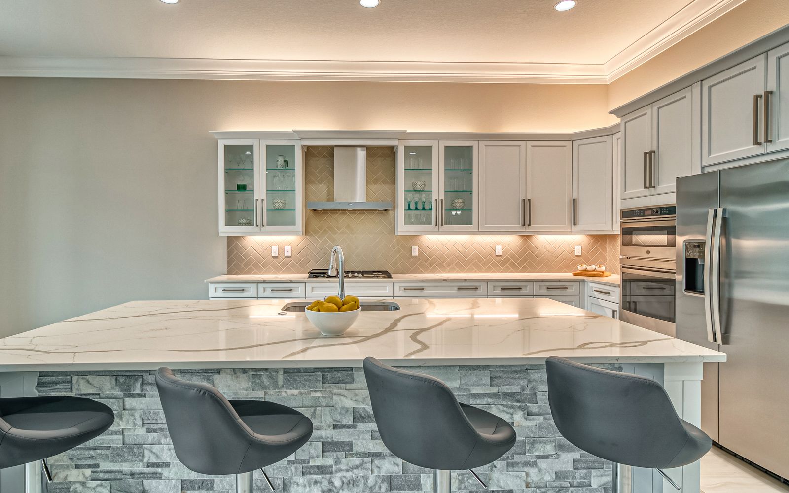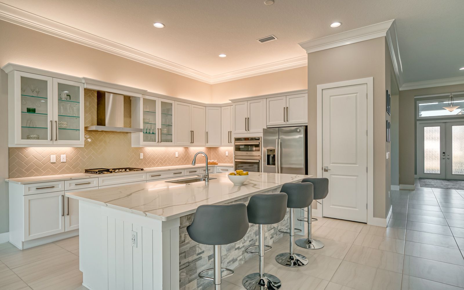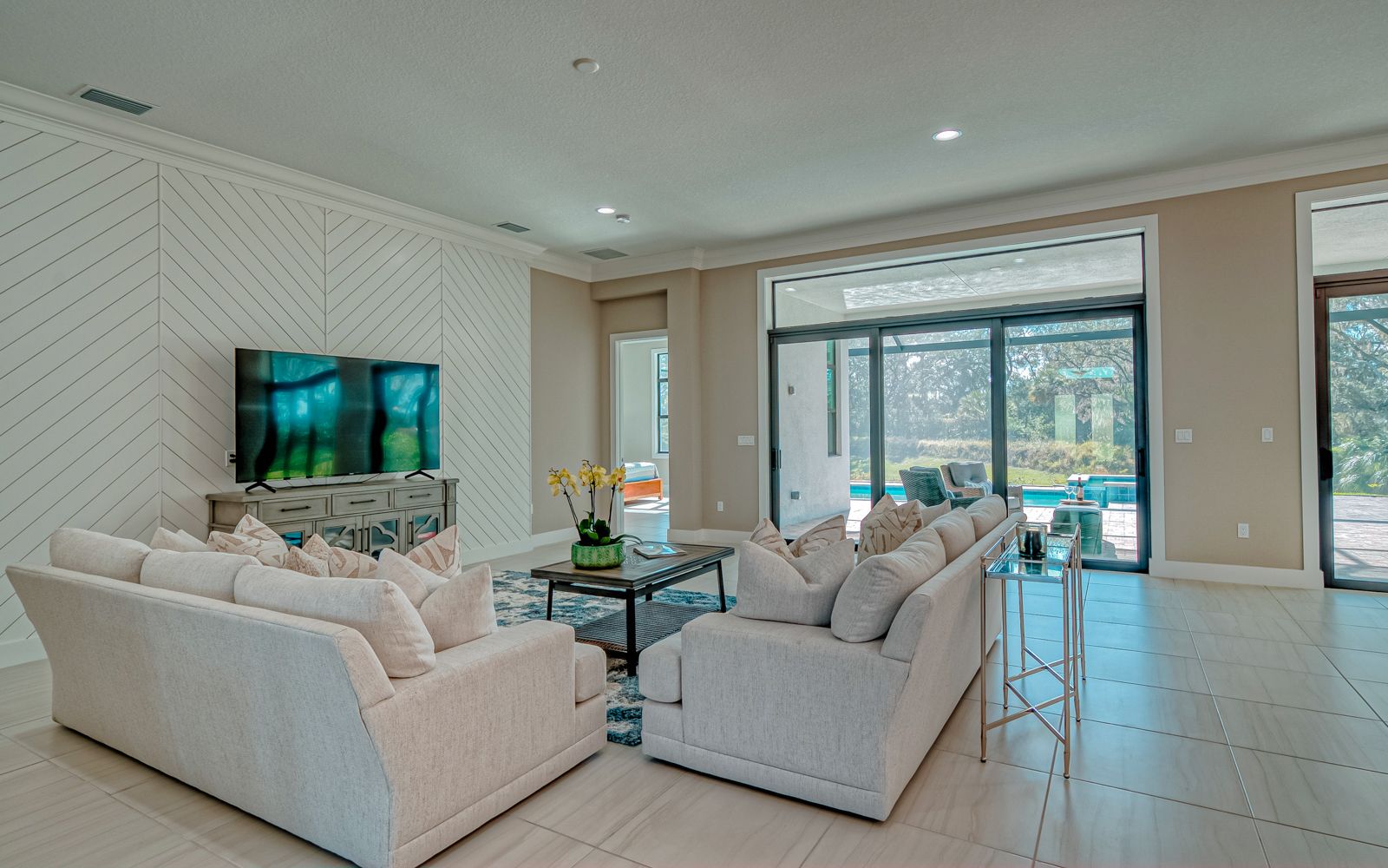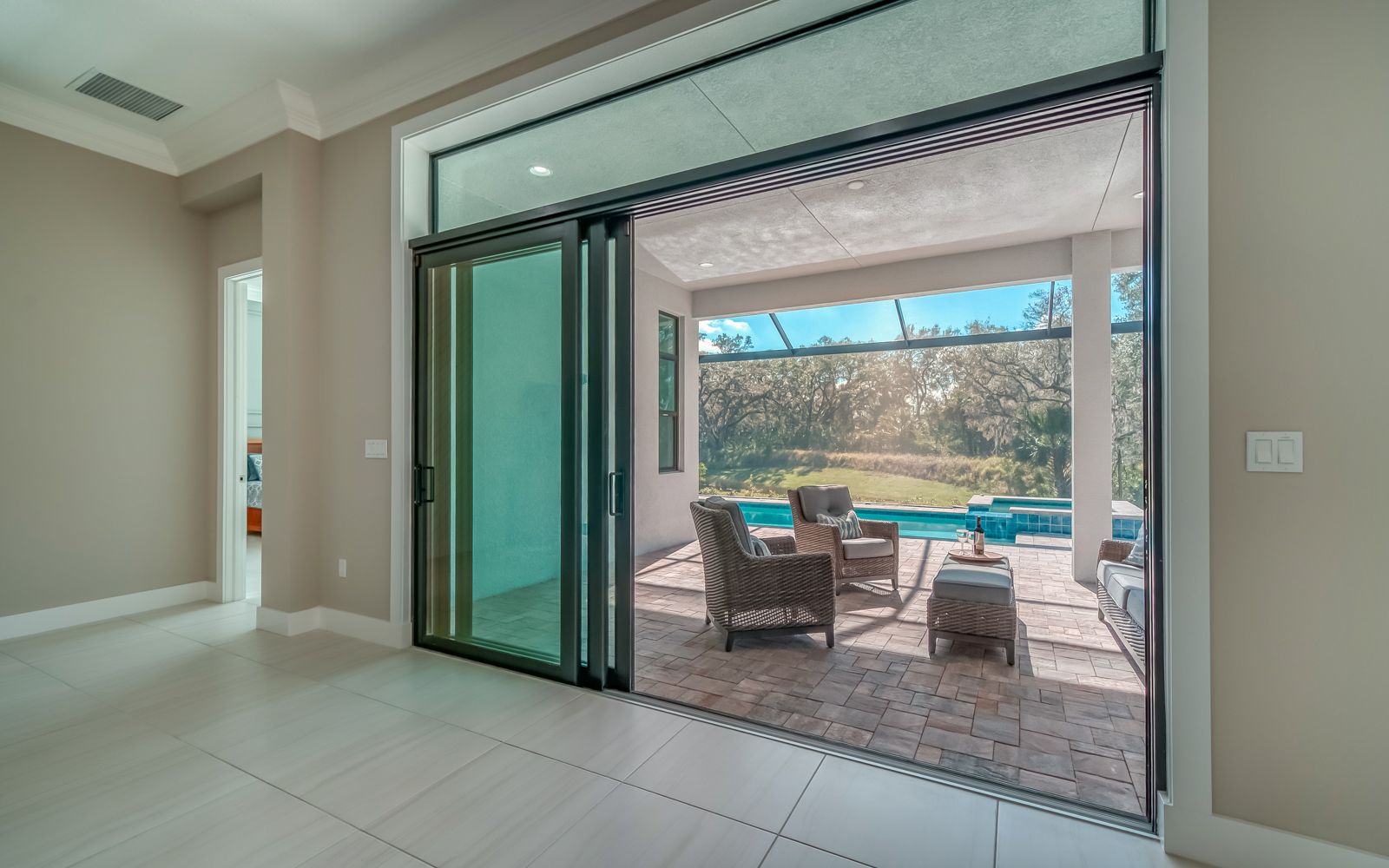 Why wait for your new home! Rarely available in Artistry Sarasota, this Van Gogh floor plan has been greatly enhanced by the owner. A true 3 bedroom / 3 full bath home that sits perfectly on an expansive lot with lake and preserve views. This residence has been constructed for your comfort with impact resistant doors and windows and a whole house water softener. The double door entry with waterfall glass opens to a generous foyer with large format porcelain tile. The adjacent den with its calm wall colors and custom-built ins is enhanced by a dry bar and beverage cooler. Open, light and bright describes the dining and great room combination. The herringbone feature wall in the great room lends a craftsman finish to the space along with the double crown molding that wraps the interior of the home. Transoms above the sliders that lead to the heated pool and spa let the sunlight in, while the clear view screen on the pool cage makes you feel open to the outdoors. A beautiful paver deck with pebble tec pool interior creates an inviting space for an afternoon swim. Inside, the kitchen offers an upgraded stainless appliance package, quartz countertops, a neutral high gloss backsplash and custom built in pantry. The primary bedroom is expansive with a large walk-in closet, lengthy bathroom quartz top vanity with two sinks, plenty of cabinetry and drawer space, linen closet and walk in shower with multiple shower heads. Artistry Sarasota residents enjoy access to a resident-exclusive clubhouse that includes a full fitness center with yoga and aerobics studio, resort-style pool, expansive poolside sun deck, community room, playground and sports courts. Outdoor amenities include covered outdoor seating areas and walking trails. A natural gas community, Artistry has no CDD fee and low monthly fees that include ground maintenance. Located in a quiet but convenient part of Sarasota, you are minutes from downtown, our beautiful beaches and all the convenience and events of Lakewood Ranch.