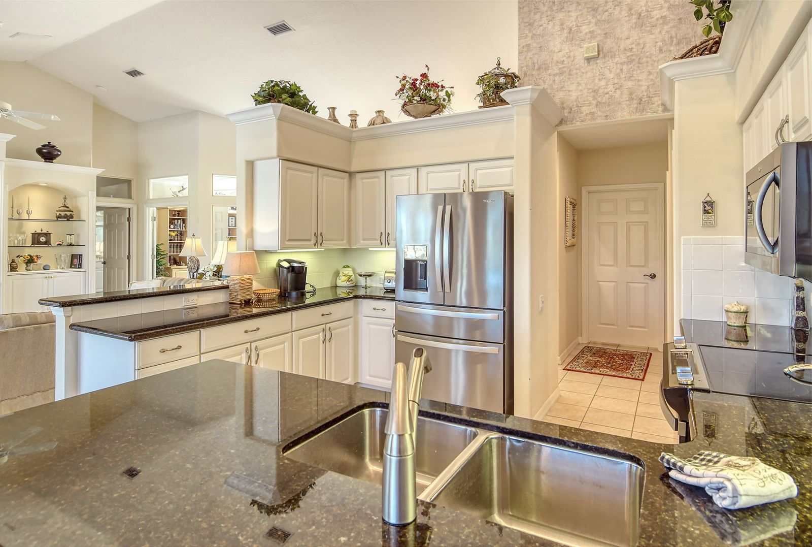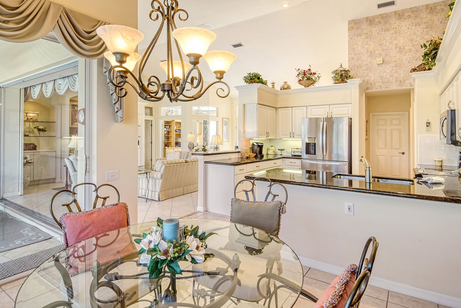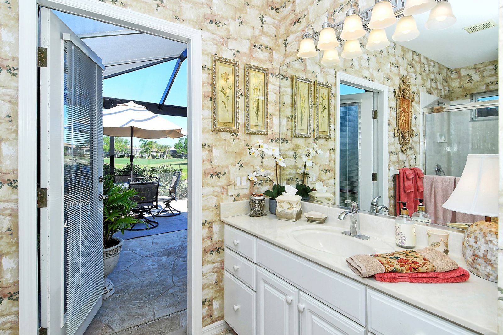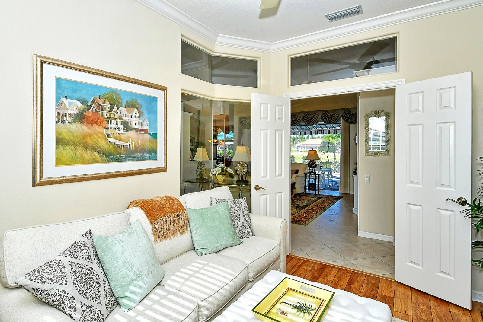 Beyond the beautiful custom leaded glass entry doors you are greeted by a bright, gracious home perfectly seated with an expansive north-western sky, and both lake and golf course views. Offered beautifully furnished, decorated and completely equipped to the smallest detail, this three bedroom, three bath, plus den/office split plan design is a rare market find. It is the perfect place to relax, rejuvenate, and enjoy your Florida lifestyle. Located in the wonderful award winning gated community, Pelican Pointe Golf & Country Club, there are many active and leisure choices to discover by being a resident. 27 holes of top rated semi-private golf, an active social calendar, dining and fitness, plus only 3 miles from downtown Venice Island, shopping, restaurants, and the shimmering gulf beaches! It doesn't get much better than this! Special features include Hunter Douglas window treatments, new carpeting and wood flooring, designer draperies, newer appliances, new high end pool equipment, and a new panoramic screened lanai designed for optimum view and privacy with protective no seeum screening for enjoying the outdoor space. A retractable awning provides shaded space for outdoor dining, and storm shutters afford peace of mind in the weather. Furnished with Lexington furniture, Karastan rugs, Serta IComfort new bedding, Ralph Lauren linens, Mikasa china and Waterford crystal, this is a must see residence for your perfect Florida, move in ready lifestyle! The homeowner's association fee includes lawn maintenance, irrigation, AND a social membership. Tennis, pickleball, fitness, a heated pool, restaurant and many activities to choose from are included in your social membership! Don't miss this one!