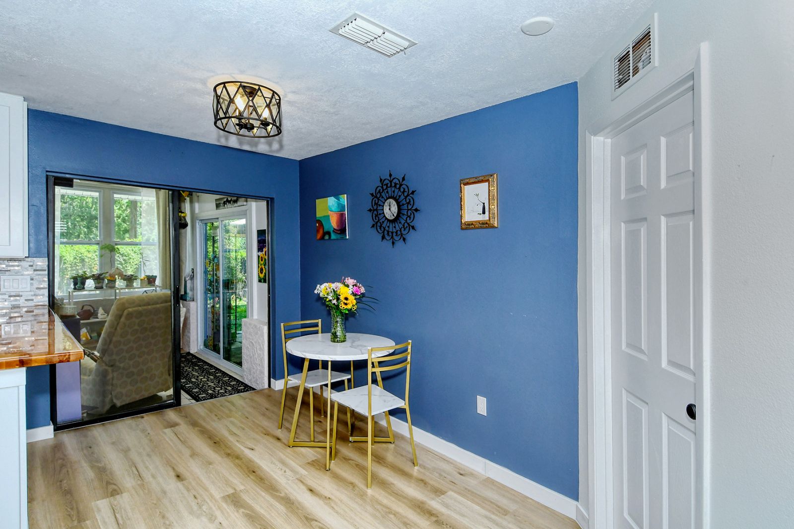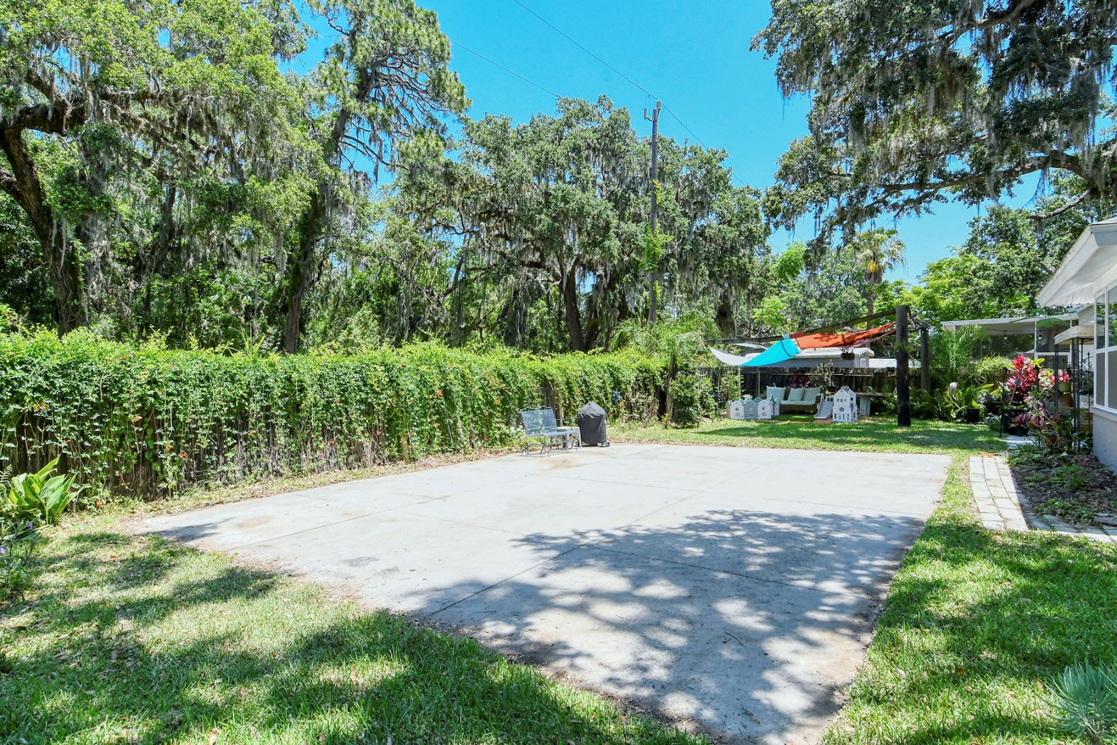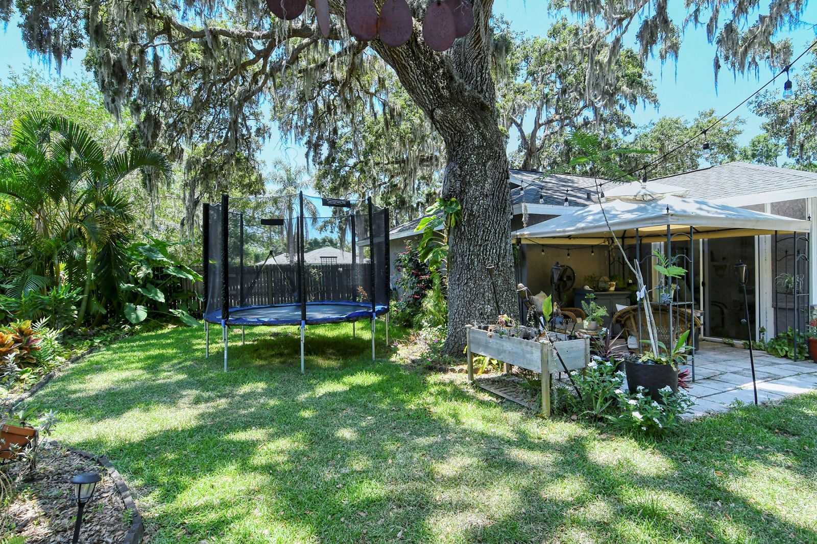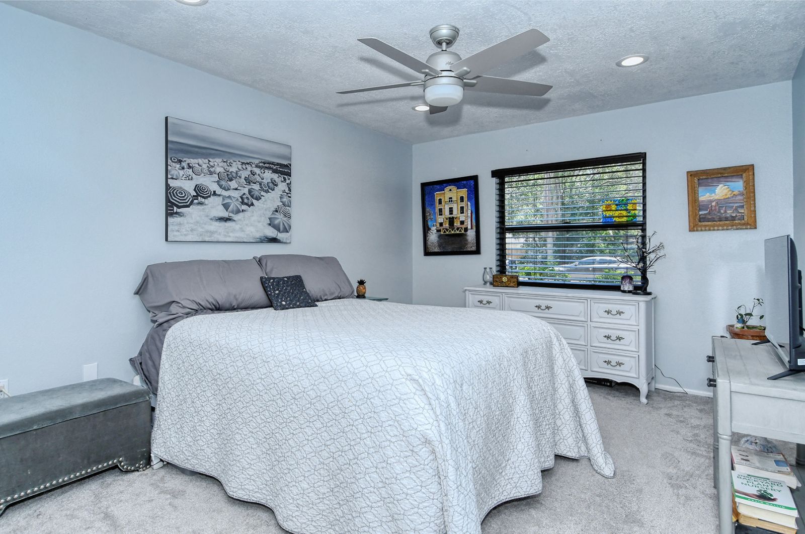 In addition to 2 bedrooms, this split-plan home includes a sunroom, currently used as a 3rd bedroom. Immediately upon entering this stunning home you're greeted with Vaulted Ceilings, Exposed Beams, a magnificent stone fireplace, and LOADS of natural light pouring into every room. The ample master bedroom includes his & her walk-in closets as well as an en-suite bathroom. The kitchen boasts all Stainless Steel Appliances, solid-surface counters, gorgeous glass & ceramic backsplash, built-in pantry, and a large breakfast bar which opens into the dining room. High quality wood laminate flooring covers the main living spaces, with carpeting in the bedrooms. The sunroom/3rd bedroom opens to the Expansive backyard- perfect for families, pets, and entertaining with plenty of room for all your toys! The large concrete pad out back could be used for additional seating with space for a grill and/or outdoor fireplace, or put in a basketball hoop and have your own backyard basketball court! **ROOF REPLACED MAY 2021**A/C REPLACED NOV 2022