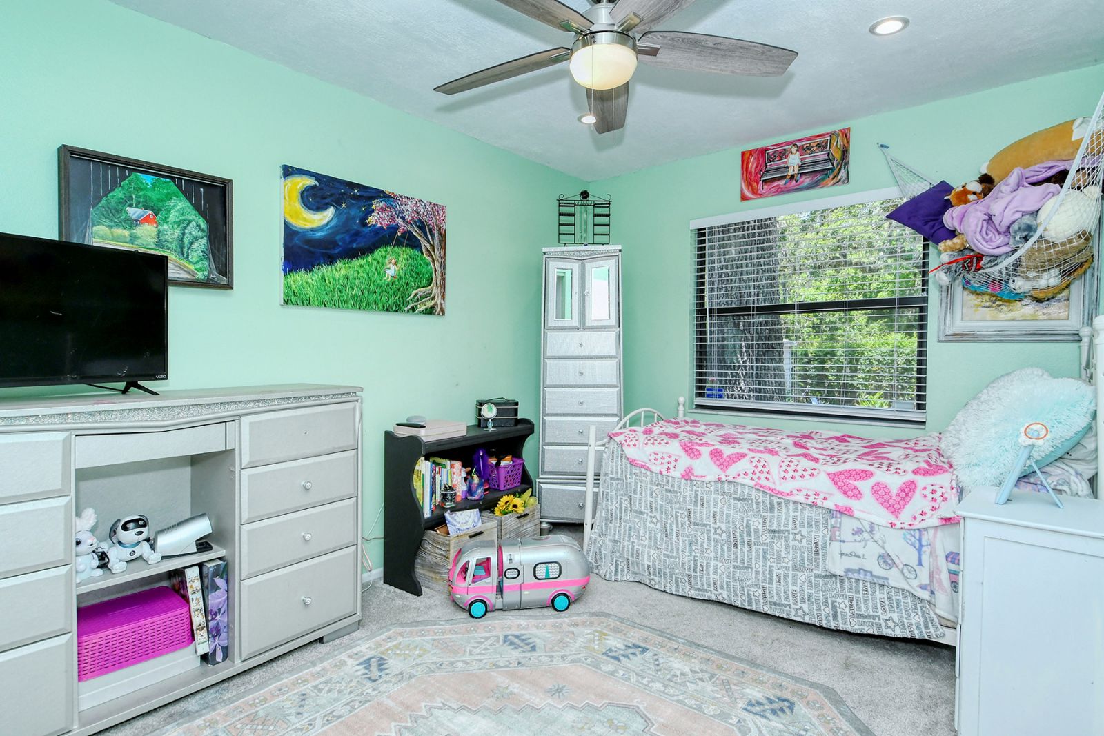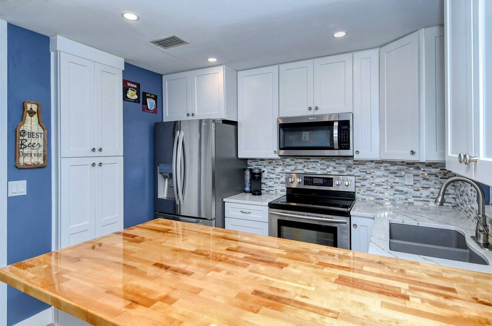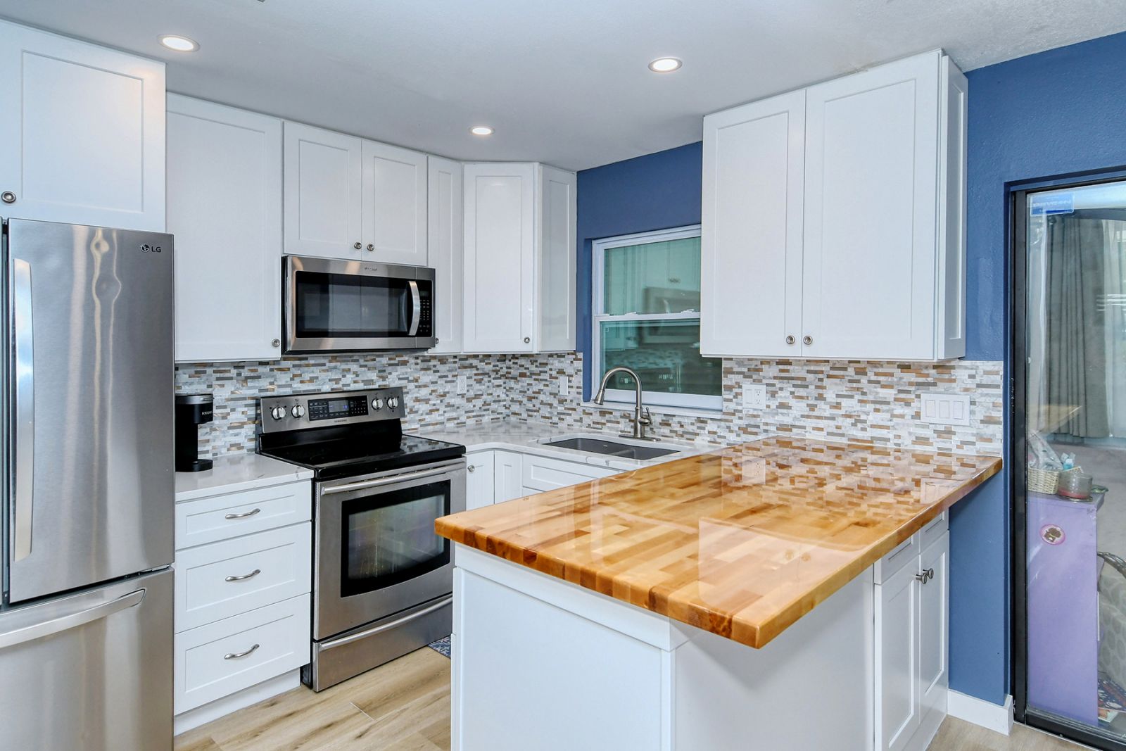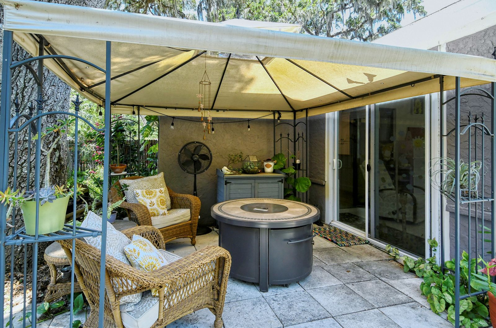 In addition to 2 bedrooms, this split-plan home includes a sunroom, currently used as a 3rd bedroom. Immediately upon entering this stunning home you're greeted with Vaulted Ceilings, Exposed Beams, a magnificent stone fireplace, and LOADS of natural light pouring into every room. The ample master bedroom includes his & her walk-in closets as well as an en-suite bathroom. The kitchen boasts all Stainless Steel Appliances, solid-surface counters, gorgeous glass & ceramic backsplash, built-in pantry, and a large breakfast bar which opens into the dining room. High quality wood laminate flooring covers the main living spaces, with carpeting in the bedrooms. The sunroom/3rd bedroom opens to the Expansive backyard- perfect for families, pets, and entertaining with plenty of room for all your toys! The large concrete pad out back could be used for additional seating with space for a grill and/or outdoor fireplace, or put in a basketball hoop and have your own backyard basketball court! **ROOF REPLACED MAY 2021**A/C REPLACED NOV 2022