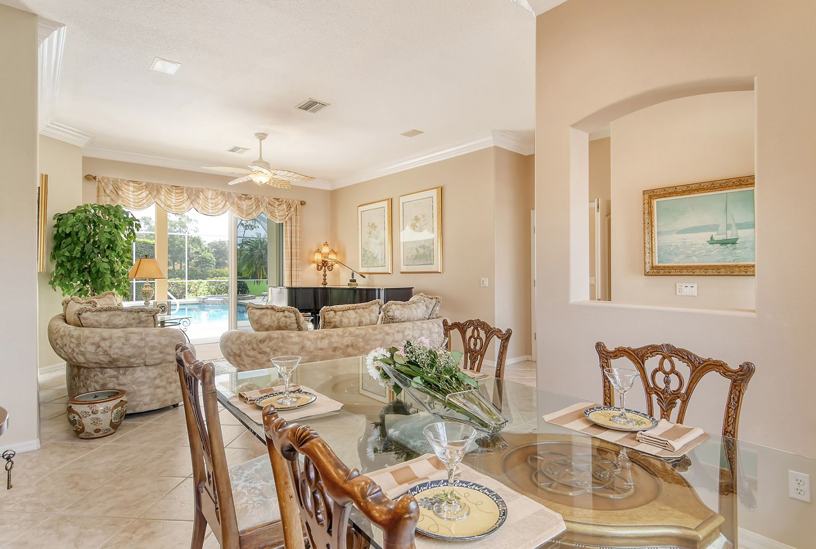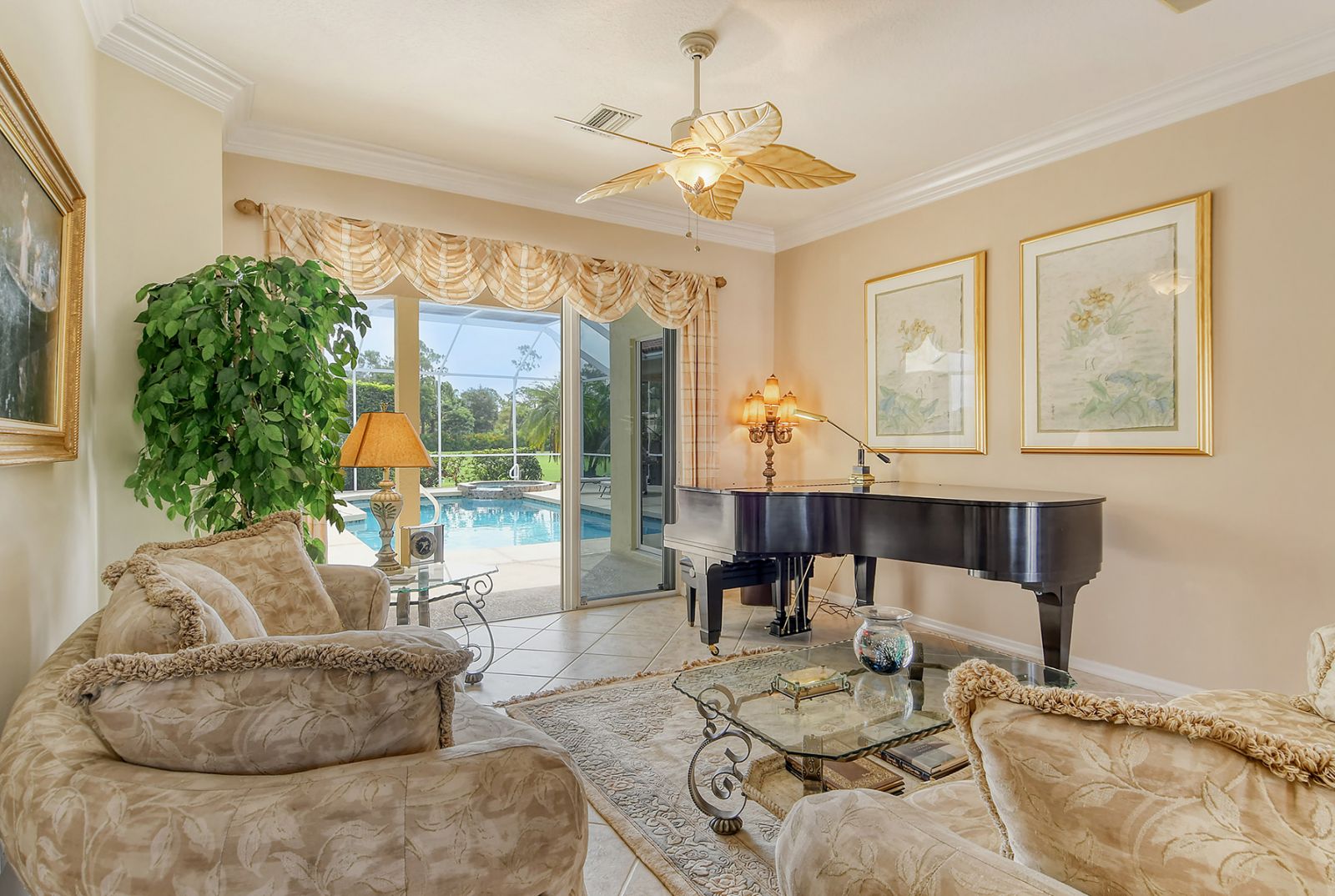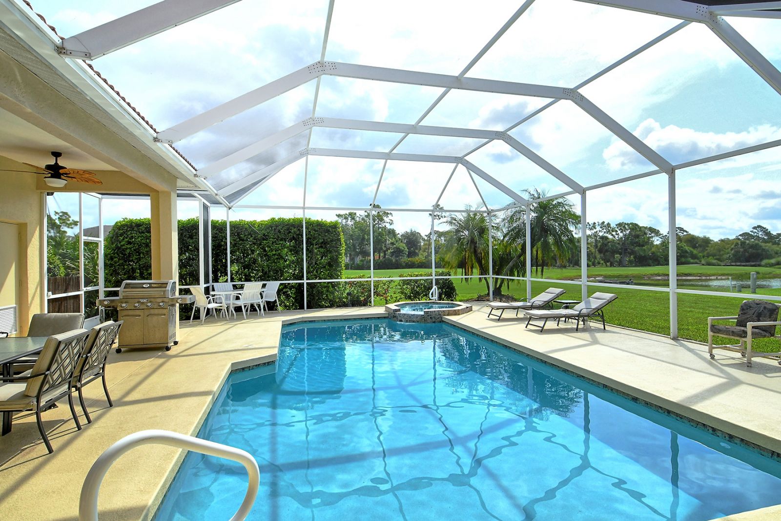 LOCATED ON A VERY PRIVATE CUL-DE-SAC WITH NO HOME VISIBLE FROM EITHER SIDE AND A PRICELESS VIEW OF THE GOLF COURSE AND LAKE SITS THIS STATELY 4 BEDROOM 3 BATH HOME. STEP THROUGH THE BEAUTIFUL DOUBLE DOOR ENTRY AND YOU ARE MET WITH A STELLAR VIEW OF THE SPARKLING OVERSIZED HEATED POOL AND SPA THROUGH THE SLIDING GLASS DOORS OF THE FORMAL DINING AND LIVING AREA. THE SPLIT FLOOR PLAN PROVIDES TOTAL PRIVACY FROM THE MASTER SUITE OFFERING AMPLE CLOSET SPACE, THE SAME COVETED VIEW OF THE POOL AREA, AND A SPACIOUS MASTER BATH WITH DOUBLE SINKS AND LARGE WALK-IN SHOWER. THERE ARE THREE BEDROOMS ON THE LEFT WING OFF THE FAMILY ROOM AND THREE FULL BATHS, ONE LEADING OUT TO THE POOL. THE WELL-DESIGNED KITCHEN IS EQUIPPED WITH SS APPLIANCES, CORIAN COUNTERTOPS, A COZY BREAKFAST NOOK SURROUNDED BY WINDOWS, AND IS OPEN TO THE FAMILY ROOM FEATURING VAULTED CEILINGS AND A WALL OF SLIDING GLASS DOORS SHOWCASING THE SPARKLING CLEAR POOL AND SPA AREA. THE OVERSIZED POOL IS OUTFITTED WITH AMAZING LED LIGHTING MAKING EVENINGS ON THE LANAI A TROPICAL PARADISE, HAS AUTO FILL FEATURE AND IS HEATED FROM AN UNDERGROUND PROPANE TANK. THE HOME FEATURES A THREE-CAR GARAGE WITH AIR CONDITIONED STORAGE ROOM, HAS A WELL FOR IRRIGATION, AND IS BEING SOLD FULLY FURNISHED. STONEYBROOK IS A GATED COMMUNITY WITH AN IMPRESSIVE CLUBHOUSE AND RESTAURANT, FITNESS CENTER, AN ARTHUR HILLS PREMIER GOLF COURSE, TENNIS COURTS, LARGE HEATED POOL, AND CLOSE TO SIESTA KEY BEACH, SHOPS AND RESTAURANTS AND A SHORT DRIVE TO DOWNTOWN SARASOTA. INVESTORS, STONEYBROOK ALLOWS RENTALS WITH A 30-DAY MINIMUM. MORE THAN A NEW HOME, A LIFESTYLE TO ENJOY!