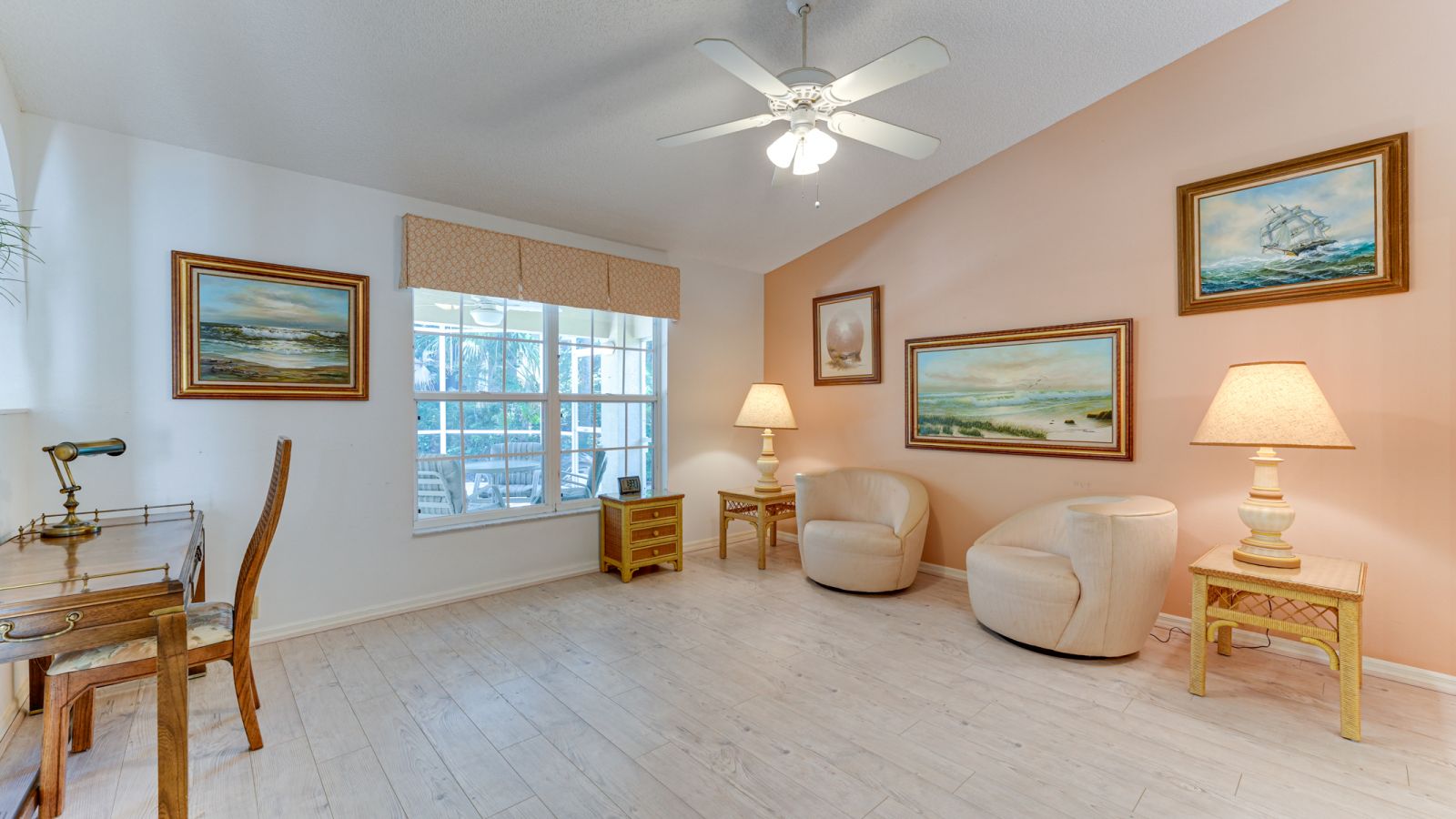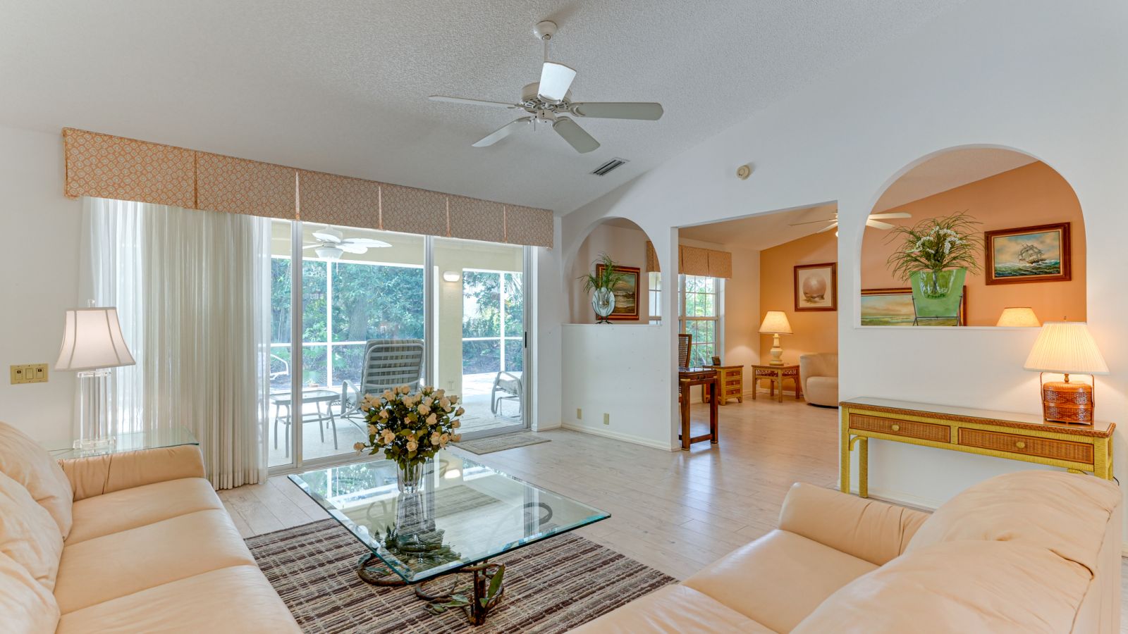 This rarely available, single-story end-unit villa in Osprey's highly coveted, maintenance-free & pet-friendly Blackburn Point Woods checks boxes & ring bells! Its particular setting at the end of a quiet cul-de-sac makes it the closest to a stand-alone residence in the community. Here you will find a comfortable, casual coastal style retreat. Light tones, lazily cooling ceiling fans suspended from vaulted ceilings evoke a sense of serenity & warm hospitality. Open--from new kitchen-breakfast room--to dining--to living--to lanai--to a spacious screened patio--it's all about continuous flow. A split bedroom layout affords personal privacy & the function of a spacious den sharing a bath with the guest room. Lush, tropical greenery makes for a beautiful presence outside & a verdant, private interior with ever-pleasing views. Tasteful updates include a remodeled kitchen with granite countertops and stainless-steel appliances and are modeled master bath. Blackburn Point Woods is a gracious enclave of 44 single-family attached homes carved into 15 acres of natural wooded setting. West of the Trail toward the Gulf, the intracoastal waterway, beaches & boating, waterfront dining, vital as well as desirable services, it checks off LOCATION times THREE! This meticulously maintained community shares amenities with neighboring Pine Run, featuring a large, heated community pool, clubhouse with fitness center, tennis and pickleball courts, kayak storage, and a fire pit with barbeque grills. This lovely home won't last long, so see it today!