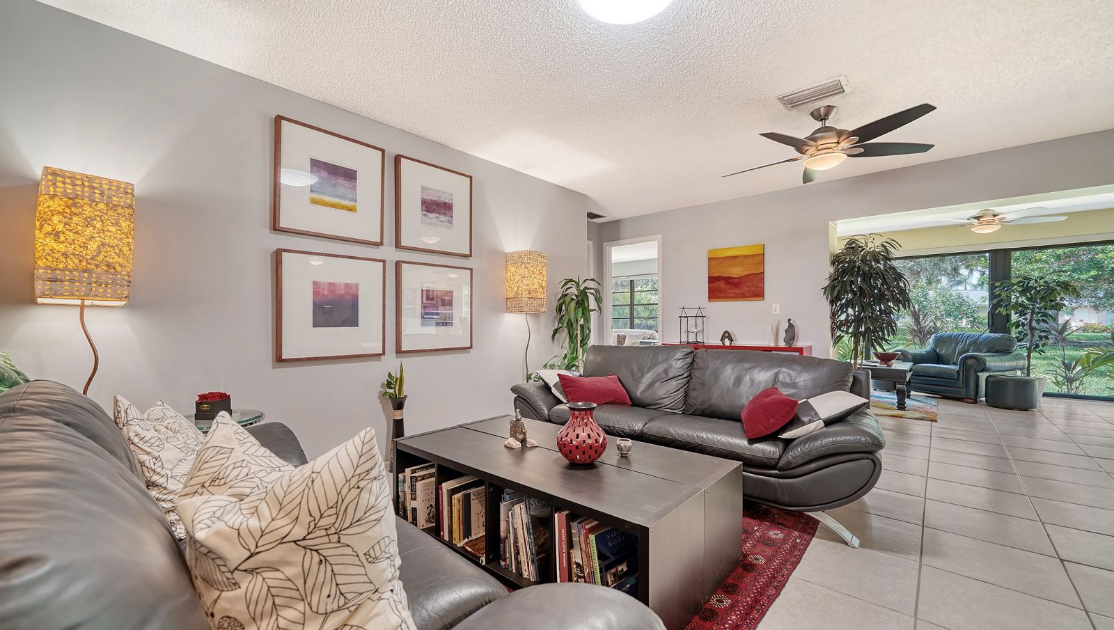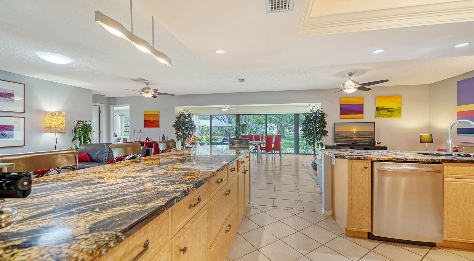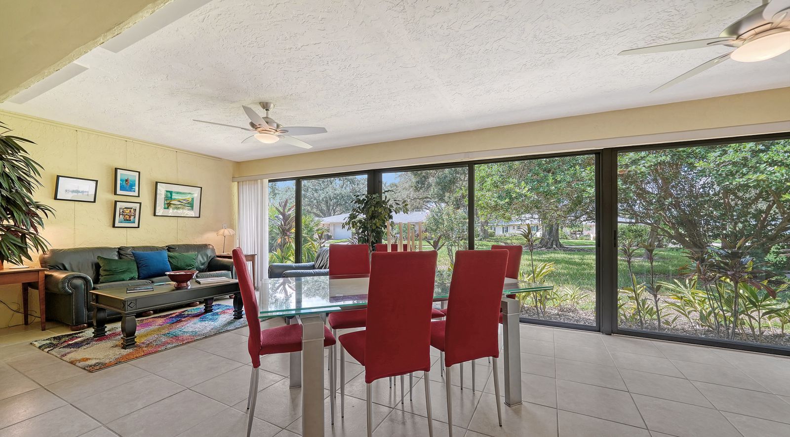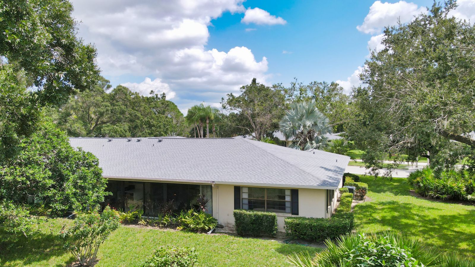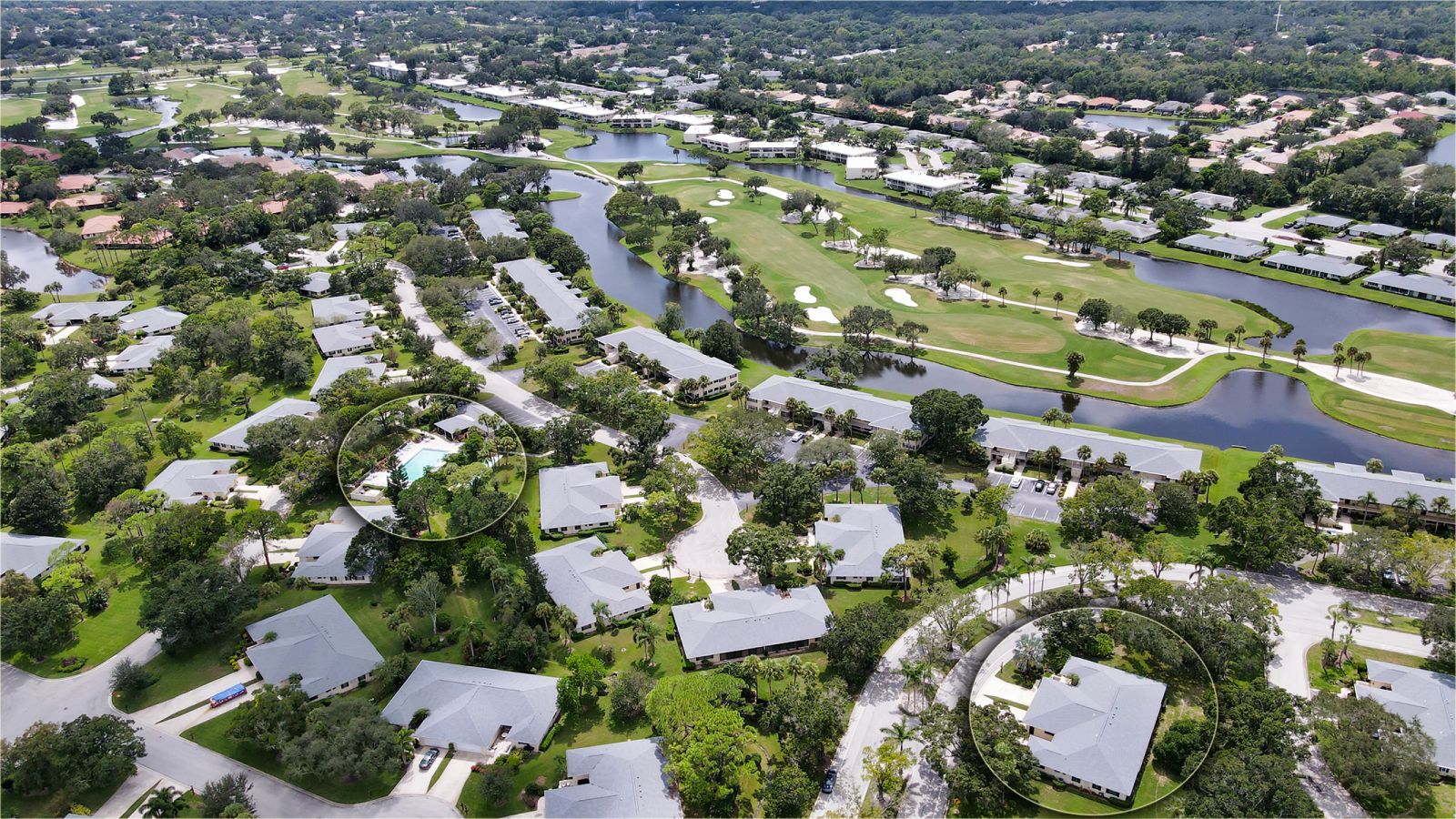 This villa in the active lifestyle community of Palm Aire is truly special. An end unit surrounded on 3 sides by greenspace and lush landscaping, providing wonderful privacy and a serene setting. It is one of the rare units in the small Fairway Bend community that is greater than 2,000 sq ft, that has 3 full bedrooms and a garage not just for 2 cars but also for a golf cart! A great home for entertaining family and friends. The large kitchen is open to both the living and family room areas with a 10 foot long breakfast bar. As you walk in the front door, your eyes will immediately be drawn to the wide-open view of the backyard. The entire wall of floor-to-ceiling glass all along the far side of the huge 30' x 11' Florida Room visually brings the outdoors in. It creates the impression that the interior space is endless. Yes, this home is very special. It is worth your time. Come and see! As you will see in the pictures, the kitchen has been nicely updated. Ask to see how the very clever corner base cabinets work, taking full advantage of all the storage space available. The master and guest bedrooms are at opposite ends of the home offering wonderful privacy and both have ensuite baths. The 3rd bedroom is adjacent to the master and separated by pocket doors so you can either incorporate it as a sitting area or nursery off the master or close it off as a separate 3rd bedroom or office. As you approach the home, you'll be charmed as you walk by the fountain in the beautifully landscaped extended front court yard. It even has its own separate irrigation system for easy maintenance and is shaded with a contemporary style sail awning. This home has even been pre-wired for easy connection to a whole house generator. The Fairway Bend Association, as a maintenance-free community, takes care of and is responsible for both the grounds and the building exterior. In fact, they just recently replaced the roof on this villa! Fairway Bend is part of the larger, delightful and active Palm Aire community. Country club memberships are reasonable and optional, offering golf, tennis, pickleball, fitness, fine dining and lots of social activities. Visit PalmAire.net for more info. Fairway Bend has its own separate heated community pool that is just a 1/10 mile walk from this home. The community is ideally located with easy access to I-75, the incredible University Town Center and surrounding shopping areas, the Sarasota international airport, downtown Sarasota, and our award winning beaches.