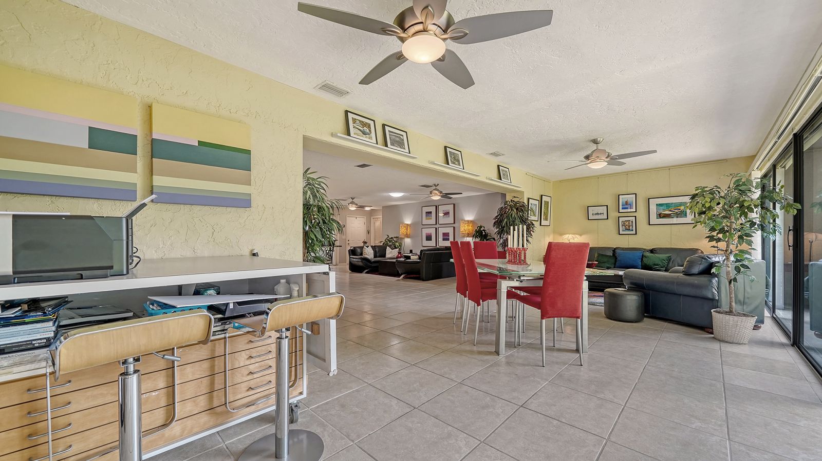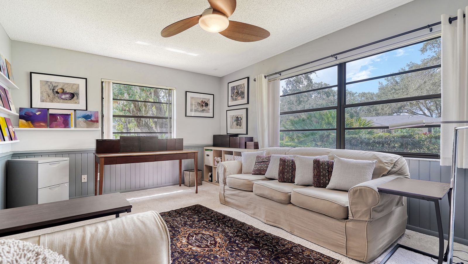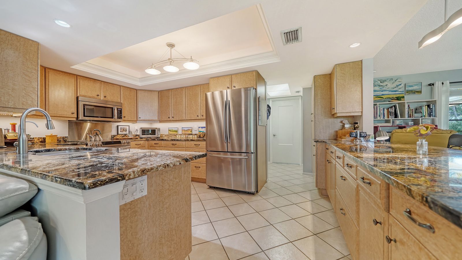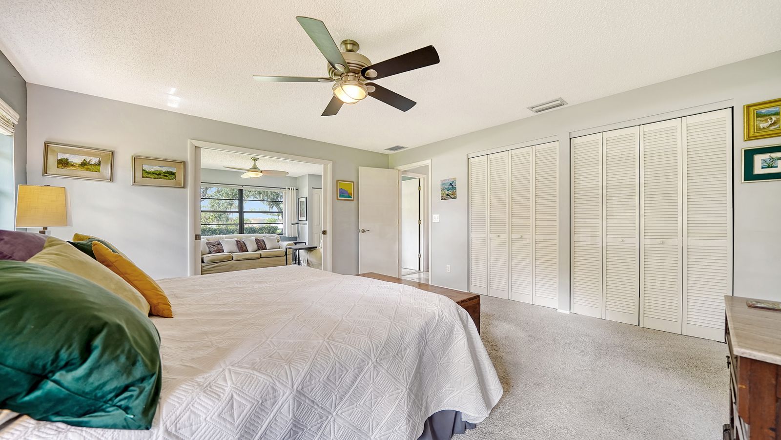 This villa in the active lifestyle community of Palm Aire is truly special. An end unit surrounded on 3 sides by greenspace and lush landscaping, providing wonderful privacy and a serene setting. It is one of the rare units in the small Fairway Bend community that is greater than 2,000 sq ft, that has 3 full bedrooms and a garage not just for 2 cars but also for a golf cart! A great home for entertaining family and friends. The large kitchen is open to both the living and family room areas with a 10 foot long breakfast bar. As you walk in the front door, your eyes will immediately be drawn to the wide-open view of the backyard. The entire wall of floor-to-ceiling glass all along the far side of the huge 30' x 11' Florida Room visually brings the outdoors in. It creates the impression that the interior space is endless. Yes, this home is very special. It is worth your time. Come and see! As you will see in the pictures, the kitchen has been nicely updated. Ask to see how the very clever corner base cabinets work, taking full advantage of all the storage space available. The master and guest bedrooms are at opposite ends of the home offering wonderful privacy and both have ensuite baths. The 3rd bedroom is adjacent to the master and separated by pocket doors so you can either incorporate it as a sitting area or nursery off the master or close it off as a separate 3rd bedroom or office. As you approach the home, you'll be charmed as you walk by the fountain in the beautifully landscaped extended front court yard. It even has its own separate irrigation system for easy maintenance and is shaded with a contemporary style sail awning. This home has even been pre-wired for easy connection to a whole house generator. The Fairway Bend Association, as a maintenance-free community, takes care of and is responsible for both the grounds and the building exterior. In fact, they just recently replaced the roof on this villa! Fairway Bend is part of the larger, delightful and active Palm Aire community. Country club memberships are reasonable and optional, offering golf, tennis, pickleball, fitness, fine dining and lots of social activities. Visit PalmAire.net for more info. Fairway Bend has its own separate heated community pool that is just a 1/10 mile walk from this home. The community is ideally located with easy access to I-75, the incredible University Town Center and surrounding shopping areas, the Sarasota international airport, downtown Sarasota, and our award winning beaches.