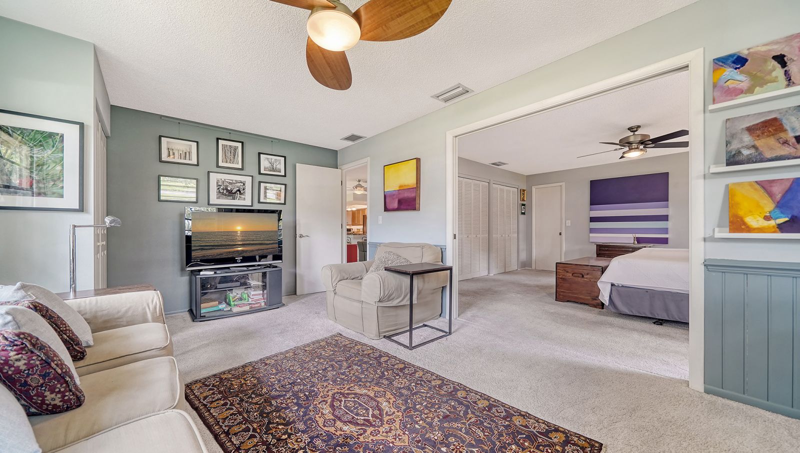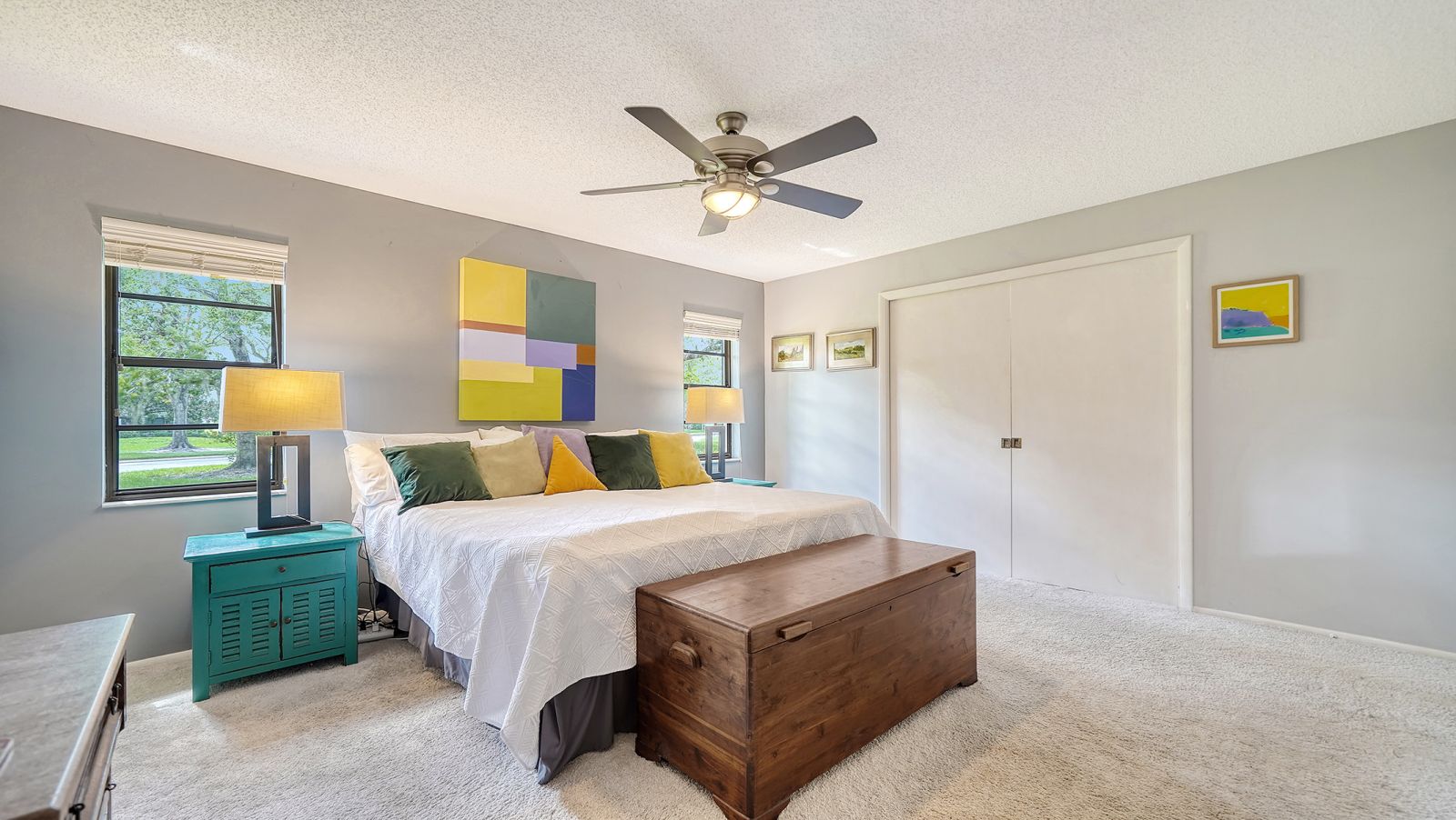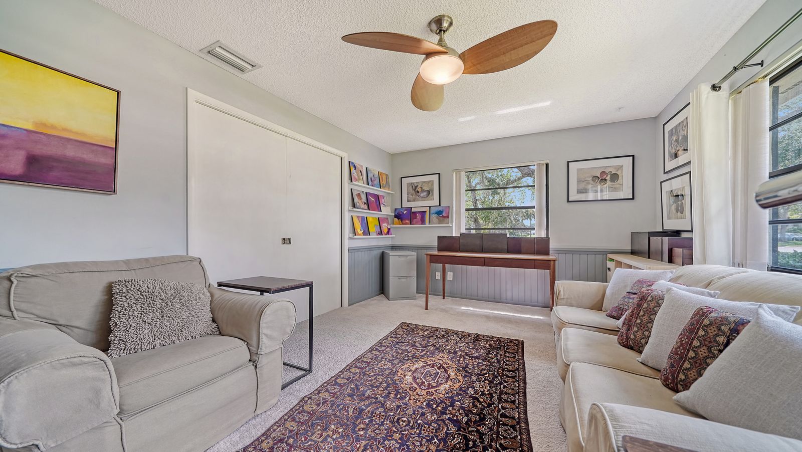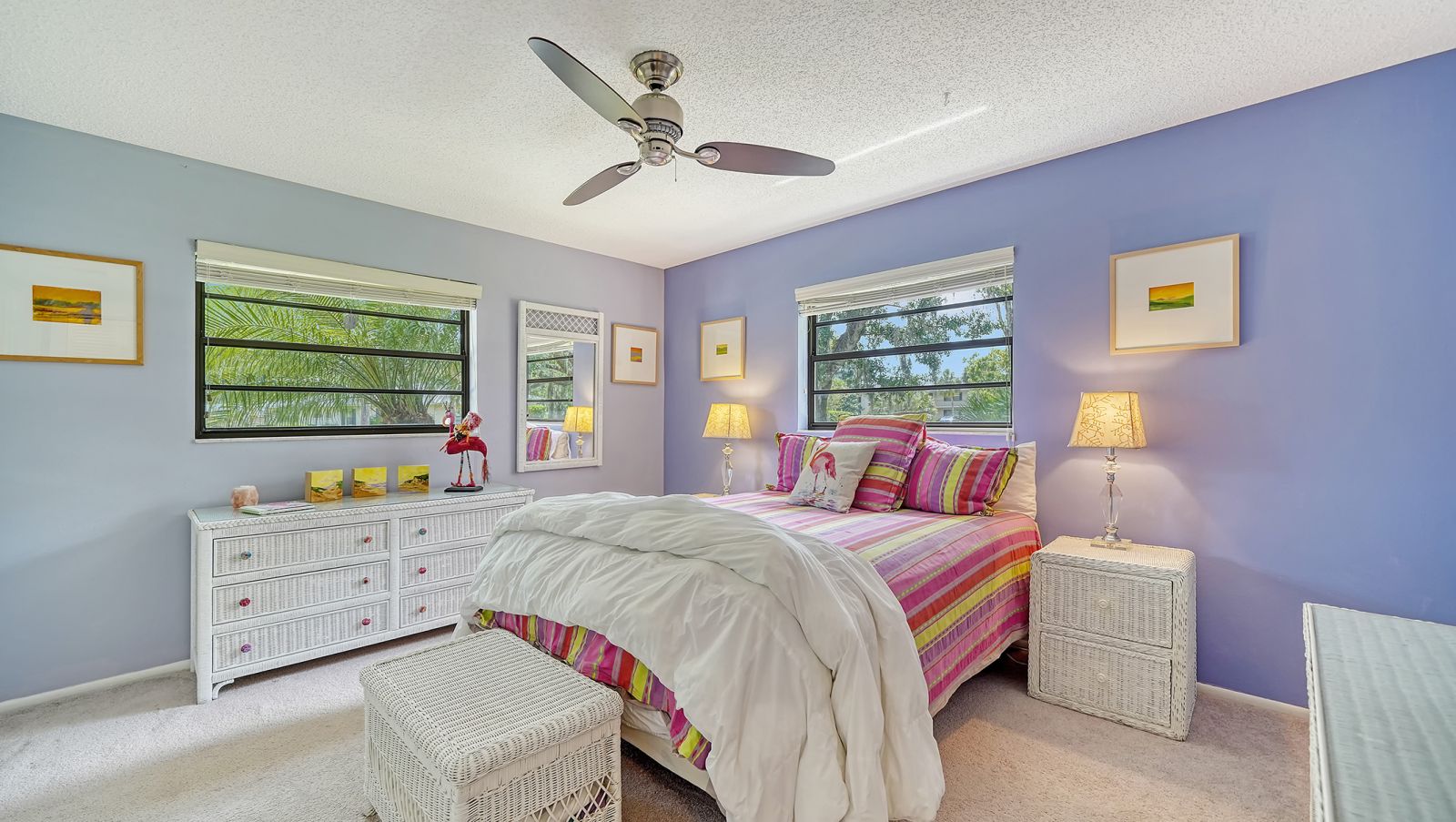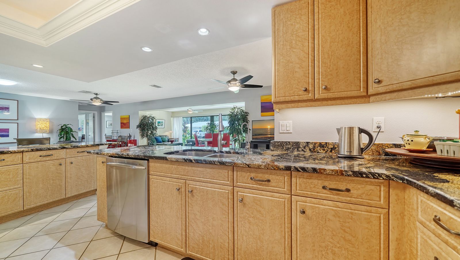 This villa in the active lifestyle community of Palm Aire is truly special. An end unit surrounded on 3 sides by greenspace and lush landscaping, providing wonderful privacy and a serene setting. It is one of the rare units in the small Fairway Bend community that is greater than 2,000 sq ft, that has 3 full bedrooms and a garage not just for 2 cars but also for a golf cart! A great home for entertaining family and friends. The large kitchen is open to both the living and family room areas with a 10 foot long breakfast bar. As you walk in the front door, your eyes will immediately be drawn to the wide-open view of the backyard. The entire wall of floor-to-ceiling glass all along the far side of the huge 30' x 11' Florida Room visually brings the outdoors in. It creates the impression that the interior space is endless. Yes, this home is very special. It is worth your time. Come and see! As you will see in the pictures, the kitchen has been nicely updated. Ask to see how the very clever corner base cabinets work, taking full advantage of all the storage space available. The master and guest bedrooms are at opposite ends of the home offering wonderful privacy and both have ensuite baths. The 3rd bedroom is adjacent to the master and separated by pocket doors so you can either incorporate it as a sitting area or nursery off the master or close it off as a separate 3rd bedroom or office. As you approach the home, you'll be charmed as you walk by the fountain in the beautifully landscaped extended front court yard. It even has its own separate irrigation system for easy maintenance and is shaded with a contemporary style sail awning. This home has even been pre-wired for easy connection to a whole house generator. The Fairway Bend Association, as a maintenance-free community, takes care of and is responsible for both the grounds and the building exterior. In fact, they just recently replaced the roof on this villa! Fairway Bend is part of the larger, delightful and active Palm Aire community. Country club memberships are reasonable and optional, offering golf, tennis, pickleball, fitness, fine dining and lots of social activities. Visit PalmAire.net for more info. Fairway Bend has its own separate heated community pool that is just a 1/10 mile walk from this home. The community is ideally located with easy access to I-75, the incredible University Town Center and surrounding shopping areas, the Sarasota international airport, downtown Sarasota, and our award winning beaches.