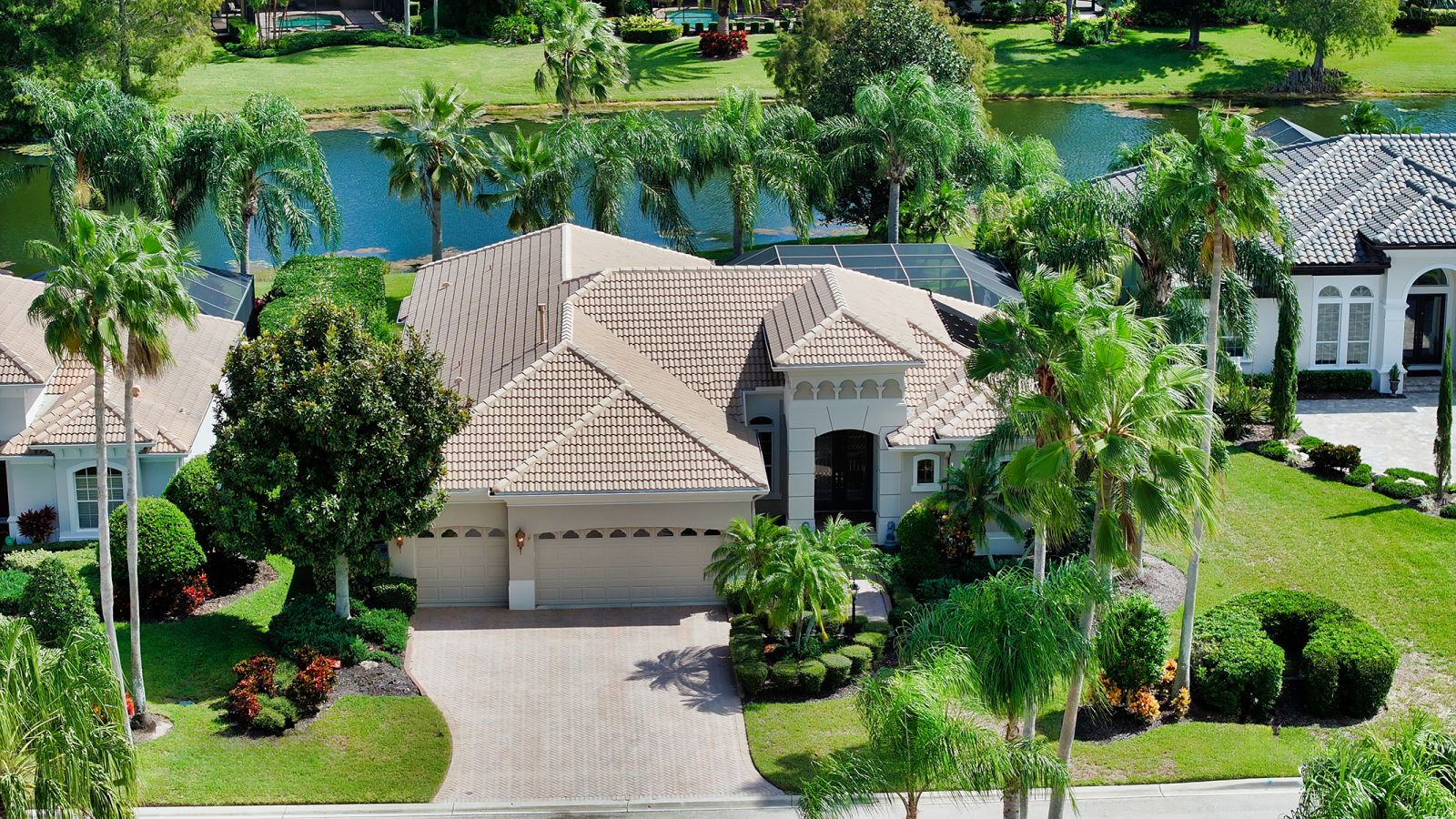 Poised on a stunning lake home site in The Country Club of Lakewood Ranch, this custom-built Lee Wetherington home welcomes guests to luxuriate in the relaxed Florida lifestyle. The charming exterior sets the stage for rich architectural details and upgrades throughout nearly 2,500 square feet of living space with 3 bedrooms, 3 full baths, office/den as well as a 3-car garage. Double-entry doors open to an elegant living area with expansive bay window overlooking the lanai and formal dining room with butlers pass thru into the kitchen. Suitable for a chef, the kitchen boasts cherry cabinetry, granite counters, stainless appliances, tile backsplash, breakfast bar, walk-in pantry, built-in desk and dinette area with aquarium window. Featuring disappearing corner pocketing sliders, the family room with coffered ceiling opens to the spacious lanai and breathtaking water views. The primary wing showcases a double tray ceiling, spacious dual entry walk-in closet with cabinetry and private access to the lanai, while the master bath offers dual sinks, vanity, garden tub and large walk-in shower. The expansive outdoor living area includes a heated pool with spa, 2 covered lounging areas, outdoor summer kitchen and built-in bar seating. Offering a split plan, two additional bedrooms are set privately each with their own bath, and the handsome office/den is located at the back of the home with custom built-in cabinetry, wood flooring and French doors to the lanai. Lakewood Ranch offers residents the ultimate Florida lifestyle with a private Country Club, 4 golf courses, 18 lighted tennis courts, pickle ball courts, athletic center, polo club and parks, and is just minutes away from world-class shopping and dining at University Town Center, Lakewood Ranch Main Street, beaches, A-rated schools and medical facilities. Lakewood Ranch Golf and Country Club membership is optional and offers several levels of membership.