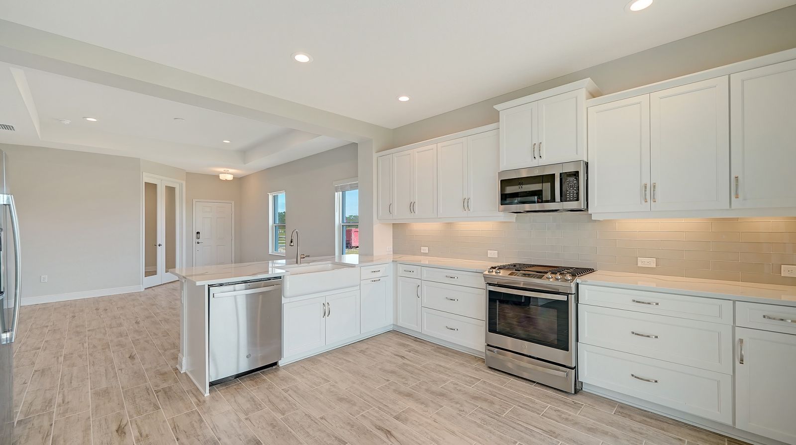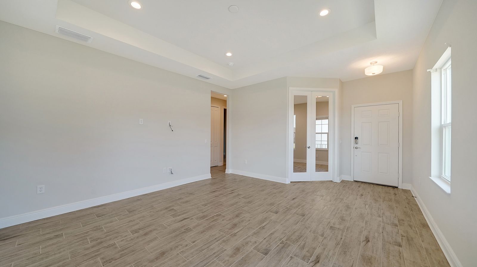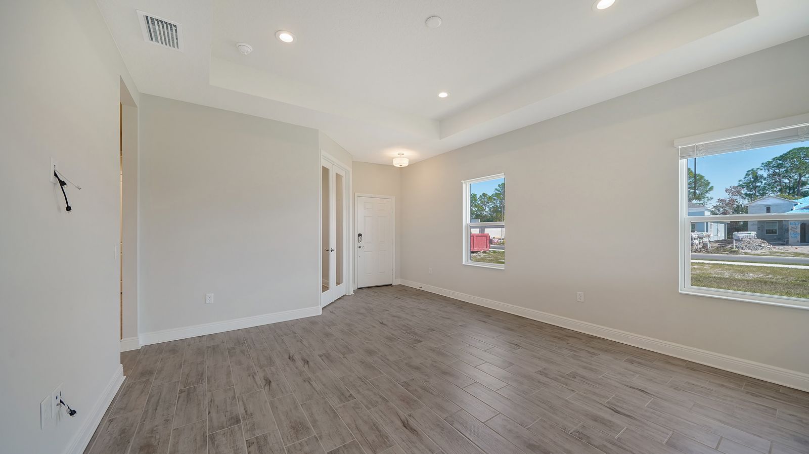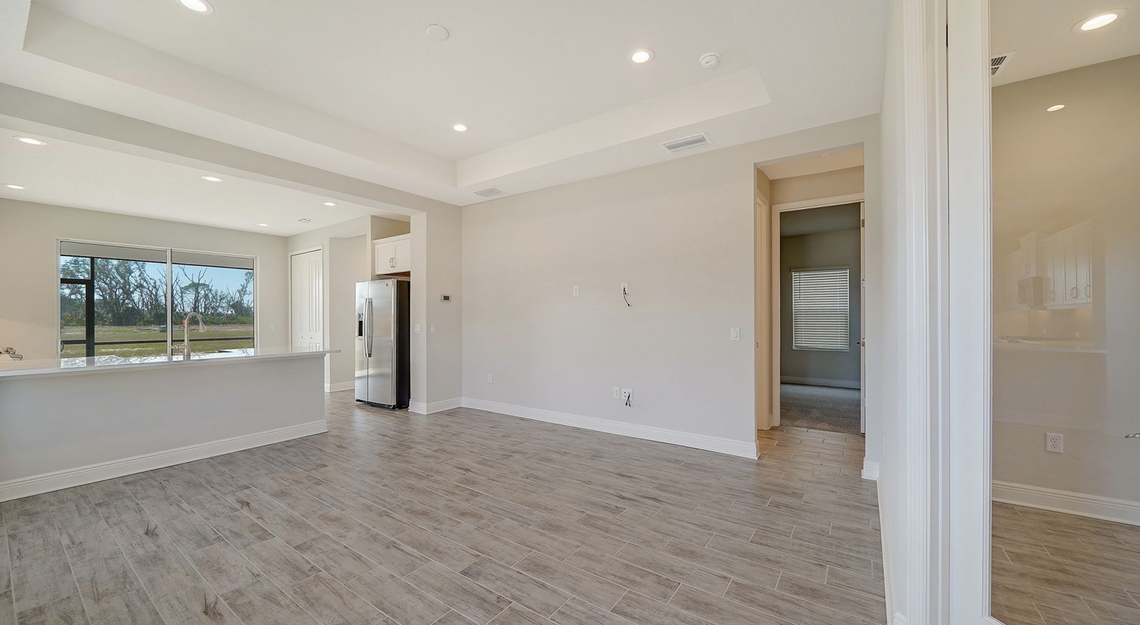 Under Construction. The Liberty 3 is a popular home design featuring a welcoming front porch. Inside, you step into the open great room and onto the well-appointed kitchen, which has plenty of counterspace and a breakfast area, a perfect spot to start your morning. A covered lanai wall sits beyond. The spacious master suite also features two walk-in closets, large shower and private water closet. A den at the front of the home provides the option of using the area as a formal dining room, an office or even a fourth bedroom