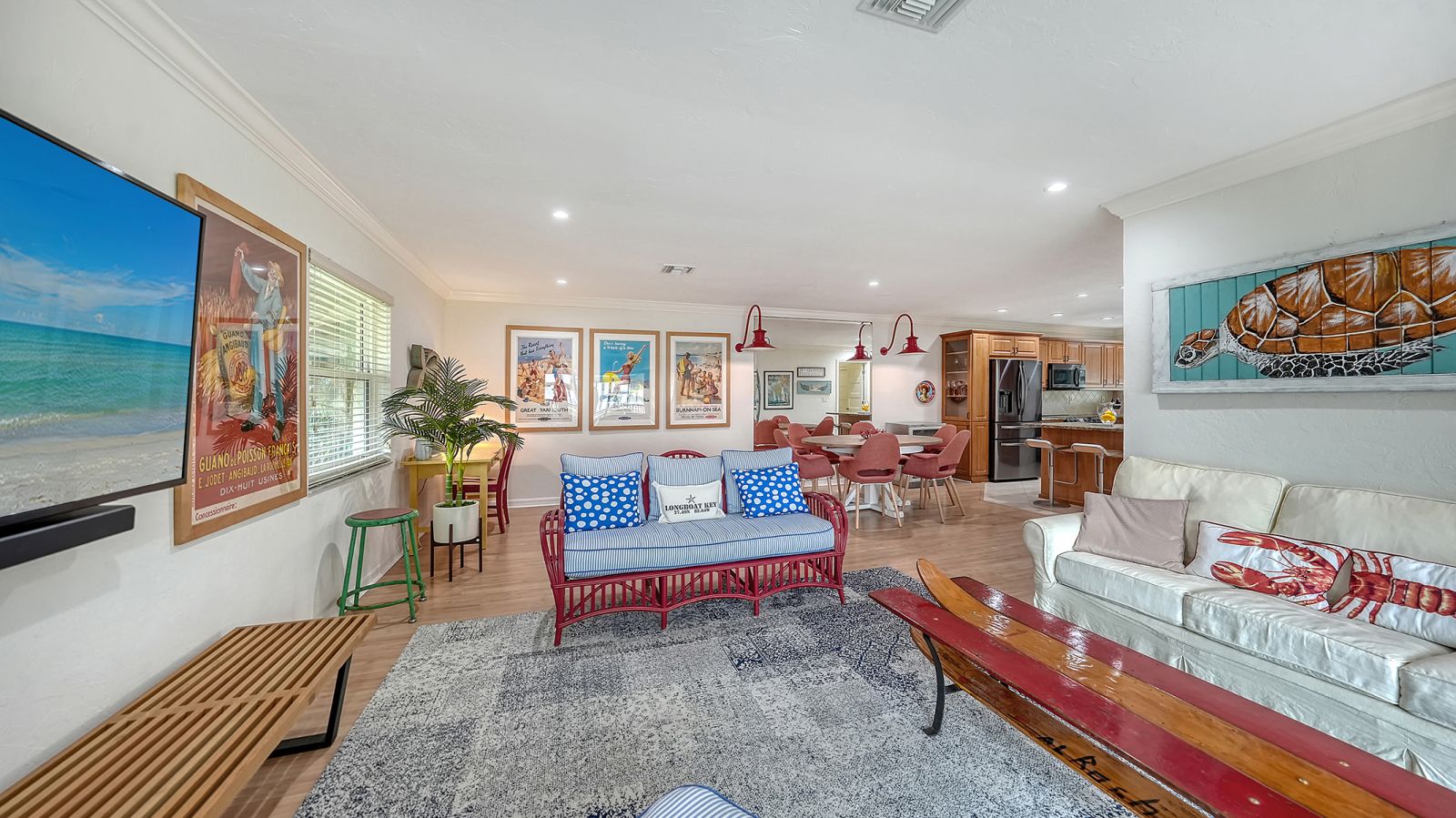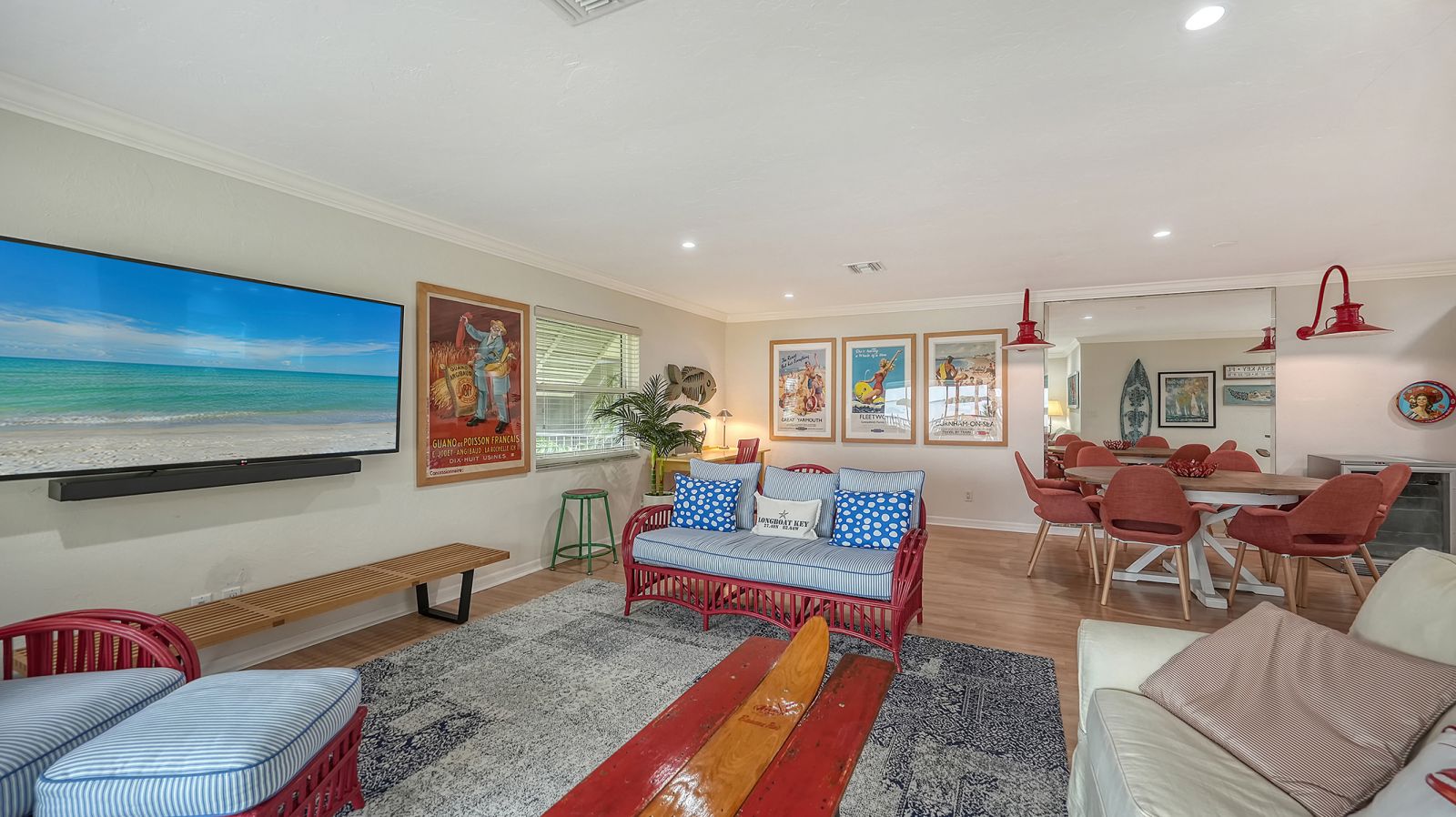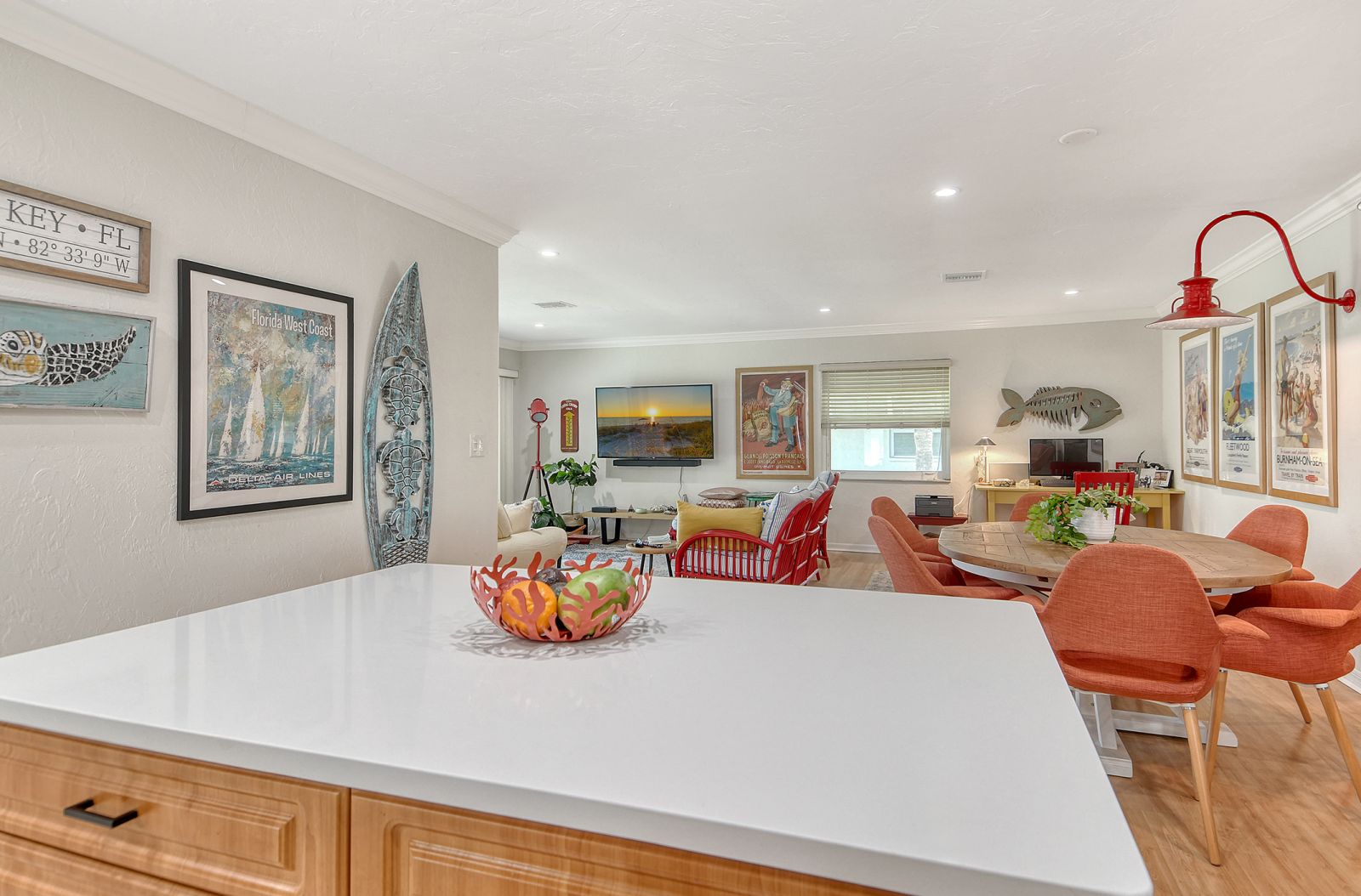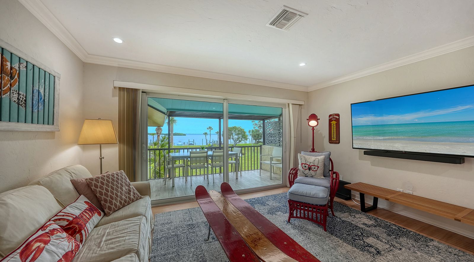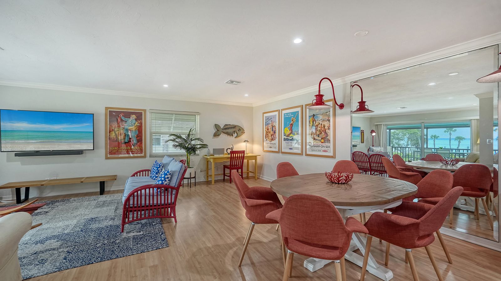 Gorgeous full bay views are yours from this 2nd floor, 2 bedroom/2 bath updated and fully furnished condominium poised on the serene bayside of Longboat Key in the sought after, highly amenitized, pet friendly and gulf to bay Pelican Harbour & Beach Club. Featuring a private beach, heated resort style pool, tennis/pickleball, kayaking, lushly landscaped brick pathways to the water and more! Enjoy your morning coffee and the beautiful sunrise or refreshing evening beverage from the peaceful screened in lanai, all while taking in the stunning Bay and marina views. Prepare a great meal from your kitchen with stainless Samsung appliances, 54 bottle wine refrigerator, granite counters, tile backsplash, recessed panel cabinetry, ample storage, and convenient island workspace and breakfast bar. The main living space and dining room boast picturesque water views while easily accommodating multiple entertaining/seating areas. The owner's suite is spacious and features private access to the lanai, a 2023 renovated luxe ensuite bath with porcelain tile floors & glass shower and generously sized custom closets. The guest bedroom is a peaceful space with large custom closet, 2023 renovated bath with porcelain-topped vanity and glass front shower. Hurricane rated windows and doors, in-unit laundry, covered assigned parking, and a designated outdoor storage unit complete this idyllic bayside condo. Pelican Harbour & Beach Club is a smart investment opportunity, vacation or permanent home. Conveniently located on mid-Longboat Key, the complex includes best-in-class amenities: a large, heated resort style pool, 2 tennis/pickleball courts, relaxing clubhouse, kayak launch, boat docks, owner storage and deeded beach access, lounge chairs and picnic area just a short walk from the unit down a crushed shell pathway. The complex has brand new roofs and hurricane rated carports, offers an attractive rental policy with 1-month minimum and 3 times per year, and is one of the few on Longboat Key allowing large dogs. Bayfront Park is close by with a wonderful Indoor Recreation Center, playground, pickleball/tennis, shuffleboard, and multi-purpose field. Shopping, dining and cultural options on Longboat Key, St. Armands Circle, and Downtown Sarasota are a short drive away. Make this Bayside retreat yours today!