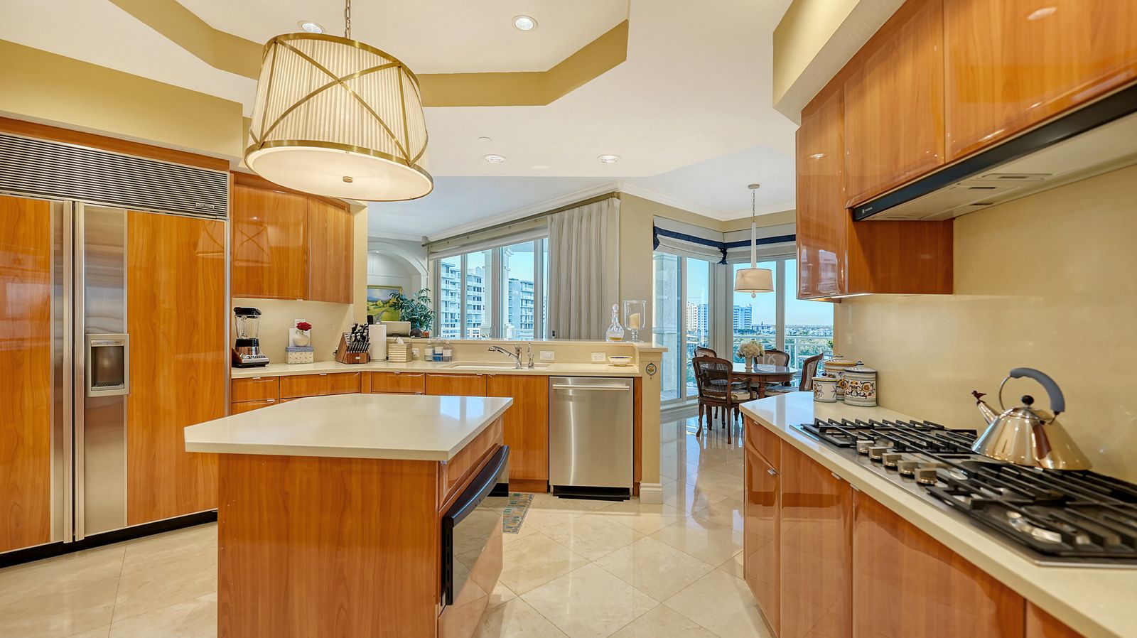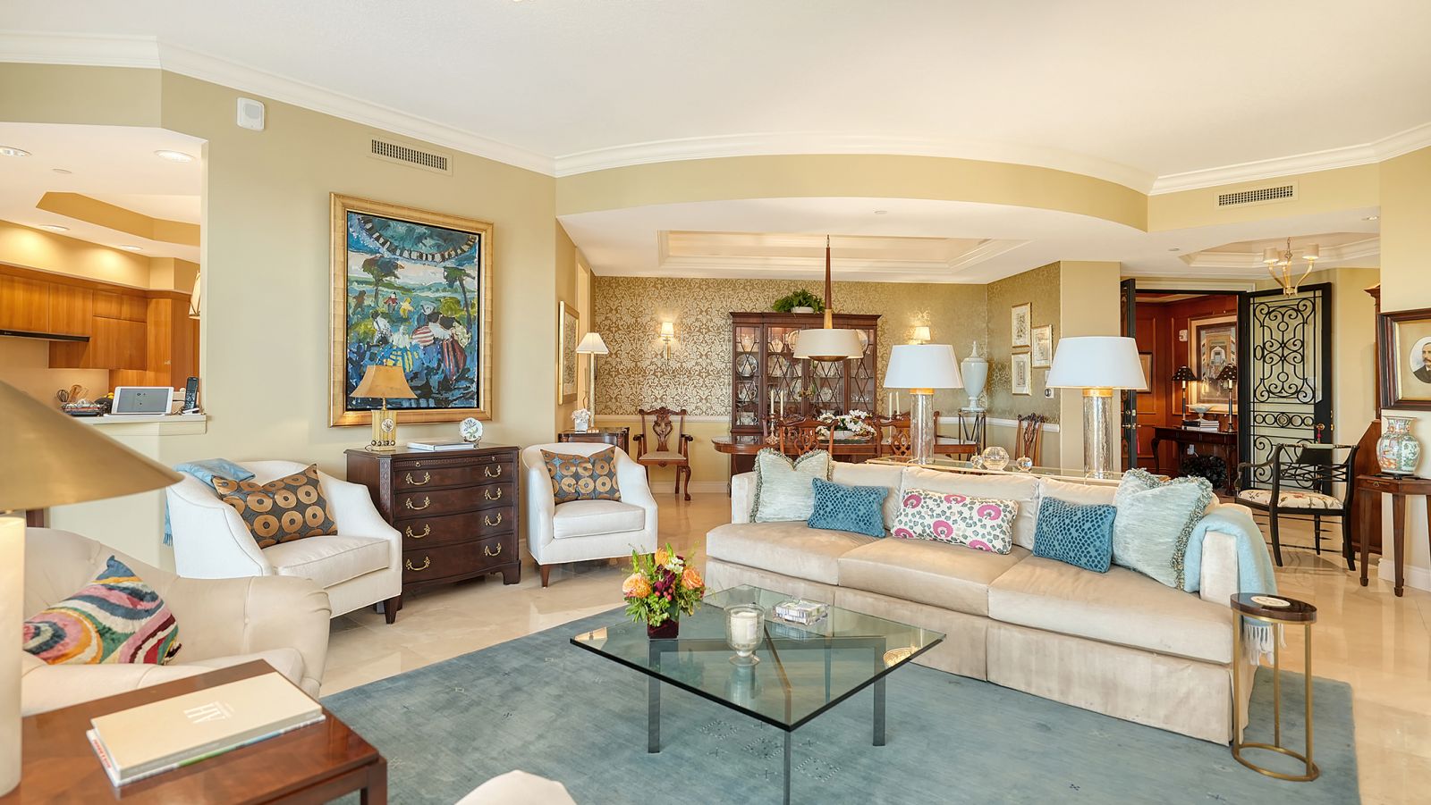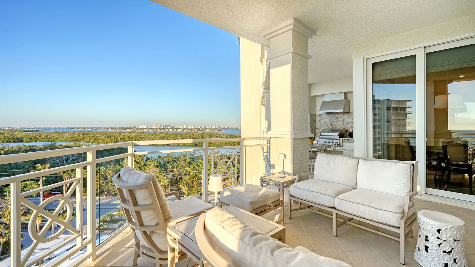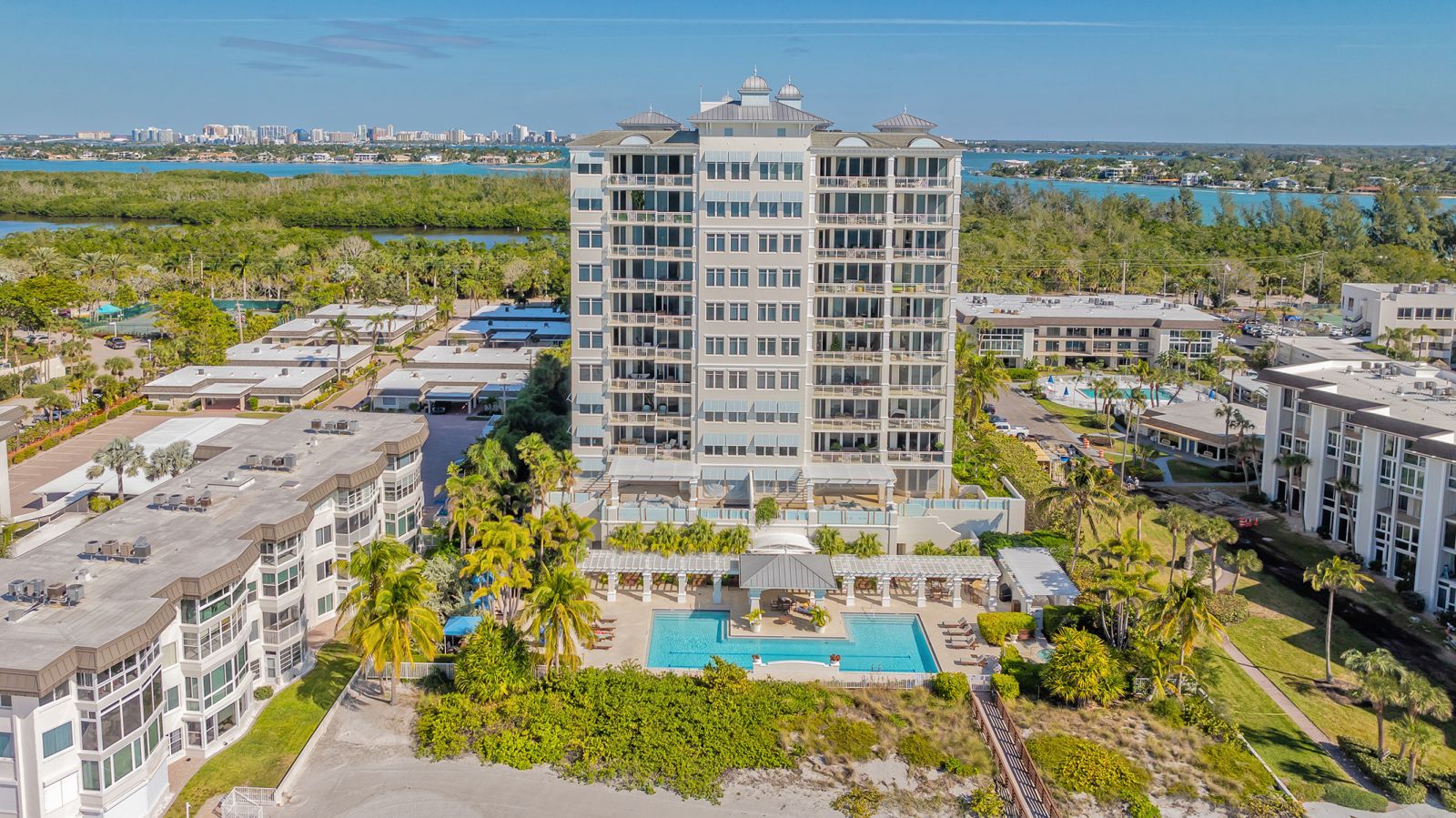 Set high above the sand on the seventh floor of Orchid Beach Club, this executive Lido Key beach residence showcases sweeping Gulf-to-bay and downtown Sarasota views the moment you step inside. Designed for elevated coastal living, the nearly 3,000-square-foot layout offers three bedrooms, three full baths, private elevator access, turnkey furnishings option available, and multiple terraces that create a true indoor-outdoor lifestyle.A residents-only elevator opens directly into your private lobby, where double iron filigree doors reveal a sophisticated interior filled with natural light. High cove ceilings with inset lighting, custom millwork, wood paneling, motorized window treatments, and thoughtfully updated finishes establish a sense of modern elegance throughout the home. Walls of impact glass capture unobstructed Gulf, bay, and city vistas, enhancing every living space.At the heart of the residence, the gourmet kitchen blends design with function, offering quartz countertops, sleek cabinetry, an island with seating, breakfast bar, and top-tier Bosch and Dacor appliances--including a six-burner gas range and warming drawer. The kitchen flows effortlessly into the great room and dining area, creating an ideal setting for hosting or relaxed everyday living.The Gulf-front primary suite serves as a peaceful retreat, complete with terrace access, two walk-in closets, and a beautifully renovated bath with marble-inspired finishes, dual vanities, soaking tub, and large shower. Two private guest suites--positioned in a split layout--provide comfortable accommodations for visitors, including one with terrace access and another with its own secluded balcony.Three terraces extend the living experience outdoors. The expansive bay-facing terrace offers a full summer kitchen with new (2024) built-in gas grill, large dining area, and generous seating space--perfect for sunset dinners or morning coffee overlooking the water. The Gulf-facing terrace is reserved for the primary suite and third bedroom, while the second guest suite enjoys its own private balcony.Orchid Beach Club is an exclusive Gulf-front community of only 54 residences, known for concierge-level service and resort-style amenities. Residents enjoy a secure building, 24-hour gated entrance, attentive concierge staff, and a beautifully appointed clubhouse with social room, library, billiards, catering kitchen, and lounge. The wellness center includes a fitness facility, sauna, spa room, and massage services. Outdoors, the Gulf-side pool and spa are surrounded by a spacious sun deck, with direct access to a private stretch of Lido Beach's soft sands and turquoise water.Ideally situated near St. Armands Circle, Longboat Key, and downtown Sarasota, the location offers immediate access to fine dining, boutique shopping, theaters, galleries, boating marinas, and cultural venues including the Van Wezel Performing Arts Hall and Sarasota Opera House. With world-class amenities, coastal scenery, and a premier waterfront address, this Orchid Beach Club residence delivers the best of Lido Key living.