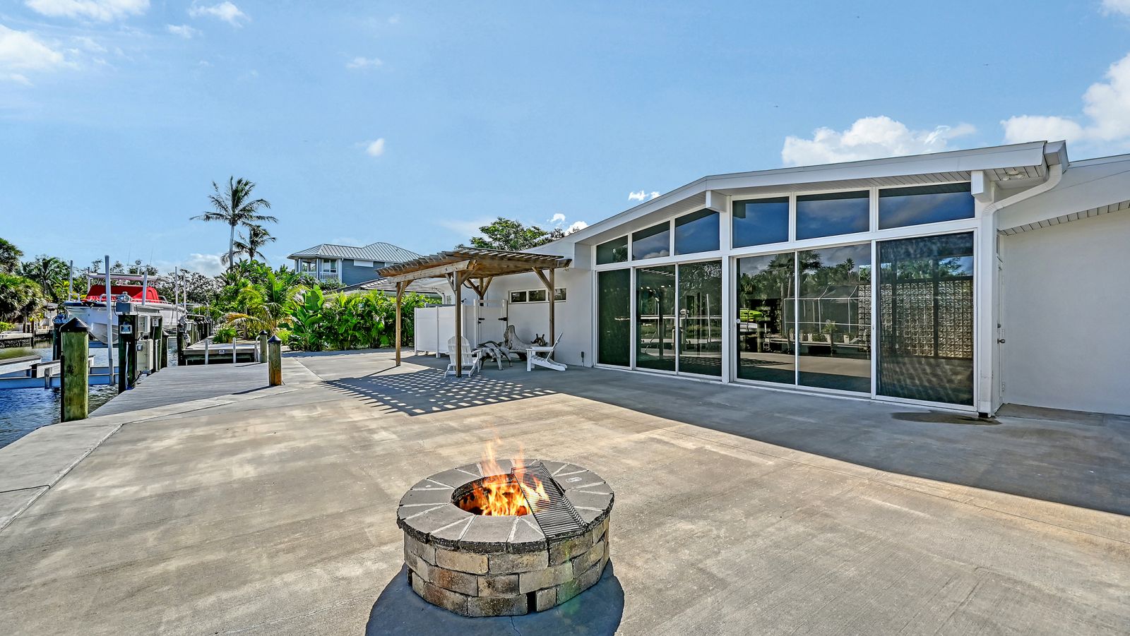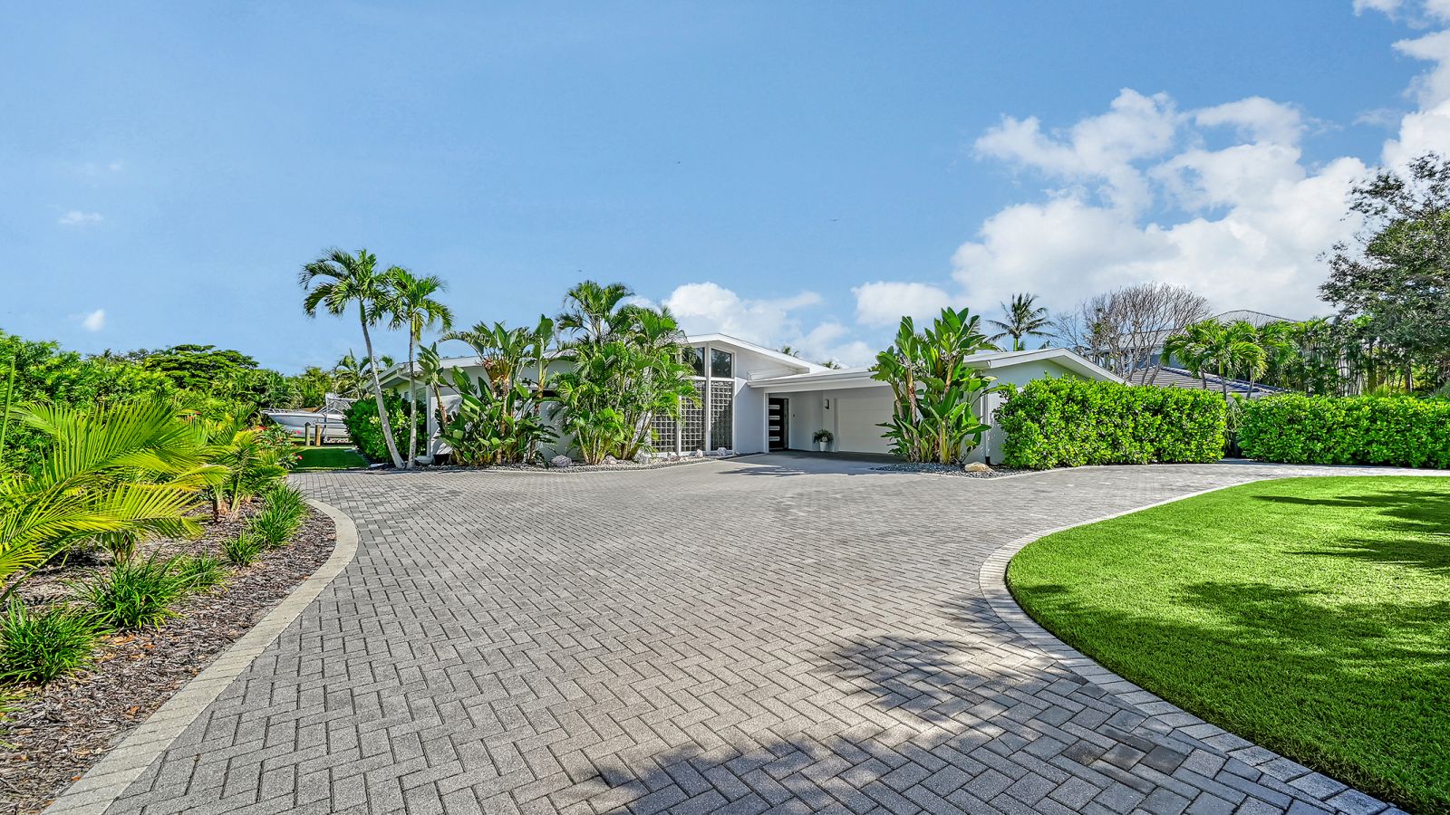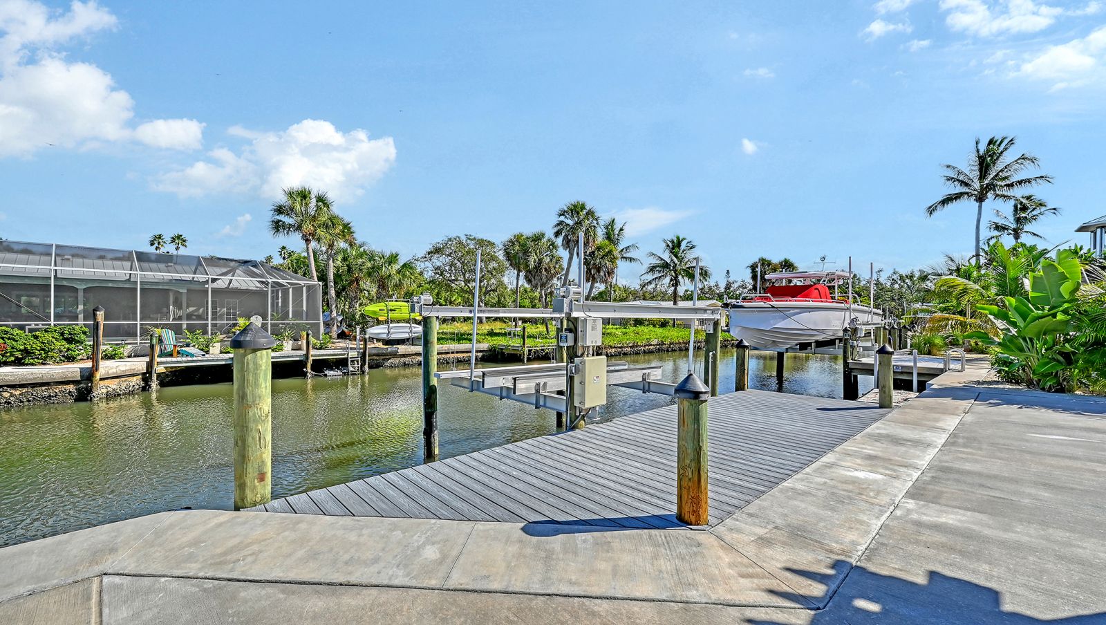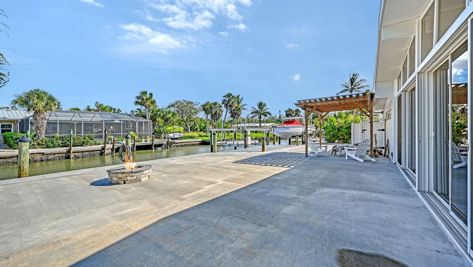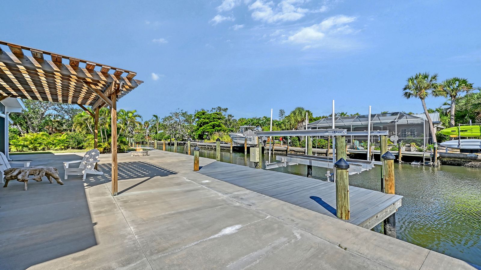 One or more photo(s) has been virtually staged. Welcome to an exceptional mid-century modern waterfront residence in Buttonwood Harbor, custom renovated from the ground up to deliver luxury coastal living. Situated on a deepwater canal with direct Gulf access, this 3-bedroom, 2-bath home offers timeless mid-century architecture, exceptional boating access, and thoughtfully integrated modern upgrades. Boaters will appreciate the private dock with a 13,000-pound boat lift, electricity, water, dock lighting, a raised seawall cap, and effortless navigation to open water. Inside, the open-concept layout centers on a spectacular chef's kitchen featuring custom shaker cabinetry, high-end appliances, a commercial-grade induction range with vent hood, wall oven, and an oversized quartzite island that anchors the space with elegance and functionality. Porcelain tile flows throughout the home, complementing the fresh interior and exterior finishes. The primary suite offers a spa-quality experience with a freestanding soaking tub, frameless glass walk-in shower, and dual vanities. Additional highlights include a new roof and HVAC system including new ductwork installed in 2020, a large laundry and utility room, a two-car garage, and a circular paver driveway. The outdoor living area is equally compelling, with tropical landscaping, a pergola, firepit, outdoor shower, and room to entertain. Located in one of Longboat Key's most desirable neighborhoods, the property offers access to a private boat ramp, fishing piers, beach access, and irrigation water through an optional $600 per year HOA. This is a rare opportunity to own a fully renovated waterfront home that delivers both immediate comfort and enduring value. Private showings available by appointment.