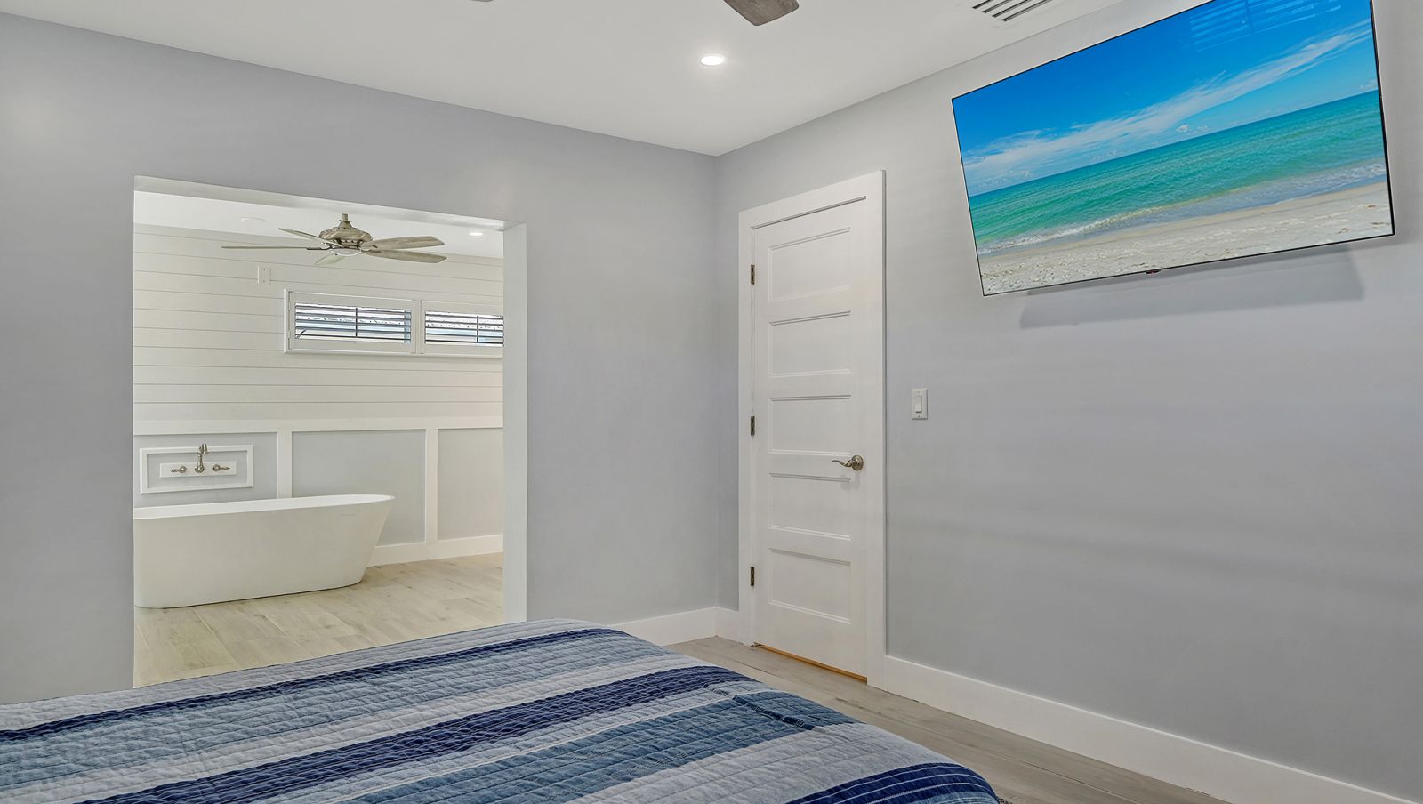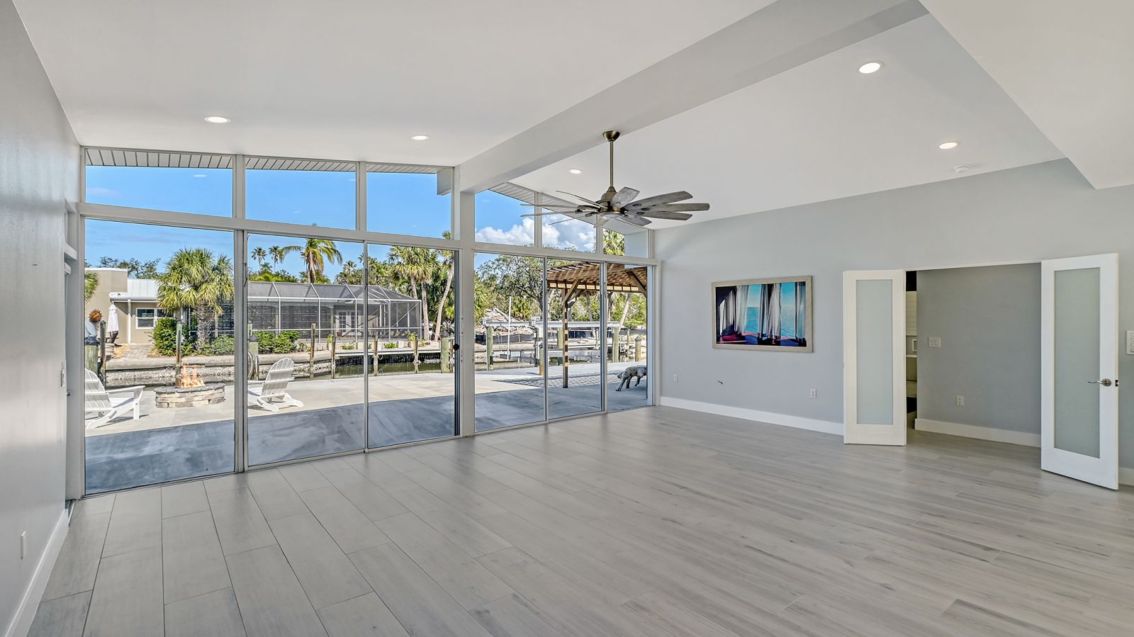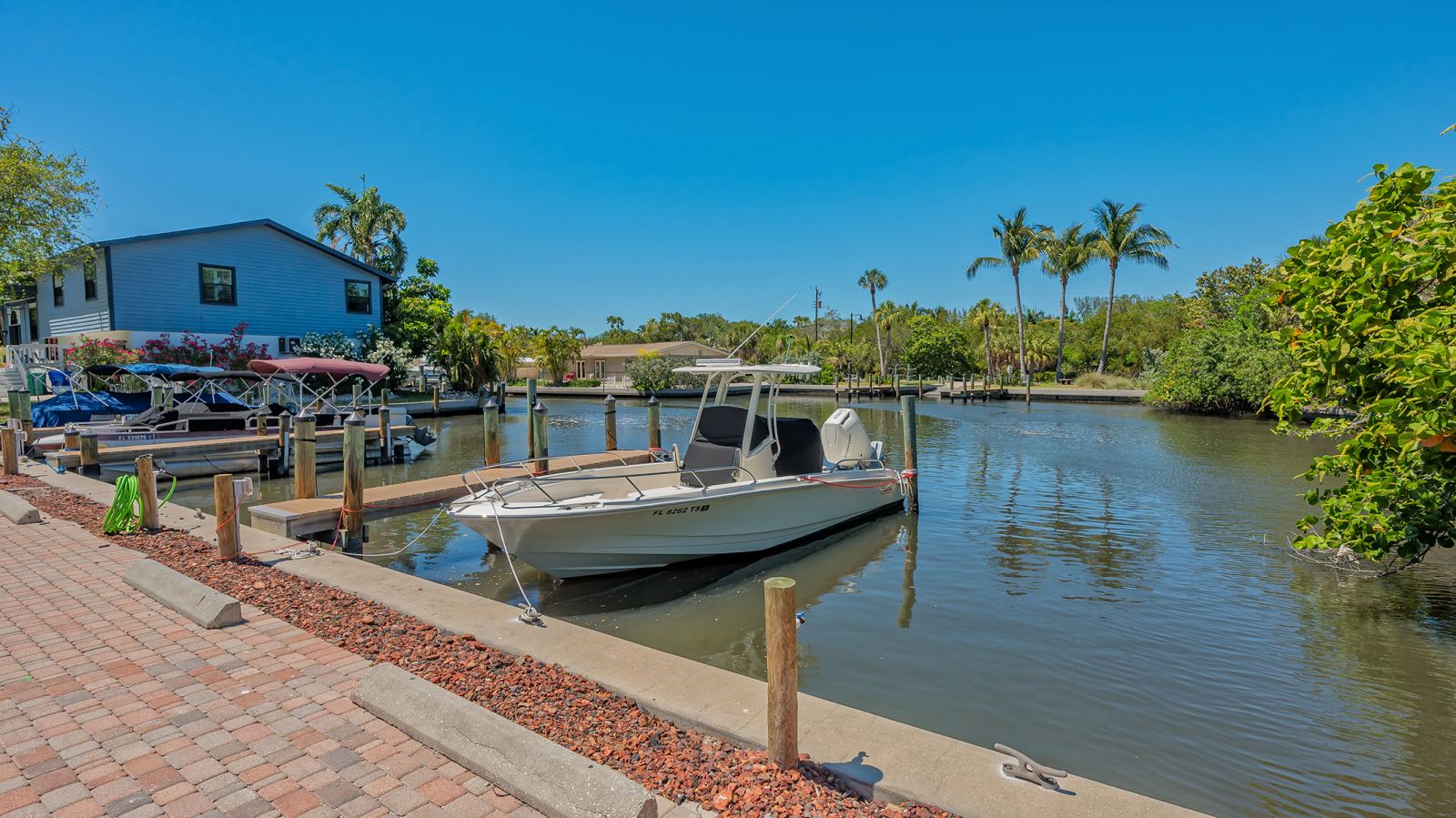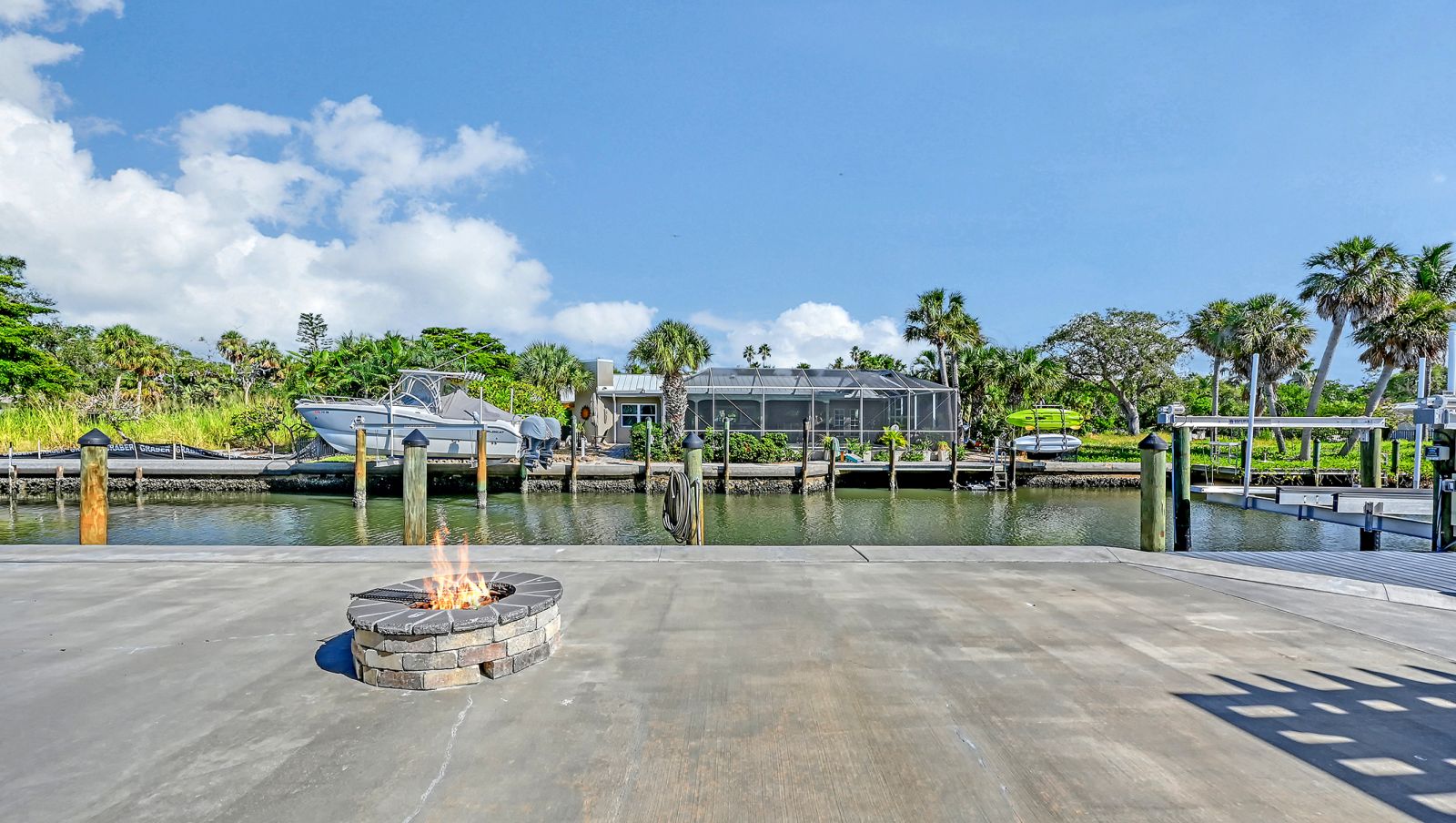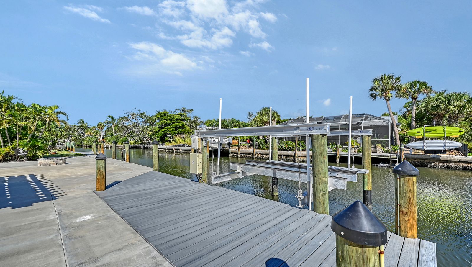 One or more photo(s) has been virtually staged. Welcome to an exceptional mid-century modern waterfront residence in Buttonwood Harbor, custom renovated from the ground up to deliver luxury coastal living. Situated on a deepwater canal with direct Gulf access, this 3-bedroom, 2-bath home offers timeless mid-century architecture, exceptional boating access, and thoughtfully integrated modern upgrades. Boaters will appreciate the private dock with a 13,000-pound boat lift, electricity, water, dock lighting, a raised seawall cap, and effortless navigation to open water. Inside, the open-concept layout centers on a spectacular chef's kitchen featuring custom shaker cabinetry, high-end appliances, a commercial-grade induction range with vent hood, wall oven, and an oversized quartzite island that anchors the space with elegance and functionality. Porcelain tile flows throughout the home, complementing the fresh interior and exterior finishes. The primary suite offers a spa-quality experience with a freestanding soaking tub, frameless glass walk-in shower, and dual vanities. Additional highlights include a new roof and HVAC system including new ductwork installed in 2020, a large laundry and utility room, a two-car garage, and a circular paver driveway. The outdoor living area is equally compelling, with tropical landscaping, a pergola, firepit, outdoor shower, and room to entertain. Located in one of Longboat Key's most desirable neighborhoods, the property offers access to a private boat ramp, fishing piers, beach access, and irrigation water through an optional $600 per year HOA. This is a rare opportunity to own a fully renovated waterfront home that delivers both immediate comfort and enduring value. Private showings available by appointment.