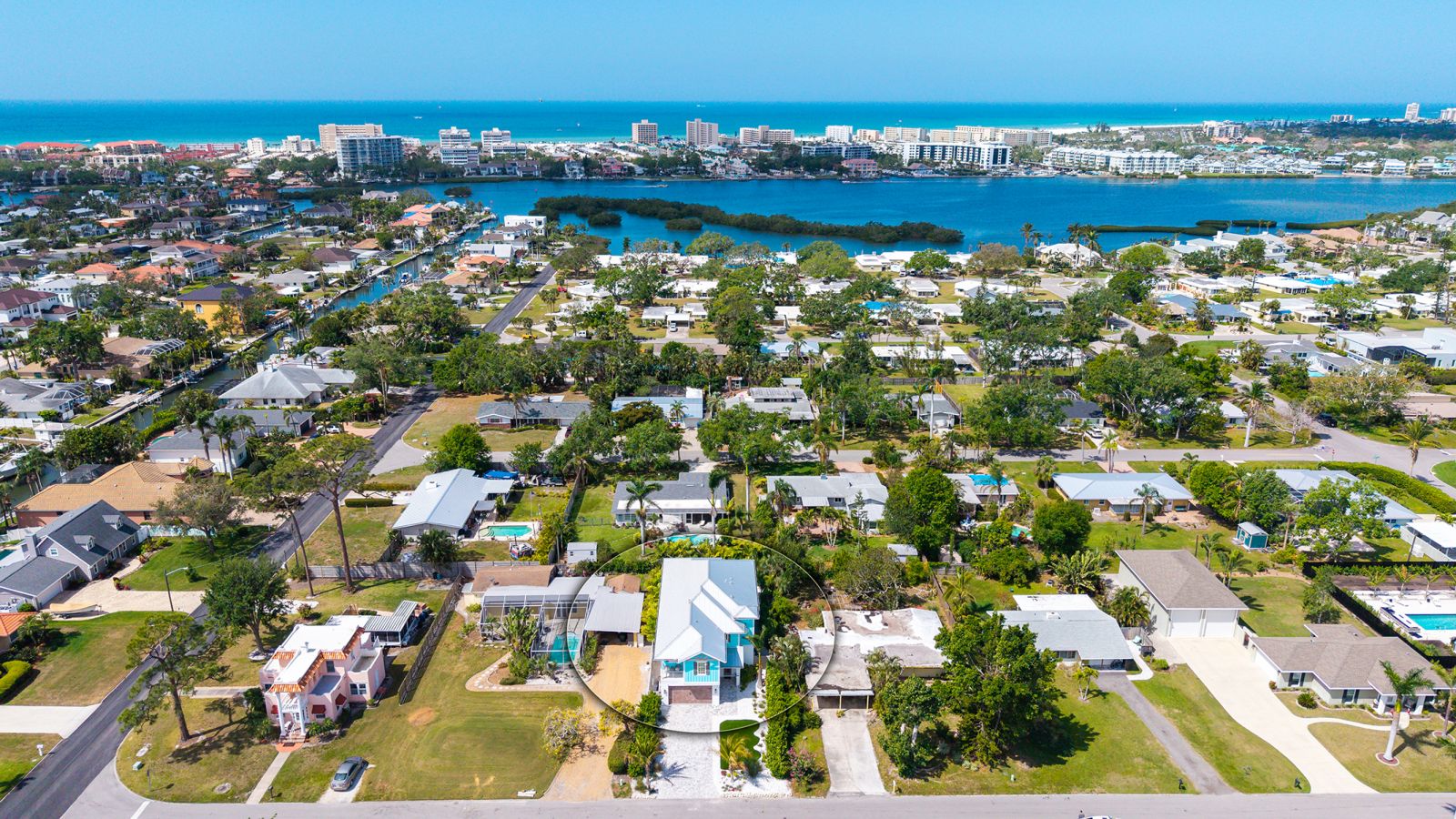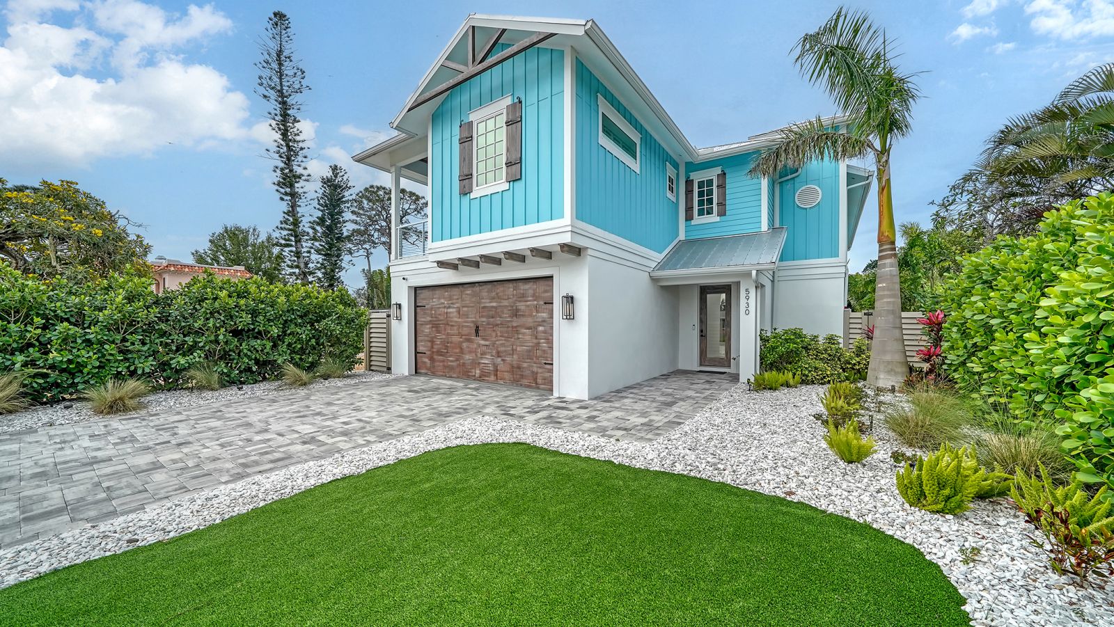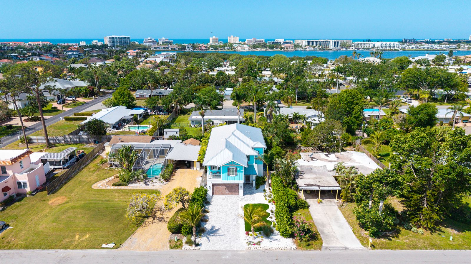 Welcome to a newly built coastal contemporary showplace minutes from Siesta Key Beach! This west of the trail home has approximately 3428 sqft including 4 bedrooms, 4 full bathrooms, and an 1100sqft bonus room. Floor to ceiling glass walls encase the bonus room along with a 31.5 ft long NanaWall glass bifold door system. These doors open up to a gorgeous custom contemporary pool complete with an expansive sun shelf and raised infinity edge spa. As you enter the kitchen, a striking oversized exotic quartzite island greets you with a waterfall edge. Adjacent to the kitchen in this open floor plan, a cozy family room awaits under a 13 ft vaulted ceiling complete with motorized drapery. The master bedroom also has the convenience of motorized pirouette shades along with his and her walk-in closets and a beautifully finished bathroom. Engineered hardwood and marble tile flooring are throughout all main living areas and bedrooms. For modern convenience, Lutron automated lighting and security cameras are available throughout most of the home. No flood insurance required! Flood zone - X. A must see! Motivated Seller!
