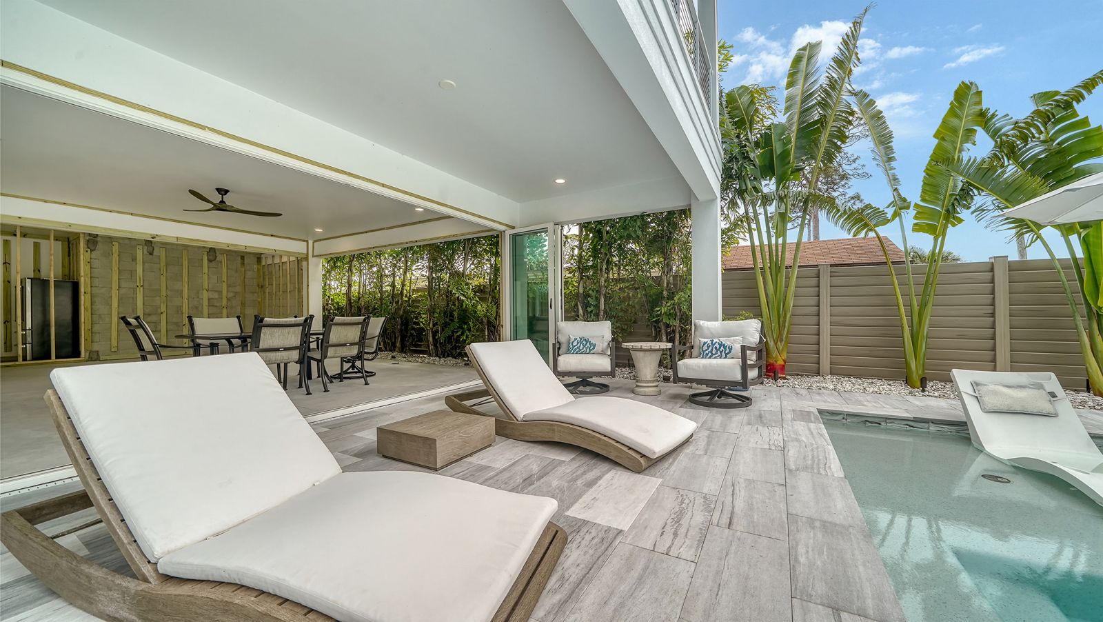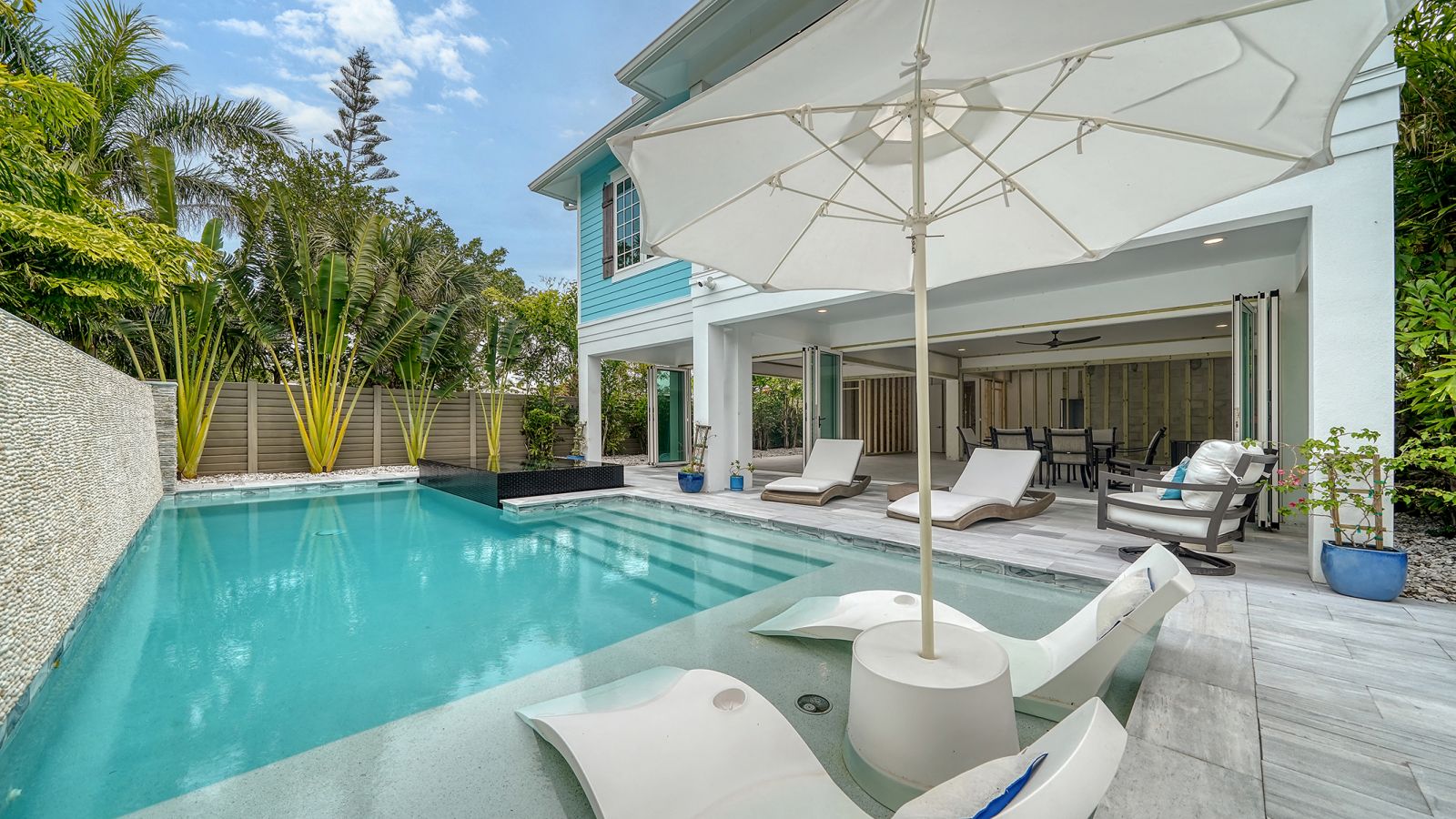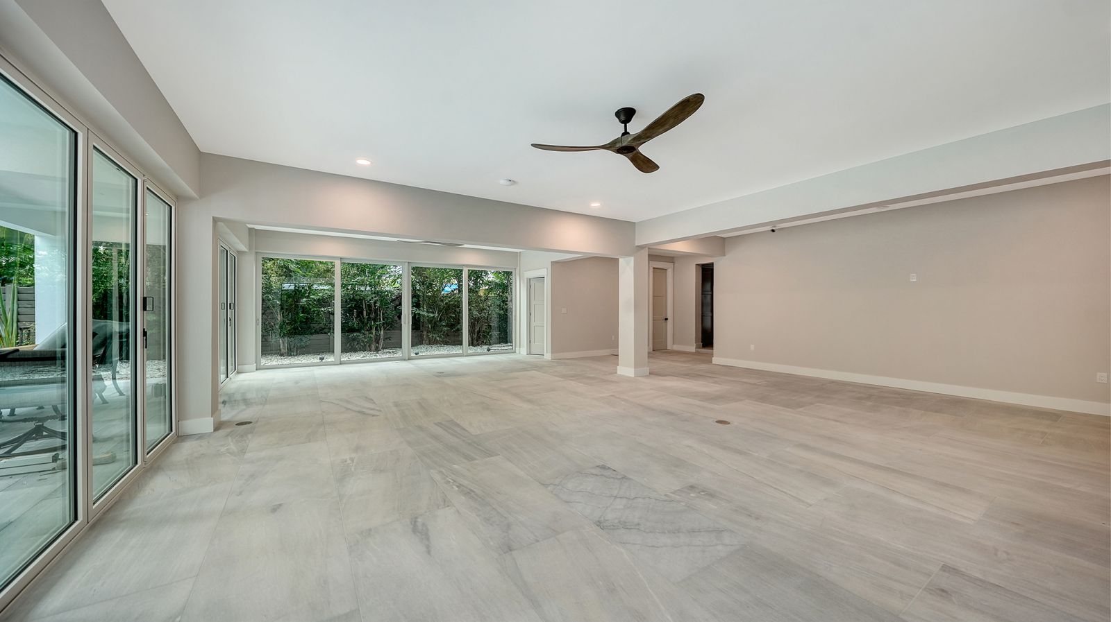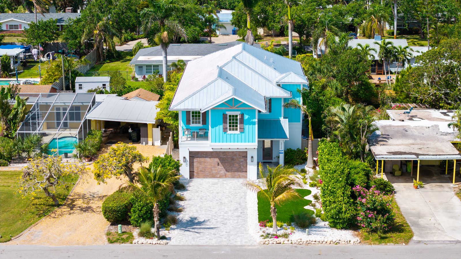 Welcome to a newly built coastal contemporary showplace minutes from Siesta Key Beach! This west of the trail home has approximately 3428 sqft including 4 bedrooms, 4 full bathrooms, and an 1100sqft bonus room. Floor to ceiling glass walls encase the bonus room along with a 31.5 ft long NanaWall glass bifold door system. These doors open up to a gorgeous custom contemporary pool complete with an expansive sun shelf and raised infinity edge spa. As you enter the kitchen, a striking oversized exotic quartzite island greets you with a waterfall edge. Adjacent to the kitchen in this open floor plan, a cozy family room awaits under a 13 ft vaulted ceiling complete with motorized drapery. The master bedroom also has the convenience of motorized pirouette shades along with his and her walk-in closets and a beautifully finished bathroom. Engineered hardwood and marble tile flooring are throughout all main living areas and bedrooms. For modern convenience, Lutron automated lighting and security cameras are available throughout most of the home. No flood insurance required! Flood zone - X. A must see! Motivated Seller!