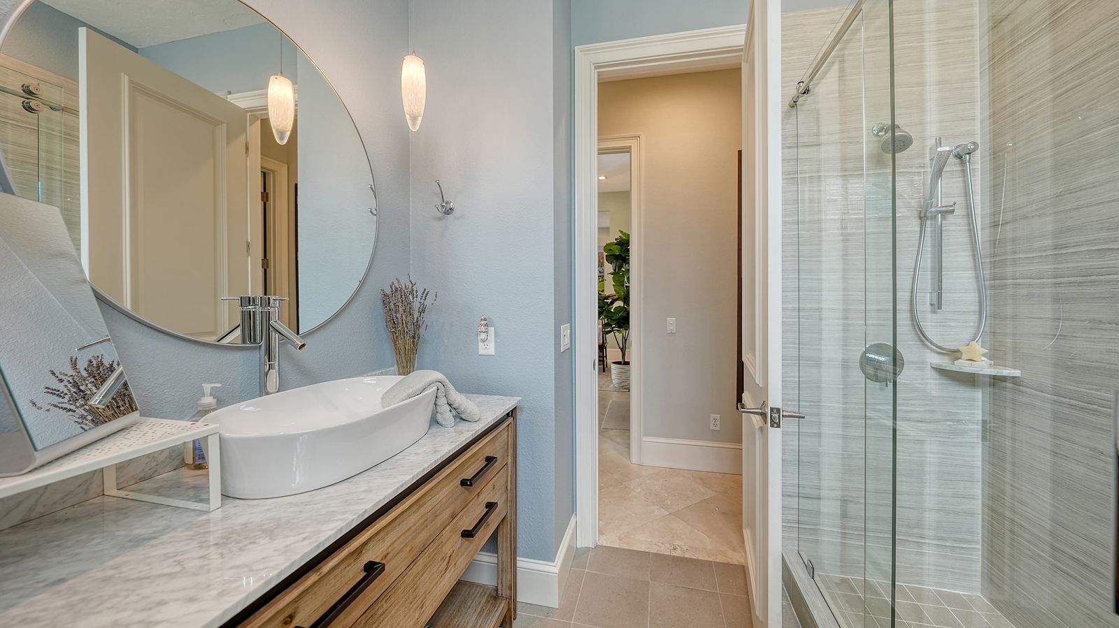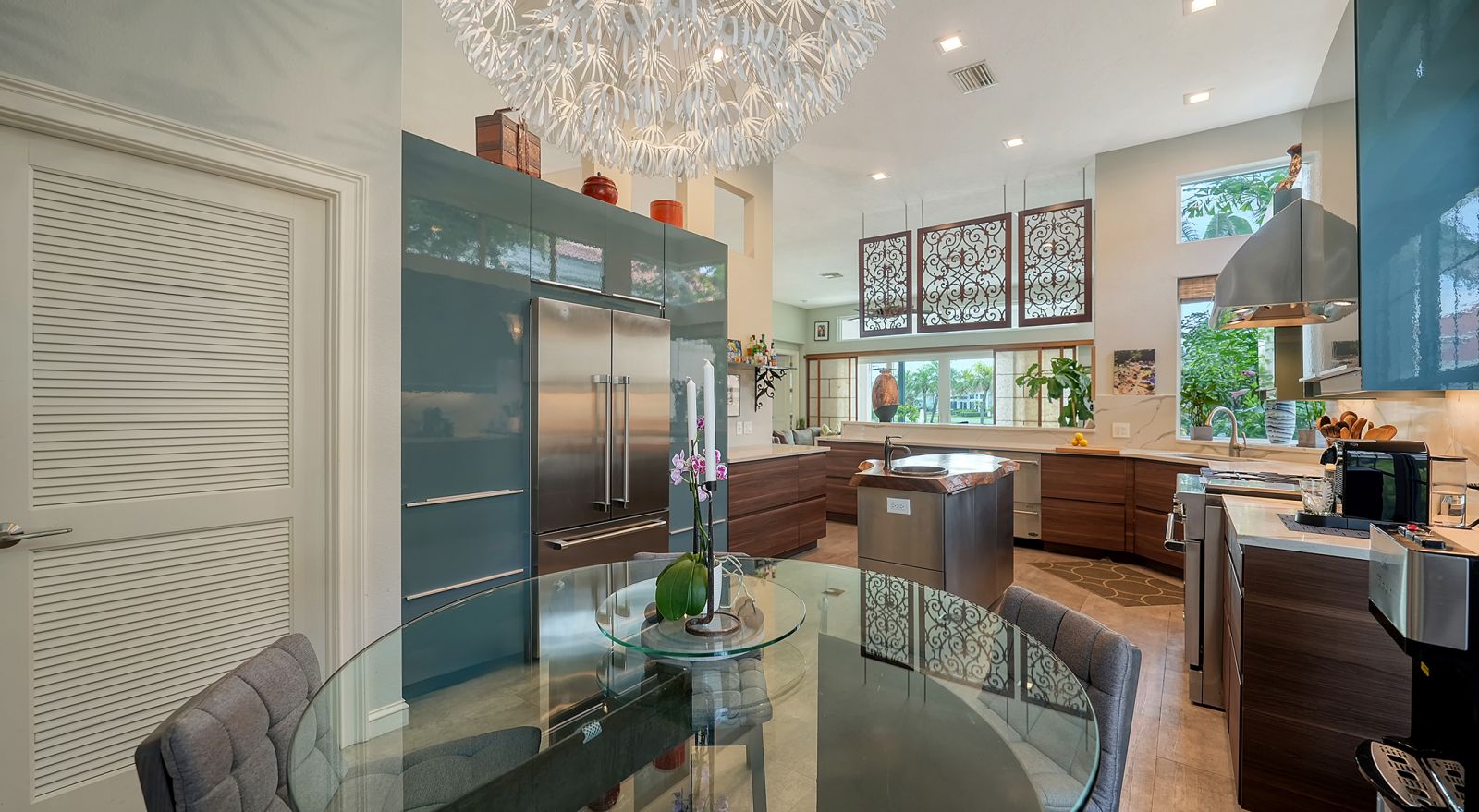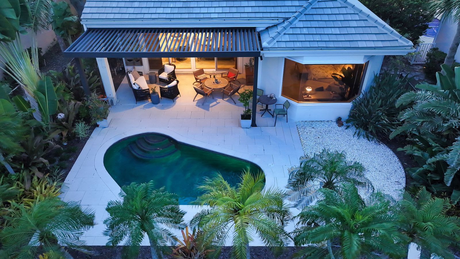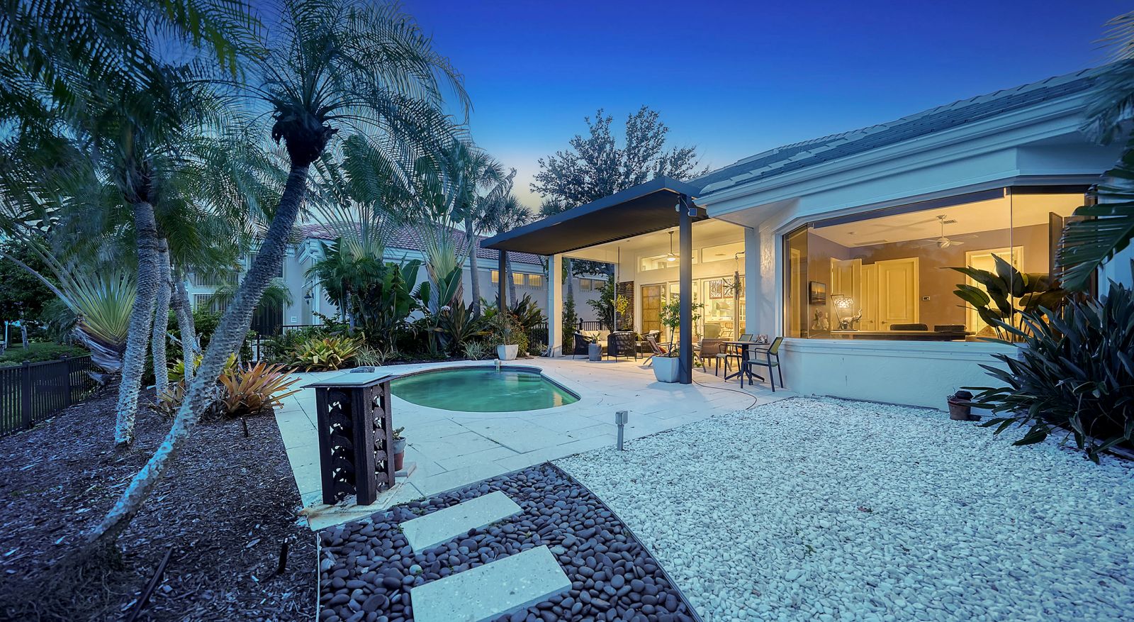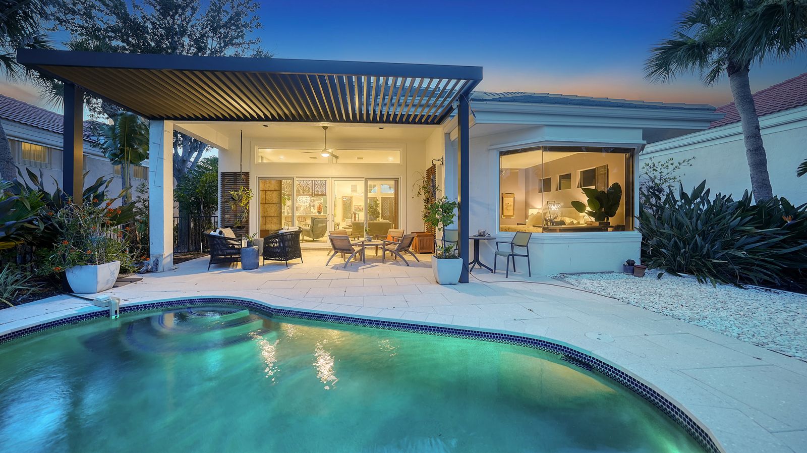 Welcome to an extraordinary transformation where sophisticated artistry meets modern urban luxury, elevating the serene prestige of Queens Harbour on Longboat Key. This impeccably reimagined 3-bedroom, 2-bath residence offers rare ambiance and refinement, seamlessly merging interior elegance with outdoor serenity. Custom shoji doors envelop hurricane-impact sliders, creating a glowing, intimate setting--perfect for alfresco evenings or savoring the sculptural stone fireplace within the great room. Soaring ceilings and curated niches showcase fine art and architectural detail, infusing the home with stylish warmth. Creamy textures--from hand-selected travertine underfoot to cascading quartz waterfall countertops--form a soothing, sophisticated backdrop. The chef-inspired kitchen is both beautiful and highly functional. An exotic wood island, hammered copper sink, and premium DCS stainless gas cooktop with built-in ovens evoke culinary artistry. Designer lighting illuminates the quartz surfaces, while the chic breakfast area--with its bespoke wall print--suggests an upscale Manhattan suite. Fisher & Paykel dishwasher drawers elevate entertaining, and the expansive breakfast bar invites guests to gather in effortless style. The luminous open plan flows to a formal dining room ideal for gracious hosting, all connected to the great room and tranquil Zen garden beyond. Oversized sliders dissolve the boundary between indoors and the lush backyard oasis, framing the serene pool like a living painting. The owners' suite is a sanctuary with generous proportions, a walk-in closet, a peaceful lounge/workspace, and private pool access overlooking the gentle pond. The primary bath is a masterpiece--dual vanities, refined finishes, and a two-person walk-in shower enclosed in seamless glass, creating a spa-like haven. The second ensuite bedroom is bathed in sunlight from a sweeping wall of windows and offers private bath access. Luxurious quartz, tile, and high-end fixtures provide understated refinement, with a spacious closet and nearby linen storage for guests. The third bedroom/den, currently styled as a chic office, easily converts to a guest suite. Custom built-ins set a sophisticated tone--ideal for unwinding after days at the nearby beaches. From its intricately carved double doors to its elevated fixtures and finishes, this home radiates warmth, craftsmanship, and refined coastal luxury. A complete 2018 renovation ensures comfort and peace of mind--move right in and begin living the easy, distinguished lifestyle that defines Queens Harbour and Longboat Key. Residents enjoy access to the Bay Isles Beach Club with BBQs, volleyball, covered pavilions, a private kitchen, and storage--perfect for sunset gatherings. Optional memberships at the renowned Longboat Key Club offer premier pickleball, tennis, 45 holes of championship golf, a deep-water marina, fine dining, spa, fitness center, and 10 miles of white-sand beach. Come live the dream.