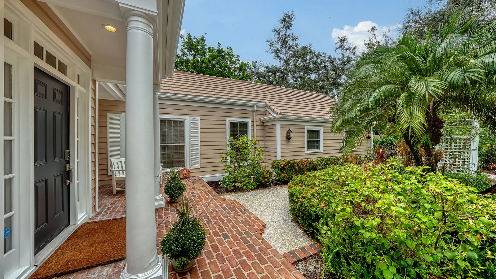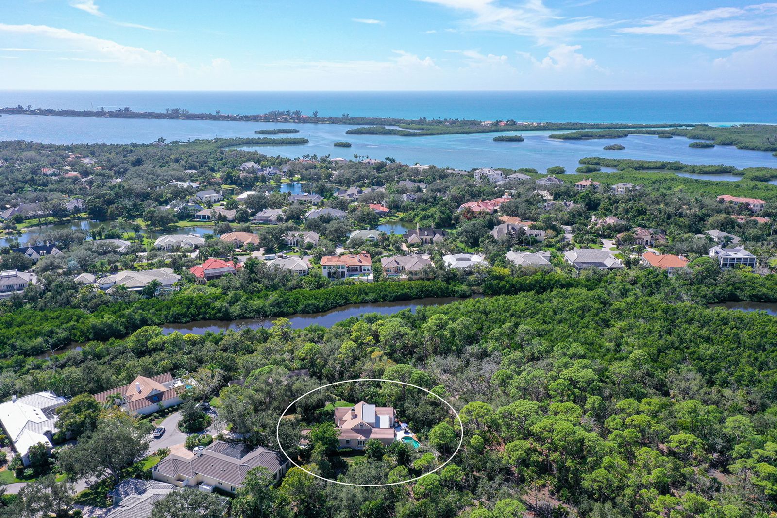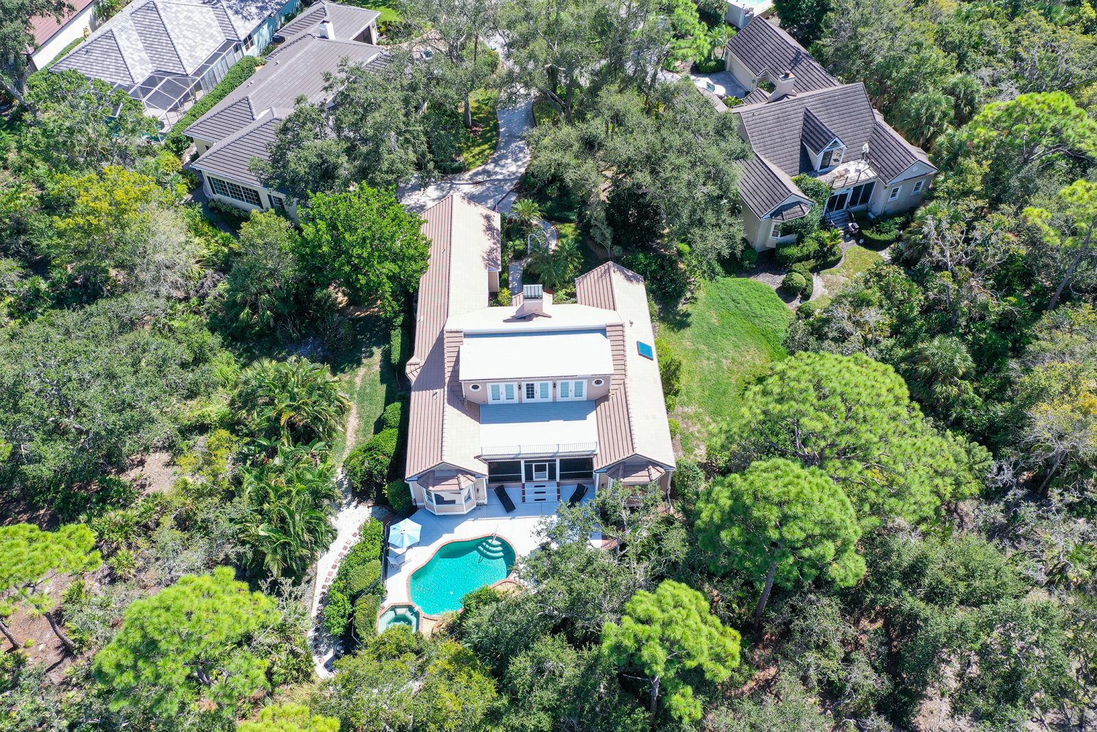 This stunning three bedroom, 3.5 bath home, designed by the renowned architect Frank Folsom Smith, stands out with its unique design. This charming Cape Cod sets the stage for comfortable, gracious living, enjoying private preserve views. A Sonos sound system plays throughout this gorgeous home! Sit back and enjoy a peaceful afternoons and twilight dinners on the lovely newly screened Florida room. There is an additional private rooftop outdoor deck (732 sq.ft.) accessed directly from the second floor living and recreation rooms. Recent renovations in 2023 include two main floor bathrooms with exquisite high-end decorator wall tiles, as well as Italian floor tiles. Premium glass enclosures complement the premium fixtures. The spectacular master bathroom features an elegant standalone bathtub situated under a glass skylight for that Wow factor! The powder room has also been completely renovated and features shiplap accents. The laundry room features new ceramic tile floors, newer washer and dryer, extensive shiplap walls, and a sliding barn door for the generous pantry. Additional features include crown molding throughout the ground floor and in the elegant, wainscoted dining and living areas. The bedrooms have newer ceiling fans, and the master bedroom has an oversize 52-inch decorator windmill fan, just beautiful! The living room, with an enhanced whitewashed fireplace and large screen TV with surround sound, is the perfect space for relaxing or entertaining family and friends. The living room doors open to the Florida room that gives view to the secluded outdoor patio and pool area surrounded by the pristine preserve. The pool has undergone extensive updates, including a new heat pump pool heater and new filtration system. The second floor has a new flat roof (2025), installed by Curry Roofing and includes a warranty. Premium decorator light fixtures have been installed in the dining room, kitchen, and foyer. The entire exterior was painted in August 2025. This charming home, with its private setting on a double lot at the end of a cul-de-sac, is the perfect Florida retreat. Situated in the Oaks Preserve, Bishops Court features include 24 hour guarded gate access, and lawn and landscape maintenance with irrigation. Bishops Court residents can take advantage of the amenities of The Oaks Club, Sarasota's premier golf and country club. Membership, either social or golf, is required with the with home ownership. The Oaks Club has two distinctly unique 18-hole championship golf courses, 12 hartru lit tennis courts, croquet, and pickle ball courts. There is a state-of-the-art fitness center, fine and casual dining options, and many social events for you to enjoy the seasons at The Oaks.
