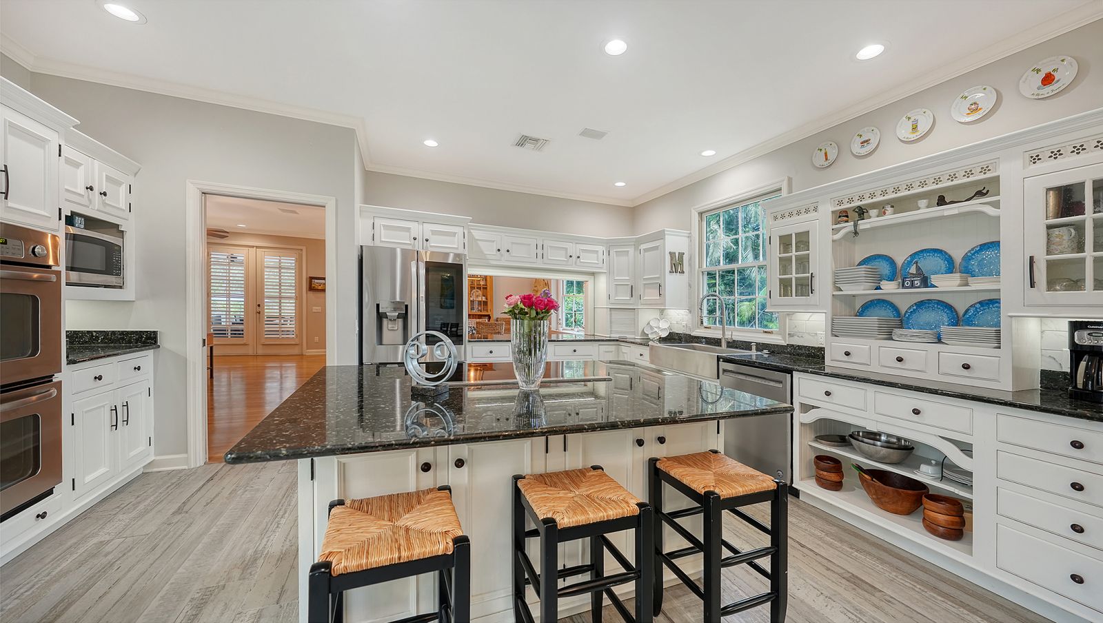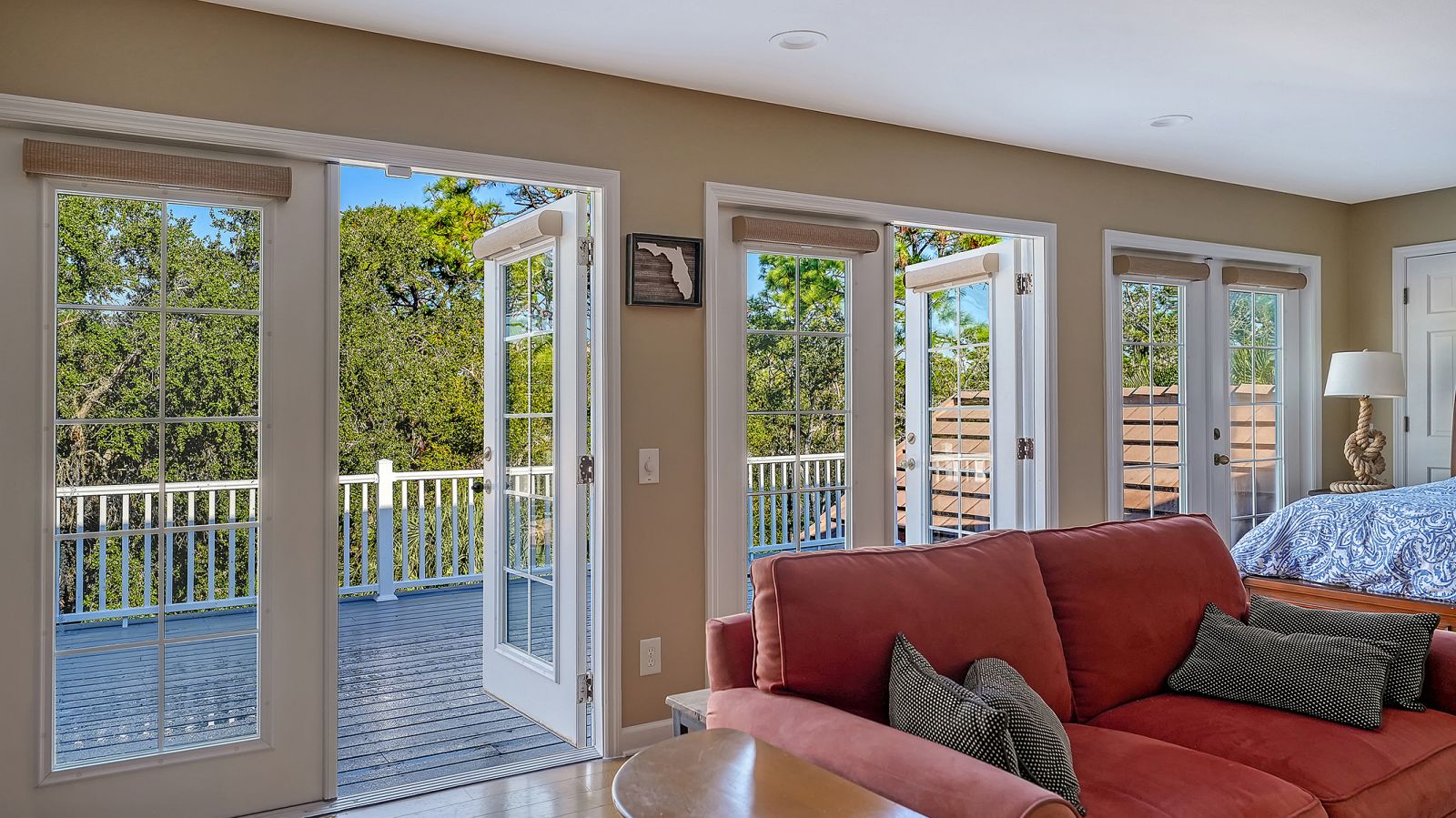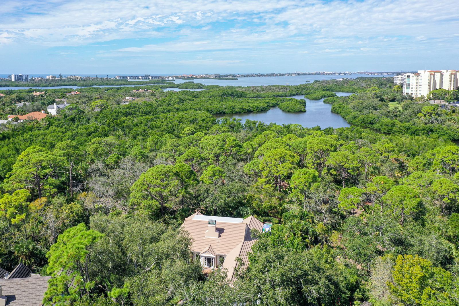 This stunning three bedroom, 3.5 bath home, designed by the renowned architect Frank Folsom Smith, stands out with its unique design. This charming Cape Cod sets the stage for comfortable, gracious living, enjoying private preserve views. A Sonos sound system plays throughout this gorgeous home! Sit back and enjoy a peaceful afternoons and twilight dinners on the lovely newly screened Florida room. There is an additional private rooftop outdoor deck (732 sq.ft.) accessed directly from the second floor living and recreation rooms. Recent renovations in 2023 include two main floor bathrooms with exquisite high-end decorator wall tiles, as well as Italian floor tiles. Premium glass enclosures complement the premium fixtures. The spectacular master bathroom features an elegant standalone bathtub situated under a glass skylight for that Wow factor! The powder room has also been completely renovated and features shiplap accents. The laundry room features new ceramic tile floors, newer washer and dryer, extensive shiplap walls, and a sliding barn door for the generous pantry. Additional features include crown molding throughout the ground floor and in the elegant, wainscoted dining and living areas. The bedrooms have newer ceiling fans, and the master bedroom has an oversize 52-inch decorator windmill fan, just beautiful! The living room, with an enhanced whitewashed fireplace and large screen TV with surround sound, is the perfect space for relaxing or entertaining family and friends. The living room doors open to the Florida room that gives view to the secluded outdoor patio and pool area surrounded by the pristine preserve. The pool has undergone extensive updates, including a new heat pump pool heater and new filtration system. The second floor has a new flat roof (2025), installed by Curry Roofing and includes a warranty. Premium decorator light fixtures have been installed in the dining room, kitchen, and foyer. The entire exterior was painted in August 2025. This charming home, with its private setting on a double lot at the end of a cul-de-sac, is the perfect Florida retreat. Situated in the Oaks Preserve, Bishops Court features include 24 hour guarded gate access, and lawn and landscape maintenance with irrigation. Bishops Court residents can take advantage of the amenities of The Oaks Club, Sarasota's premier golf and country club. Membership, either social or golf, is required with the with home ownership. The Oaks Club has two distinctly unique 18-hole championship golf courses, 12 hartru lit tennis courts, croquet, and pickle ball courts. There is a state-of-the-art fitness center, fine and casual dining options, and many social events for you to enjoy the seasons at The Oaks.
