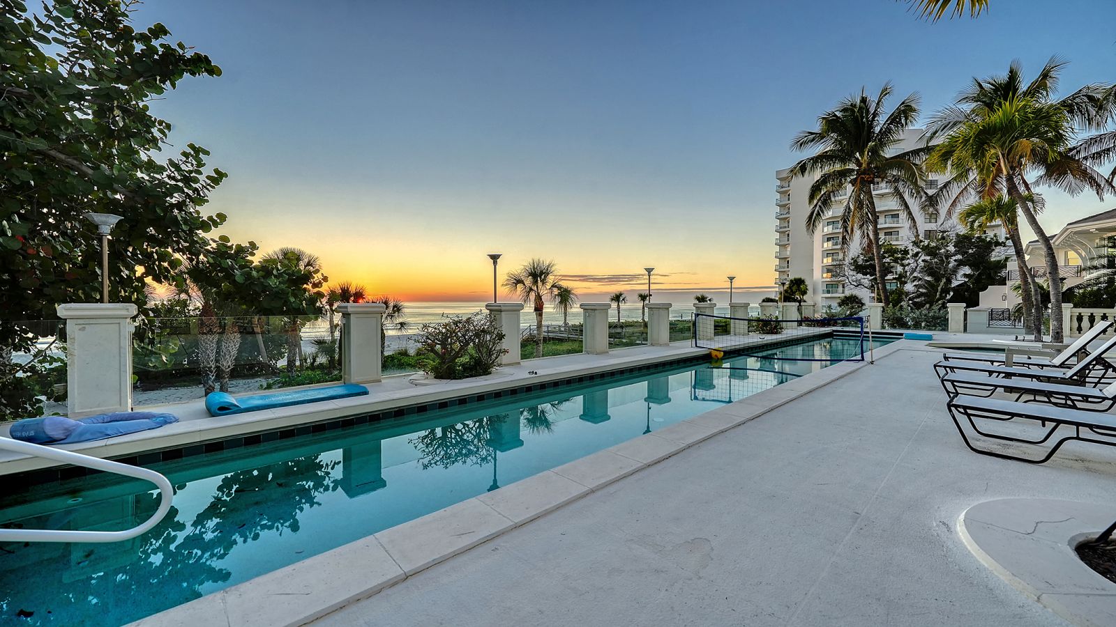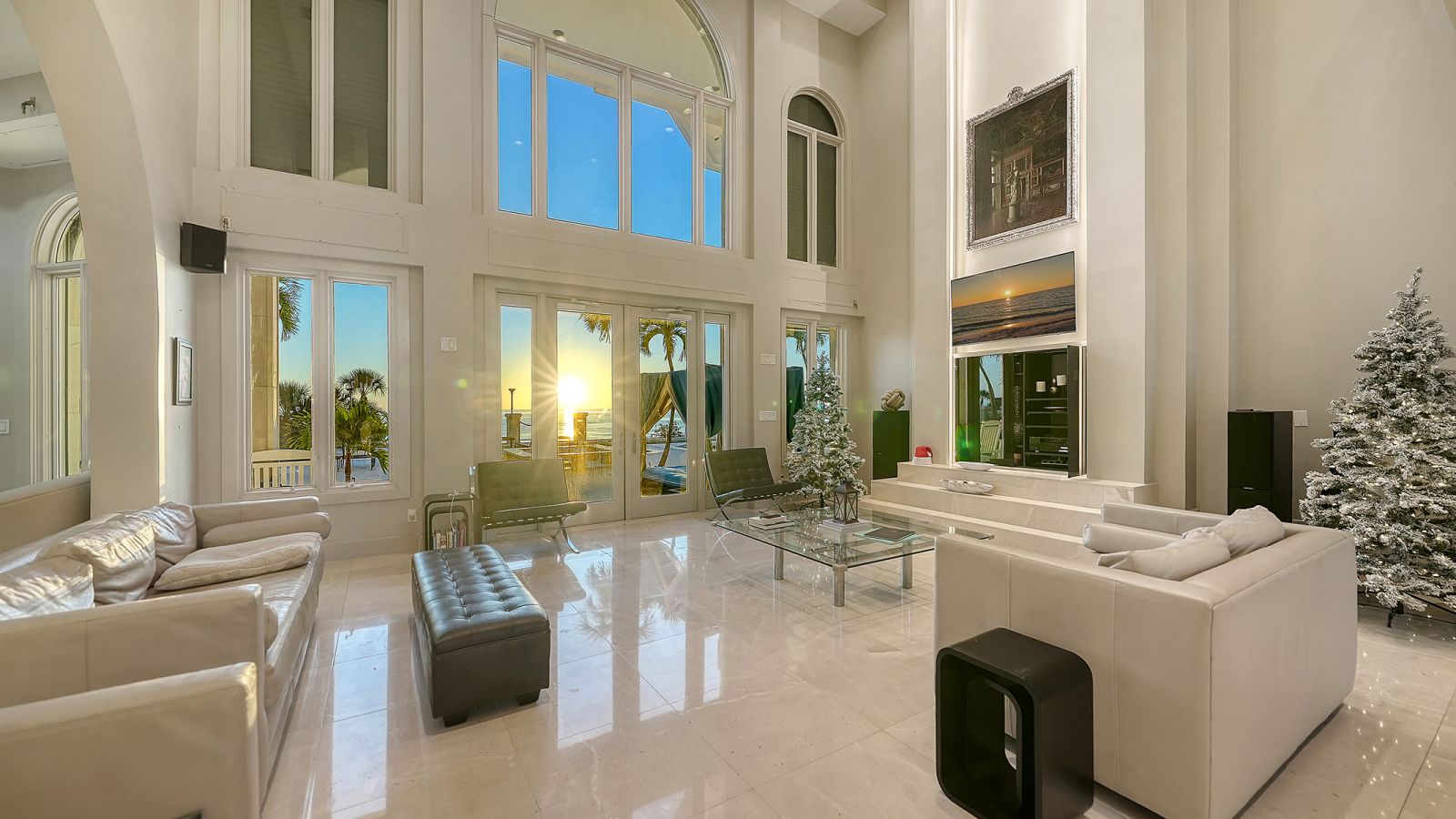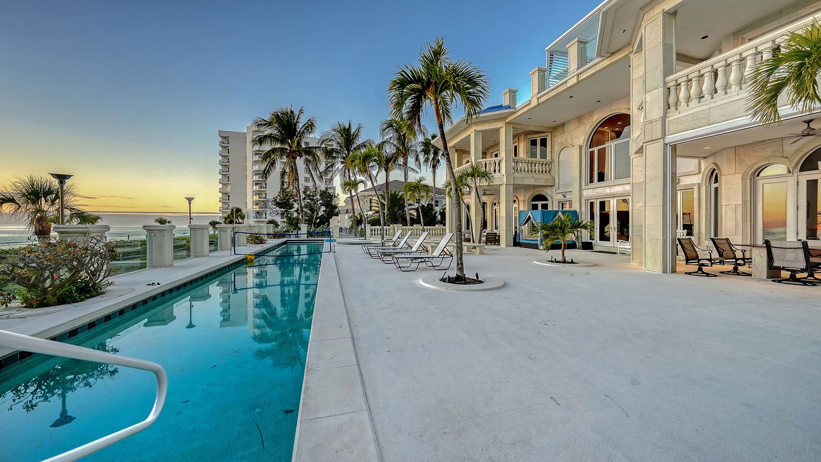 Regent's Court: The Pinnacle of Luxury on Florida's West CoastRegents Court: Where Legend Meets LuxuryBeyond the gates of the Longboat Key Club lies an estate that doesn't just live -- it performs. A dramatic masterpiece perched on Florida's west coast, this estate commands over an acre of pure beachfront with 150 feet of unspoiled Gulf frontage, where sky and water fuse in ever-changing hues at dawn and dusk.Your arrival is nothing short of cinematic: majestic wrought-iron gates part to reveal a sweeping driveway paved in artistic stone, each curve leading closer to the heart of the home. A side-entry garage, cavernous in its capacity, hides generous storage; beside it, a full-house generator promises unbroken comfort even when the world goes dark.Inside, every surface and silhouette feels sculpted for impact. Cream marble floors echo with light. Designer lighting drapes each room in mood and elegance. Premium stainless steel appliances anchor a gourmet kitchen, with a bar area that's built for both intimate soires and lavish celebrations. Across stately arches, French doors open into an office and dining space. Ascend via elevator through all four levels, each floor unveiling rooms with cathedral ceilings, balconies with sweeping views over the Gulf. The two-story library has custom woodwork. Adjacent to the large primary bedroom is the super-master bath with both tub and shower framing the Gulf in panoramic glory.On the second living level are three guest suites with private porches that render a daily spectacle -- mornings bathed in soft dawn light over the sand dunes and the Gulf, evenings lit by fading sun dancing across the waves. French doors open wide, blurring the boundary between indoors and the beach. The third living level includes an all inclusive guest quarters--your private sky-retreat. Two bedrooms, two baths, a full kitchen, a spacious living and TV room. From its large, sweeping porch, the views stretch across Sarasota Bay and the Gulf's glassy expanse. By day the Bay shimmers under sunlight, by dusk the city lights begin their soft glow. This is a space where family, friends--or guests--can escape, entertain, or simply soak in nature's most breathtaking performances.Outside is not secondary, but rather the heart of this sanctuary. Lush tropical landscaping surrounds the estate. There is a NCAA lap pool with motorized cover, a deck edged with gas torches, fire pits that flicker under the stars. There's an outdoor ice tub plus an outdoor kitchen with refrigerator and a gas grill. A special gym on the second floor is cooled to perfection, central control at your fingertips. Roll-safe shutters provide safety without sacrificing style.At every moment, this home evokes a rare elegance -- you're not just observing the sunset over the Gulf, you are enveloped by it. Minutes from Sarasota, St. Armand's Circle, Anna Maria -- yet here, time moves differently, more luxuriously.This is not just a home. This is a legacy.