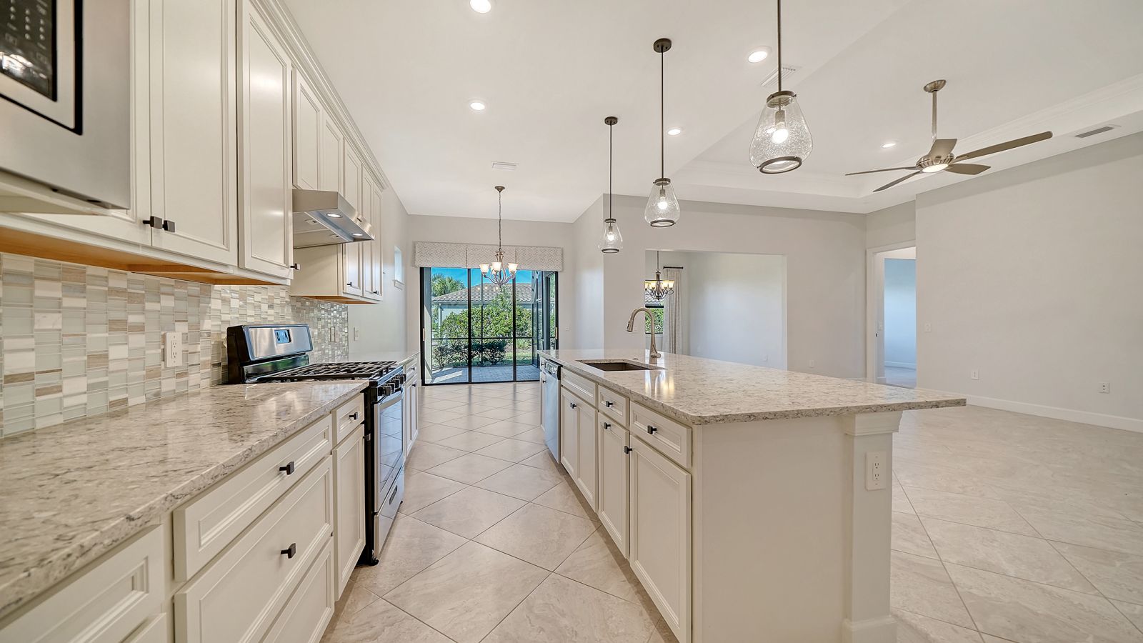 Del Webb Lakewood Ranch, vacant and move in ready, best value and priced to sell! Resort Living! Spacious 3-bedroom, 2.5-bath home on corner lot in the highly sought-after 55+ amenity rich resort style community. The perfect Florida retreat with a spacious open floor plan ideal for everyday living and entertaining. Freshly painted interior features a neutral palate with great room and extended dining area, a split bedroom layout for privacy, an open kitchen with gas appliances, breakfast nook and breakfast bar, spacious walk in pantry and a screened back porch. Corner lot offers room for a pool. The third bedroom features french doors perfect for a home office. A spacious laundry room and an attached oversized 2 car garage. Brick paver drive and walkway enhances the home's curb appeal. Enjoy a care free, low maintenance lifestyle with lawn care included, giving you more time to relax and take advantage of the incredible amenities--resort-style pool, pickleball courts, fitness center, tennis courts, community restaurant, dog park, clubhouse, and social activities. Everything you could possibly need is here! This home is your perfect Florida lifestyle, you'll enjoy world-class amenities, including 6 tennis courts, 8 pickleball courts, bocce ball, a state-of-the-art fitness center, group classes, a resort-style pool and lap pool, an on-site restaurant and bar, and a variety of clubs and social activities--all overseen by a full-time Lifestyle Director. The community's prime location provides easy access to Sarasota, Bradenton, Tampa, St. Petersburg, and Gulf coast beaches. Sarasota Bradenton International Airport or Tampa International Airport. Shopping, dining, and cultural attractions are minutes away at the nearby UTC. A beautiful home in a world class resort-style community. A perfect opportunity for your active Florida, sun soaked lifestyle.