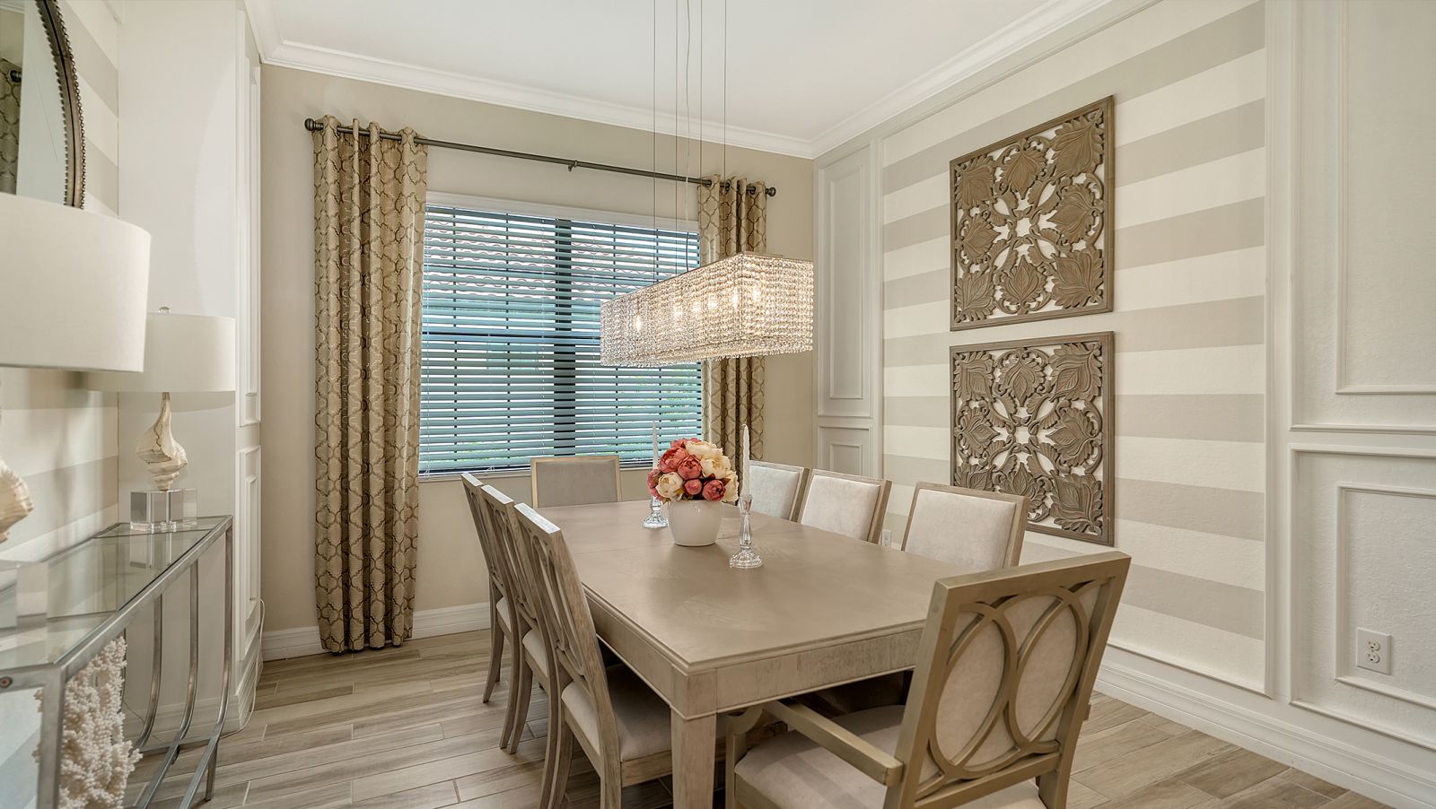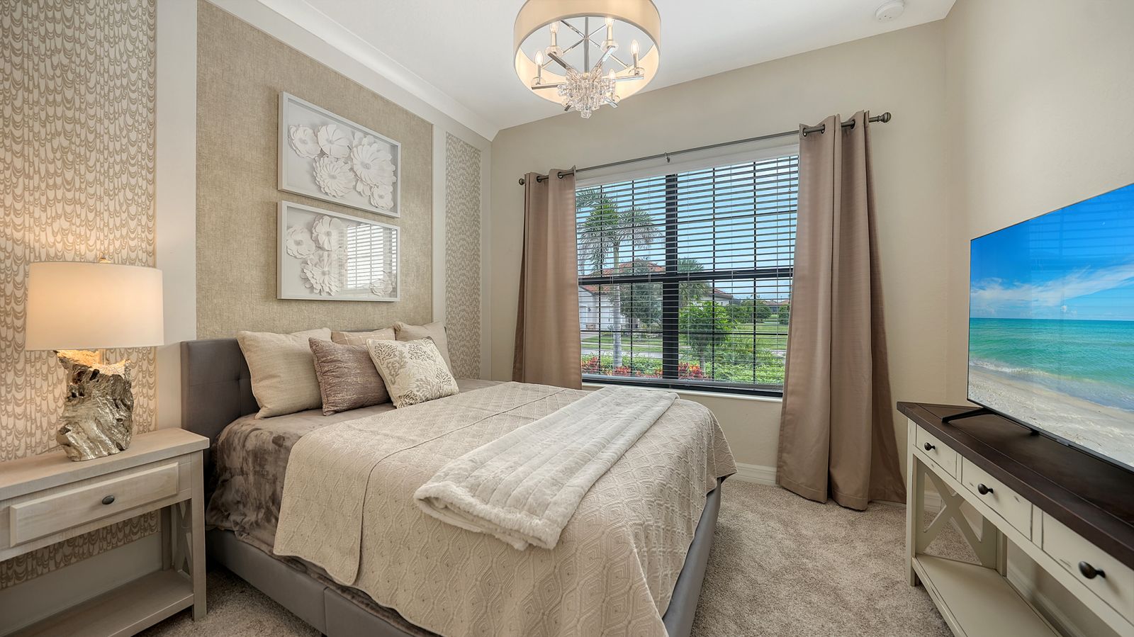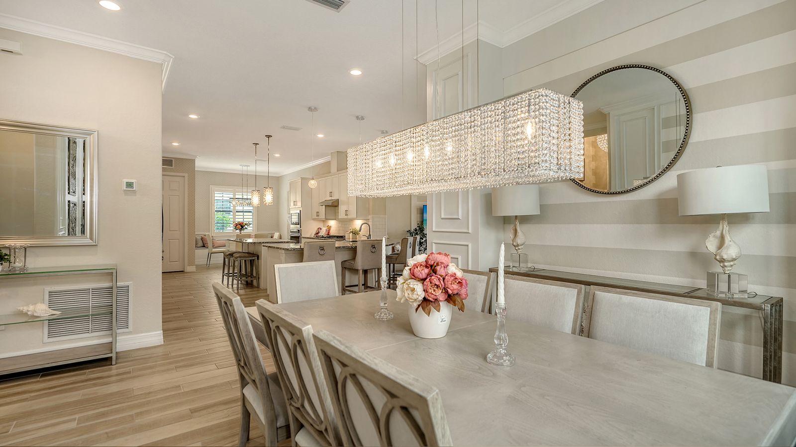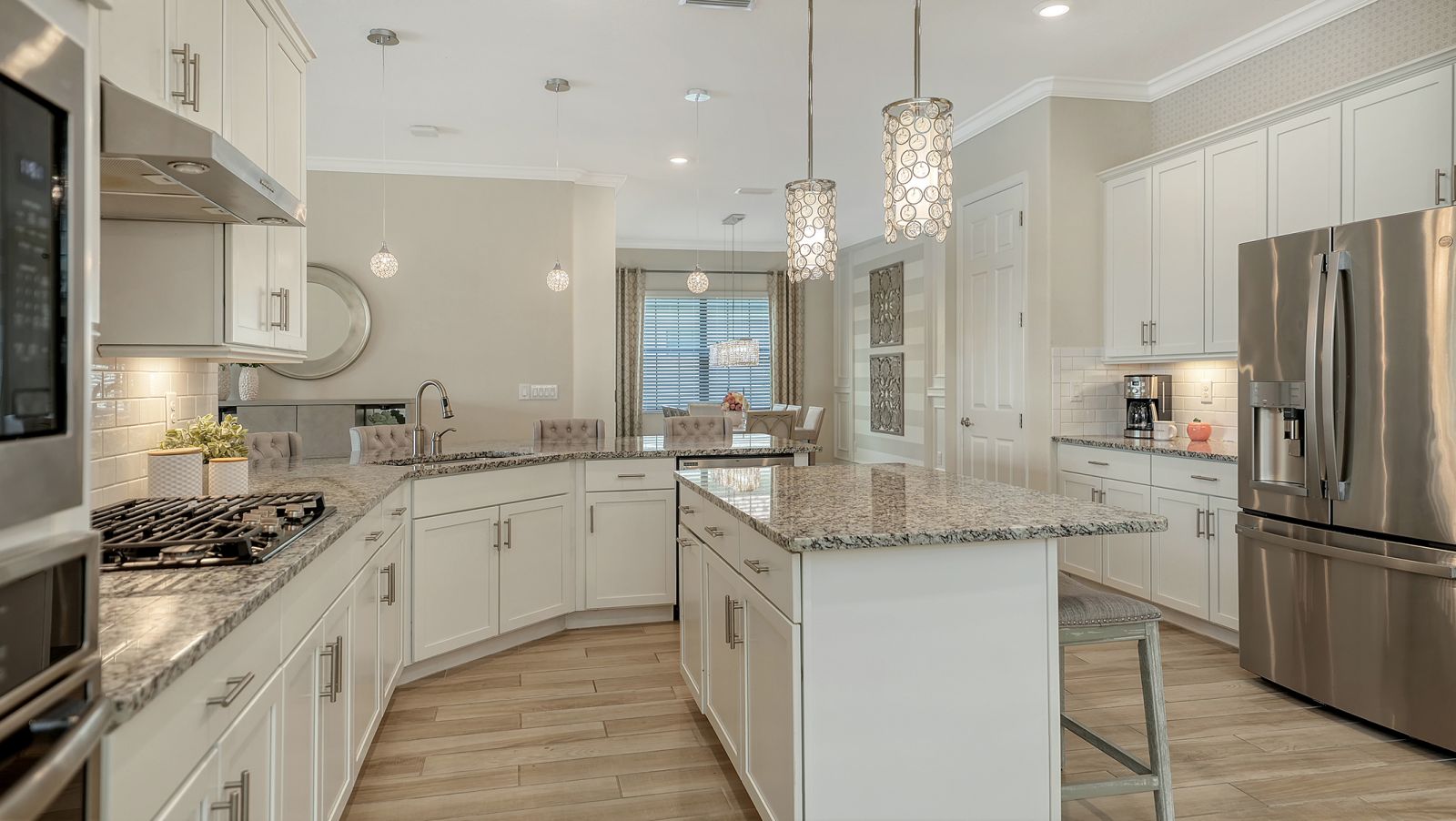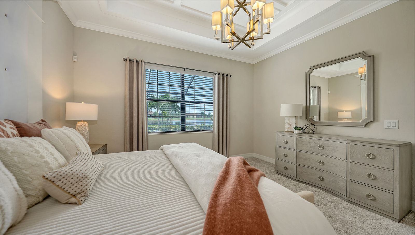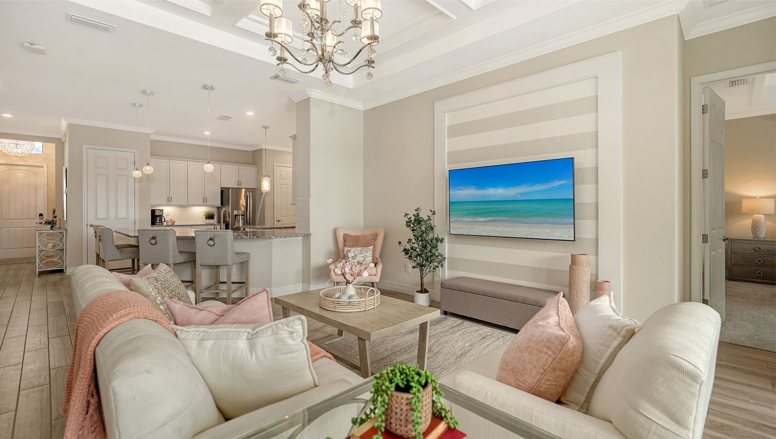 Under contract-accepting backup offers. Formerly a model home, this exquisite residence showcases hurricane impact glass windows and refined designer touches throughout, including custom molding and trim, detailed coffered ceilings, elegant lighting, and sophisticated wallpaper accents. Offered fully furnished, the home features four bedrooms, with a primary suite appointed with a soaking tub, frameless glass walk-in shower, double vanity and oversized walk-in closet. The kitchen, complete with a prep island, breakfast bar, sizable dinette space, pantry closet, gas cooktop, built-in oven and microwave, and stainless steel appliances, is complemented by an adjacent formal dining area. Designed for seamless indoor-outdoor living, sliders from the great room open to a screened lanai with an outdoor kitchen, heated pool and spa, tranquil lake views, and motorized hurricane roll-down shades for added comfort and protection. The residence also includes a spacious three-car garage, providing ample room for vehicles, storage, or a golf cart, along with a tankless water heater. Maintenance-free living enhances the appeal of this exceptional property, blending comfort and style in every detail. Residents of Country Club East enjoy gated security, The Retreat fitness and aquatic center, and convenient access to world-class shopping, dining, and recreation at Waterside Place, throughout Lakewood Ranch, and Sarasota. The community's ideal location offers a short drive to renowned Gulf Coast beaches, SRQ and Tampa airports, and top-tier medical facilities. Lakewood Ranch is recognized as the nation's number one best-selling multigenerational community, with optional membership available at Lakewood Ranch Golf and Country Club.
