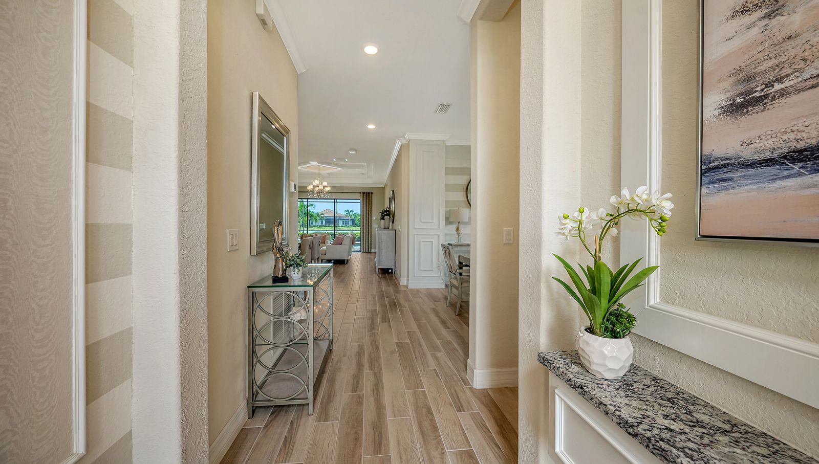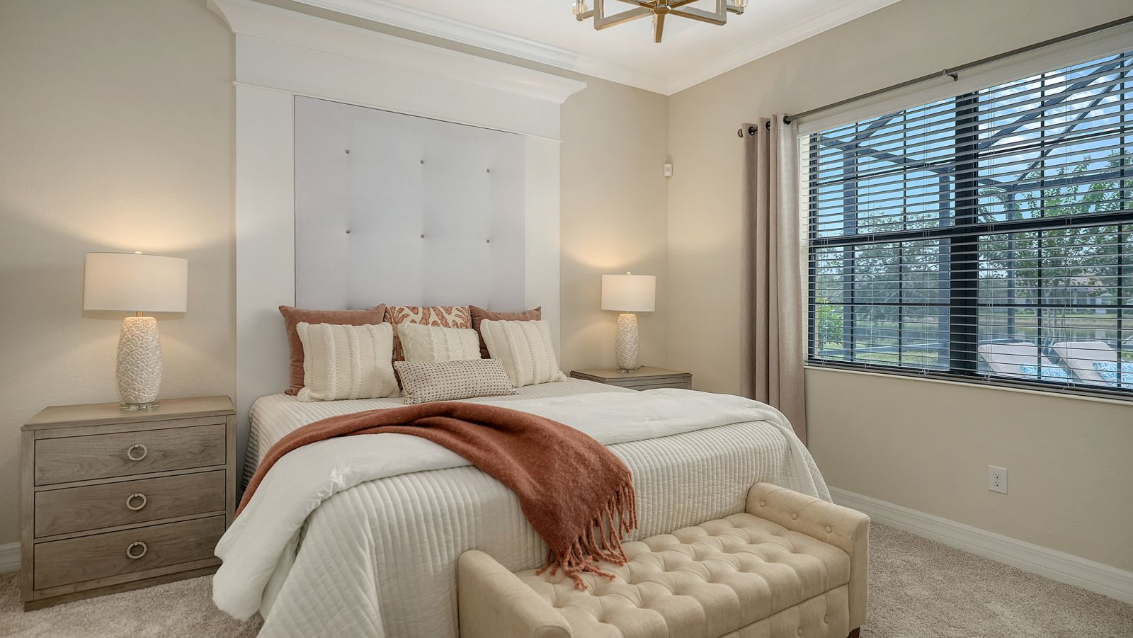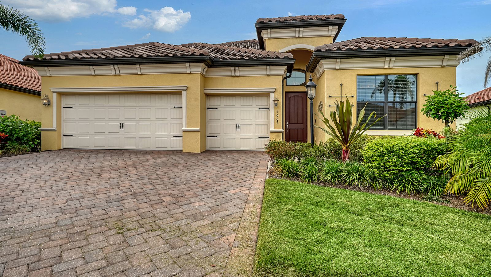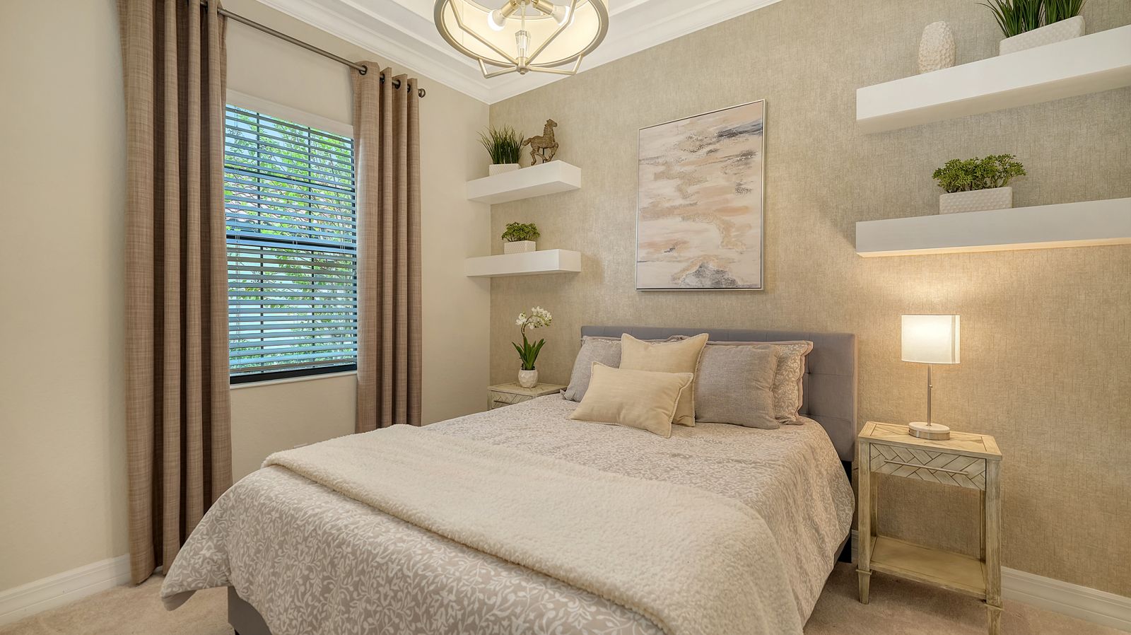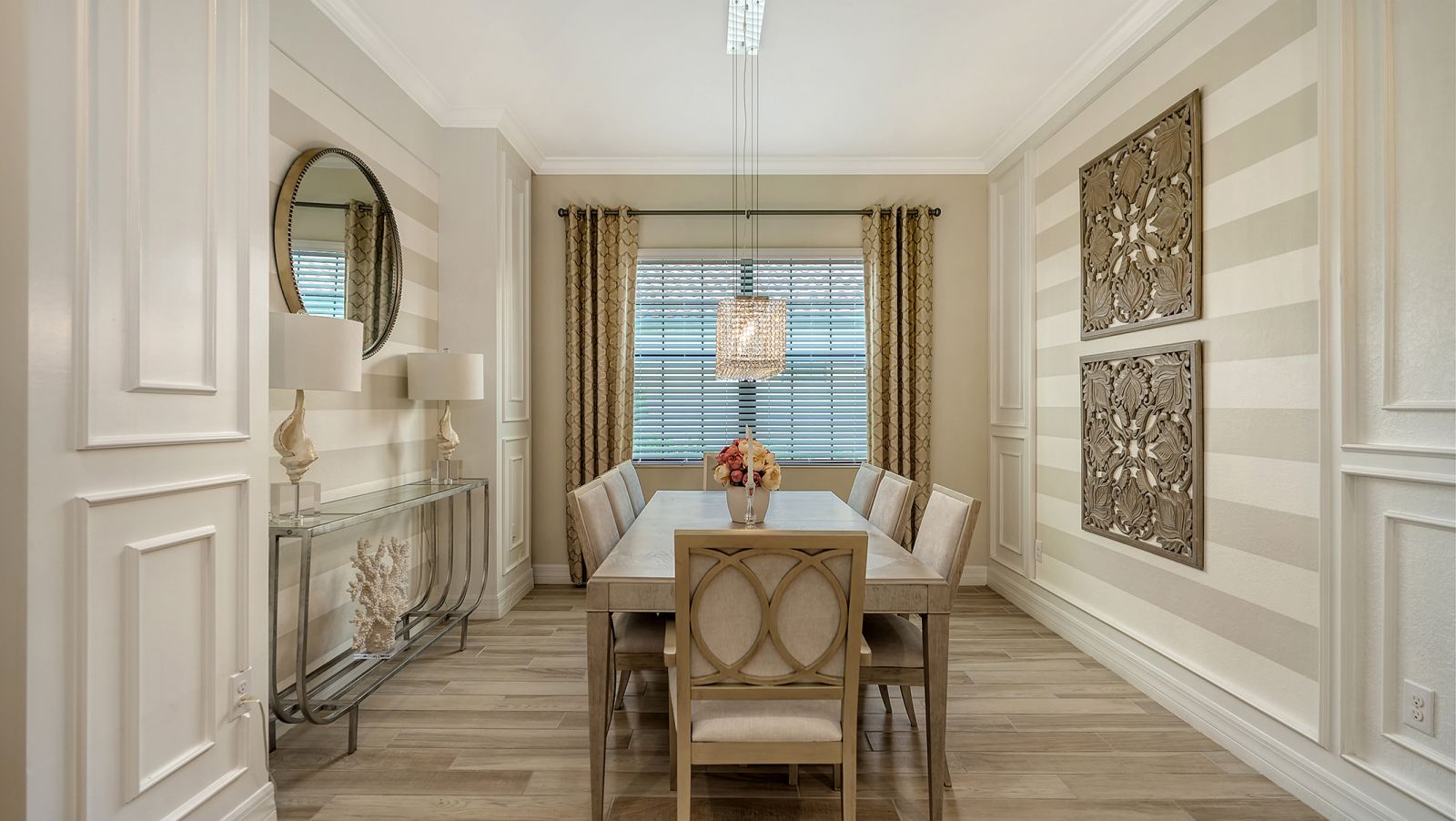 Under contract-accepting backup offers. Formerly a model home, this exquisite residence showcases hurricane impact glass windows and refined designer touches throughout, including custom molding and trim, detailed coffered ceilings, elegant lighting, and sophisticated wallpaper accents. Offered fully furnished, the home features four bedrooms, with a primary suite appointed with a soaking tub, frameless glass walk-in shower, double vanity and oversized walk-in closet. The kitchen, complete with a prep island, breakfast bar, sizable dinette space, pantry closet, gas cooktop, built-in oven and microwave, and stainless steel appliances, is complemented by an adjacent formal dining area. Designed for seamless indoor-outdoor living, sliders from the great room open to a screened lanai with an outdoor kitchen, heated pool and spa, tranquil lake views, and motorized hurricane roll-down shades for added comfort and protection. The residence also includes a spacious three-car garage, providing ample room for vehicles, storage, or a golf cart, along with a tankless water heater. Maintenance-free living enhances the appeal of this exceptional property, blending comfort and style in every detail. Residents of Country Club East enjoy gated security, The Retreat fitness and aquatic center, and convenient access to world-class shopping, dining, and recreation at Waterside Place, throughout Lakewood Ranch, and Sarasota. The community's ideal location offers a short drive to renowned Gulf Coast beaches, SRQ and Tampa airports, and top-tier medical facilities. Lakewood Ranch is recognized as the nation's number one best-selling multigenerational community, with optional membership available at Lakewood Ranch Golf and Country Club.