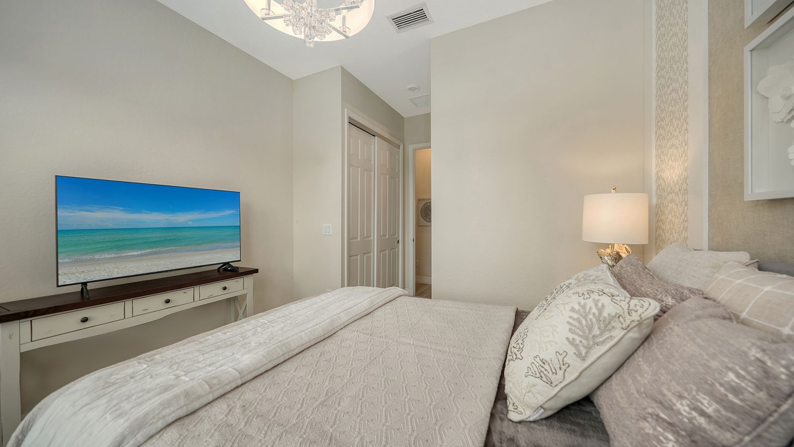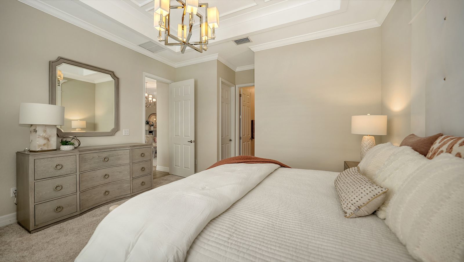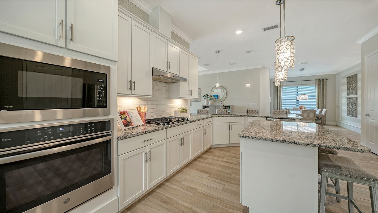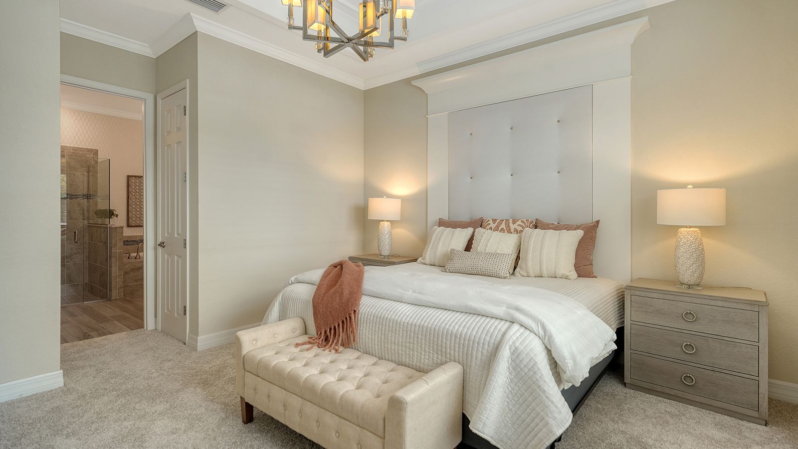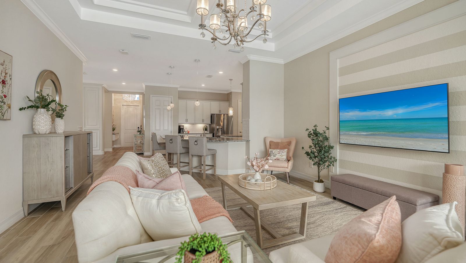 Under contract-accepting backup offers. Formerly a model home, this exquisite residence showcases hurricane impact glass windows and refined designer touches throughout, including custom molding and trim, detailed coffered ceilings, elegant lighting, and sophisticated wallpaper accents. Offered fully furnished, the home features four bedrooms, with a primary suite appointed with a soaking tub, frameless glass walk-in shower, double vanity and oversized walk-in closet. The kitchen, complete with a prep island, breakfast bar, sizable dinette space, pantry closet, gas cooktop, built-in oven and microwave, and stainless steel appliances, is complemented by an adjacent formal dining area. Designed for seamless indoor-outdoor living, sliders from the great room open to a screened lanai with an outdoor kitchen, heated pool and spa, tranquil lake views, and motorized hurricane roll-down shades for added comfort and protection. The residence also includes a spacious three-car garage, providing ample room for vehicles, storage, or a golf cart, along with a tankless water heater. Maintenance-free living enhances the appeal of this exceptional property, blending comfort and style in every detail. Residents of Country Club East enjoy gated security, The Retreat fitness and aquatic center, and convenient access to world-class shopping, dining, and recreation at Waterside Place, throughout Lakewood Ranch, and Sarasota. The community's ideal location offers a short drive to renowned Gulf Coast beaches, SRQ and Tampa airports, and top-tier medical facilities. Lakewood Ranch is recognized as the nation's number one best-selling multigenerational community, with optional membership available at Lakewood Ranch Golf and Country Club.