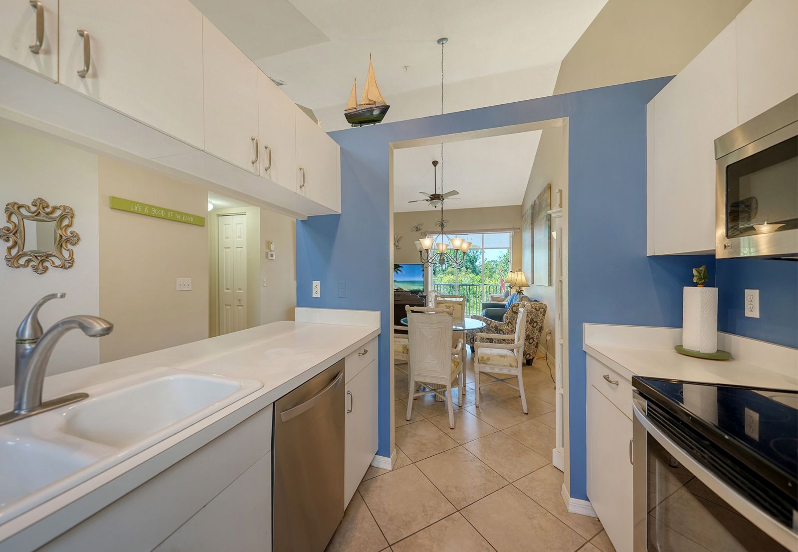 Welcome to Pinestone at Palmer Ranch....this second floor condominium has a large volume open air feel with it's cathedral ceilings in each room. By far the best deal in all of Palmer Ranch! Situated in a Gated Community with a greenbelt and westerly Lake view. High ceilings and ready for new owner. Owner says, "it's time to sell" and has priced this condominium to move. Perfect for the investor as a seasonal rental (condominiums in Pinestone are easy to rent and are limited for rentals in the first 2 years of ownership), as a vacation property or a primary residence. Pinestone at Palmer Ranch is just miles from Siesta Key and other beaches, restaurants, shopping, grocery stores and more. Pinestone amenities can not be matched in this price range. Large 'olympic' sized heated swimming pool with large deck area, tables, chairs, lounges, umbrellas, wet bar, BBQ grills and covered picnic area. Don't miss the 2 lighted tennis courts, 1/2 basketball court, hot tub/spa, gym/fitness room, billiard room, card room, 32 seat movie theater, library, onsite manager's office, pickle ball, bocci ball, firepit, cornhole, conversation area, locked bike storage and more. This is the BEST DEAL IN THIS RESORT STYLE DEVELOPMENT so don't delay!