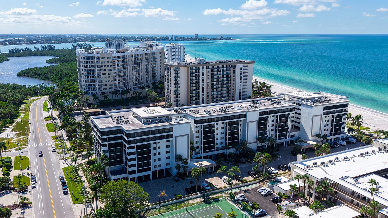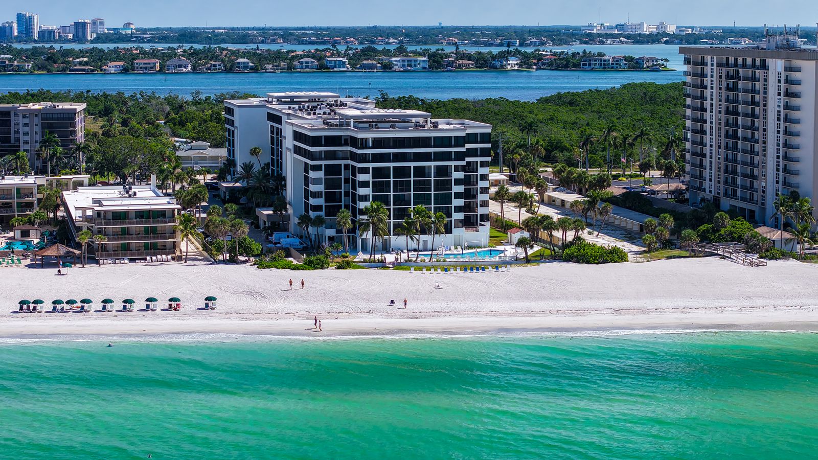 Luxurious Gulf-Front Corner Condo with Sweeping Views - Lido Surf & Sand. Experience the pinnacle of beachfront living in this rarely available southwest corner residence at Lido Surf & Sand, offering unparalleled panoramic views of the Gulf of Mexico, Lido Beach, and all the way to Siesta Key. Perched on the 6th floor of the coveted gulf-front atrium building, this 2-bedroom, 2-bathroom end-unit boasts 1,456 sq. ft. of elegant interior living space plus an additional 372 sq. ft. of expansive wraparound balconies--perfect for soaking in both sunrise and sunset. One of only four corner units per floor, this light-filled condo features floor-to-ceiling beach views from every main living space, creating a true indoor-outdoor lifestyle. The open-concept layout flows seamlessly from the dining area and spacious great room to the full-width beachfront balcony--ideal for both intimate evenings or entertaining a crowd. The custom gourmet galley kitchen is thoughtfully designed with beautiful countertops, custom lighted cabinetry, and generous storage, making it both beautiful and functional, new appliances, perfect for entertaining. Enjoy peace of mind with a new water heater (2023), brand new A/C unit, and upgraded hurricane-impact windows, sliders, and front door. Wake up to coffee on your private lanai with endless beach views or wind down with the gentle sounds of the surf in the evening. A newly planned social room will elevate your outdoor living experience even further. Just two blocks from a private nature preserve--perfect for peaceful walks or kayaking--and moments from St. Armands Circle, where you can explore boutique shopping and exceptional dining. Whether you're seeking a serene retreat or a vibrant coastal lifestyle, this one-of-a-kind residence offers the best of both. Your Lido Key beachfront lifestyle awaits. Schedule your private tour today.