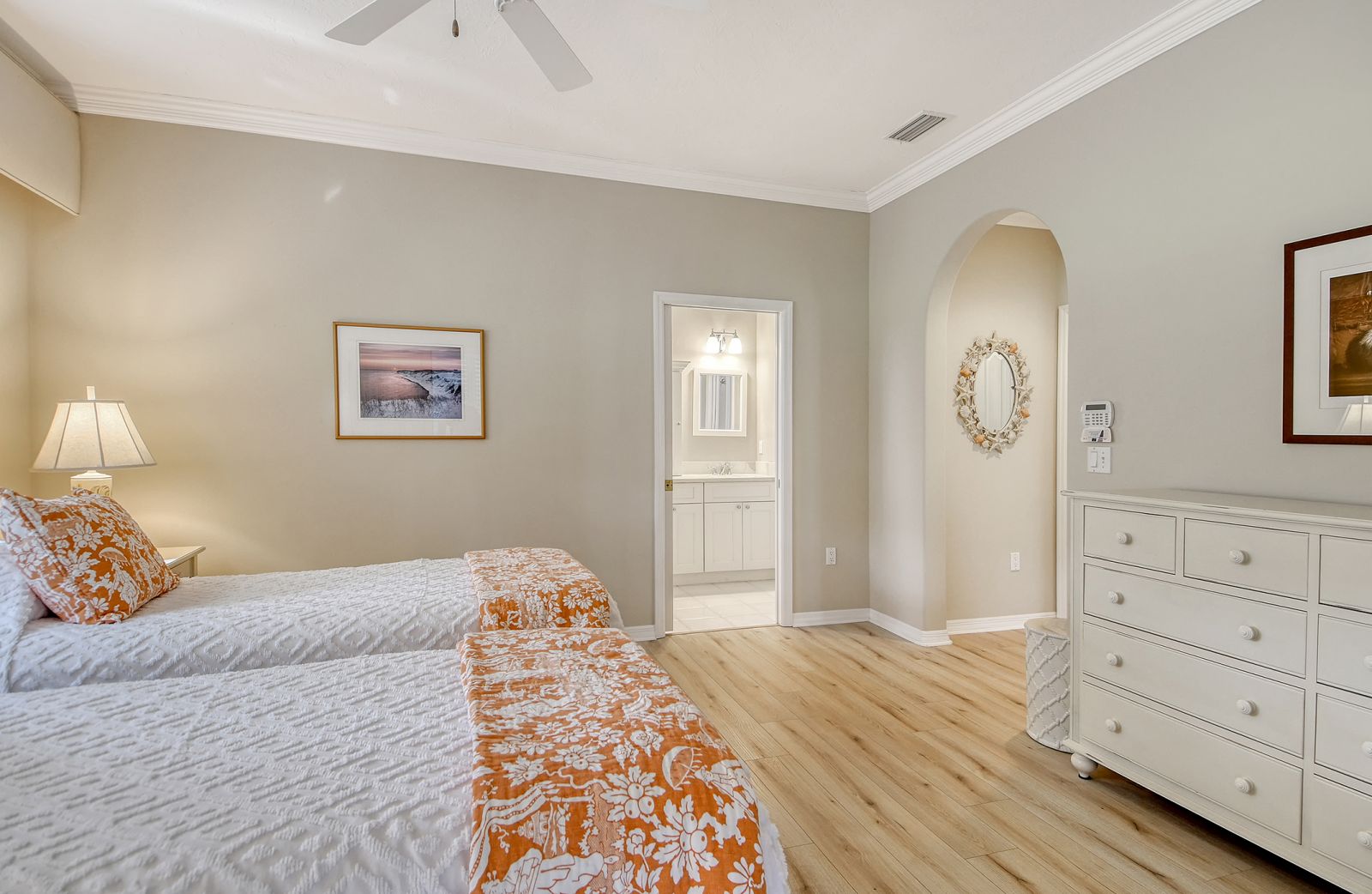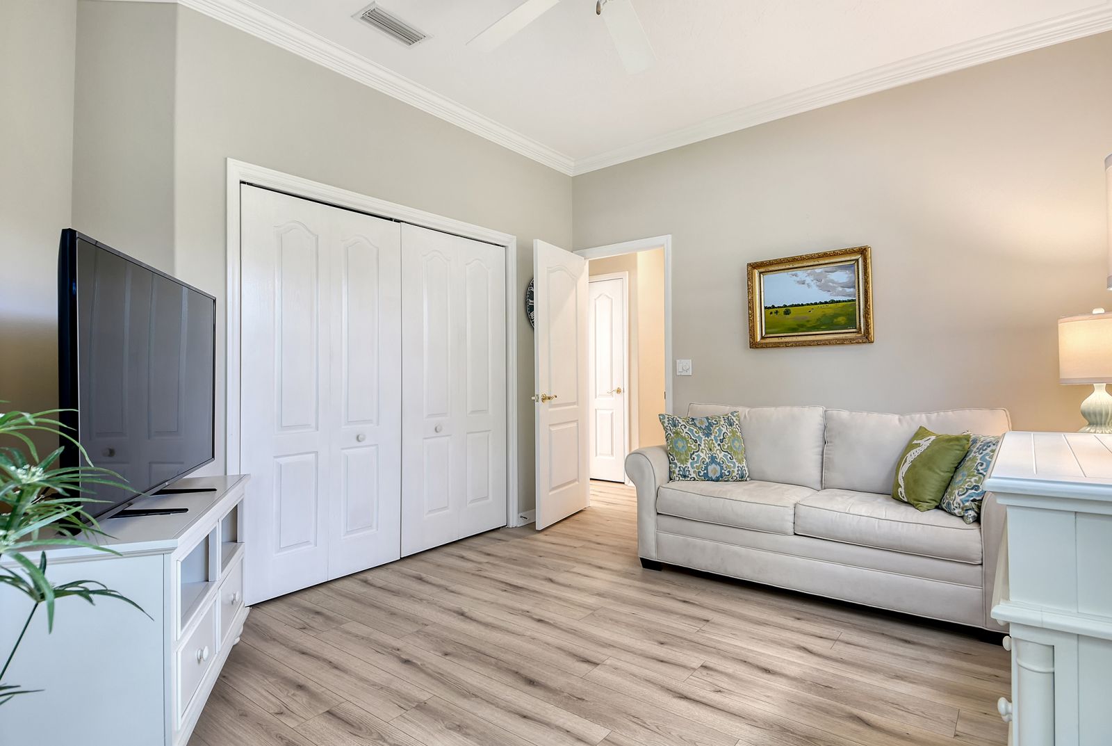 Come experience one of Sarasota's most beautifully landscaped and private settings in the boutique, gated community of Mira Lago on Palmer Ranch. With four serene lakes teeming with wildlife and tropical birds, the community offers a true nature lover's paradise. This free-standing, maintenance-free Mediterranean home captures the light, bright and airy feeling of coastal living. A freshly updated neutral palette is complemented by high-end luxury vinyl flooring in immaculate condition. The kitchen and both baths have been stylishly renovated with new cabinetry, vanities, countertops and a modern shower surround. The oversized walk-in primary closet features a custom contemporary organization system. Step outside to a private paver patio with a thoughtfully contoured design, offering an intimate, walled garden setting perfect for relaxation or entertaining. Plantation shutters throughout the home add a timeless touch. If you're still looking for a winter residence, this move-in-ready home is an ideal retreat. Major updates ensure years of worry-free living, including a new barrel tile roof (Oct. 2023), a new Trane AC/heating system with variable-speed air handler (July 2024), a new washer & dryer (2024), a new French door refrigerator (2025), a water heater (2020), all window and door screens have been replaced, patio slider rollers have been updated, and the electrical panel was upgraded to 150 AMP. Mira Lago residents enjoy a heated community pool and spa with a paver deck, along with impressively low quarterly maintenance fees of $1,225. Fees cover irrigation, exterior painting every eight years, interior and exterior pest control, Verizon basic cable, annual sidewalk and driveway power washing, roof cleaning every three years, landscaping, and tree trimming. This is also a pet-friendly community. Ideally located, Mira Lago offers quick access to the Legacy Trail, world-class beaches, shopping, dining, arts, and entertainment--all just minutes away. Don't miss this rare opportunity--schedule your private showing today before it's gone!
