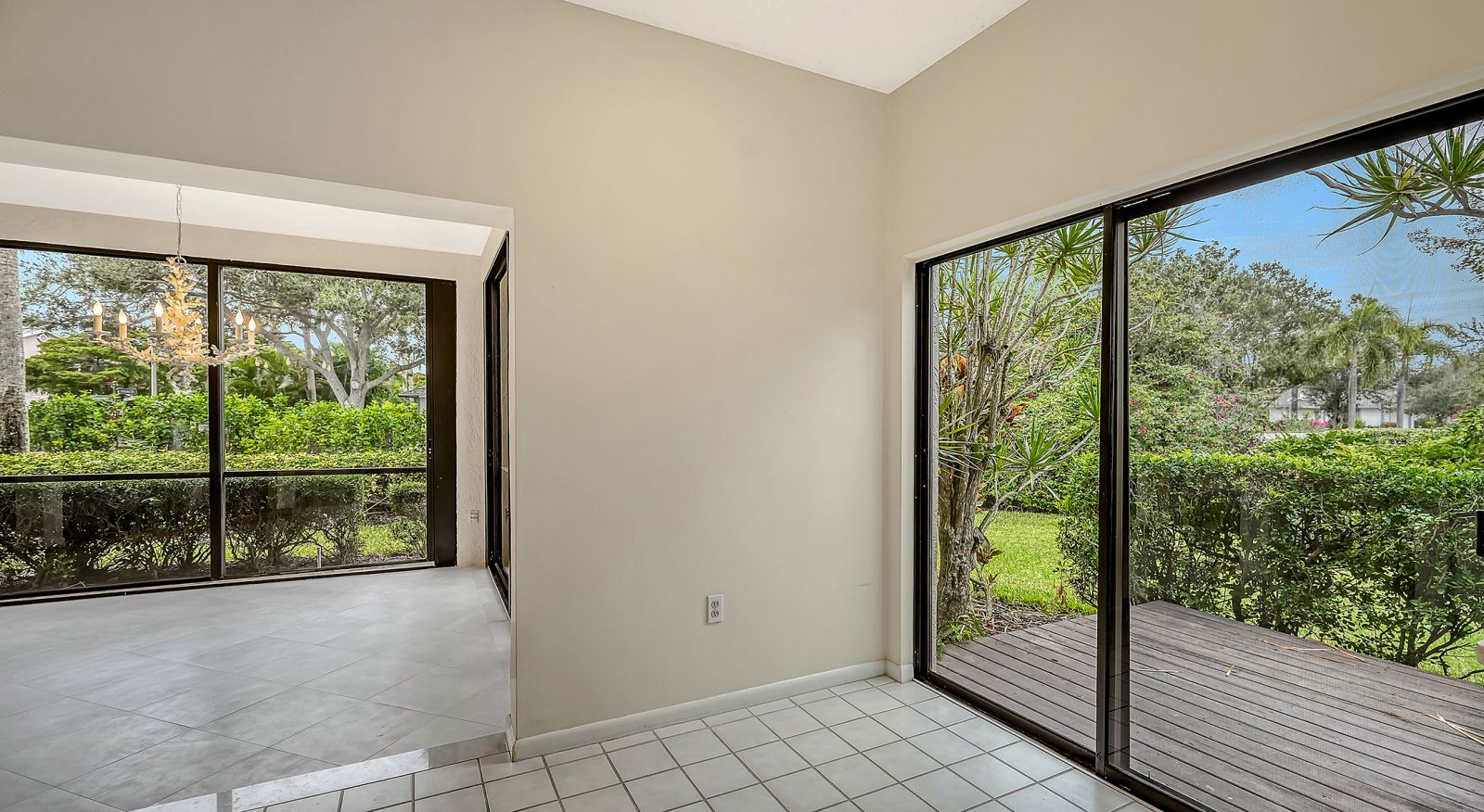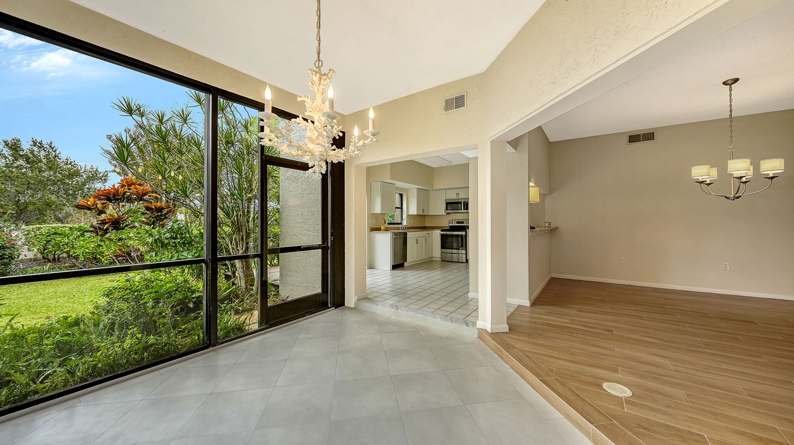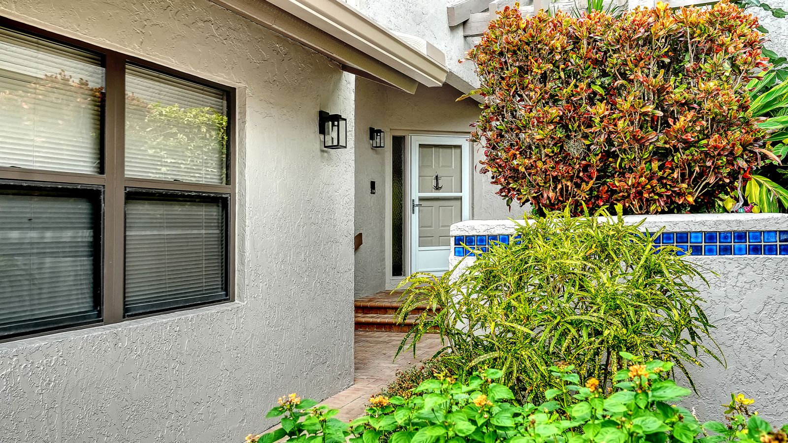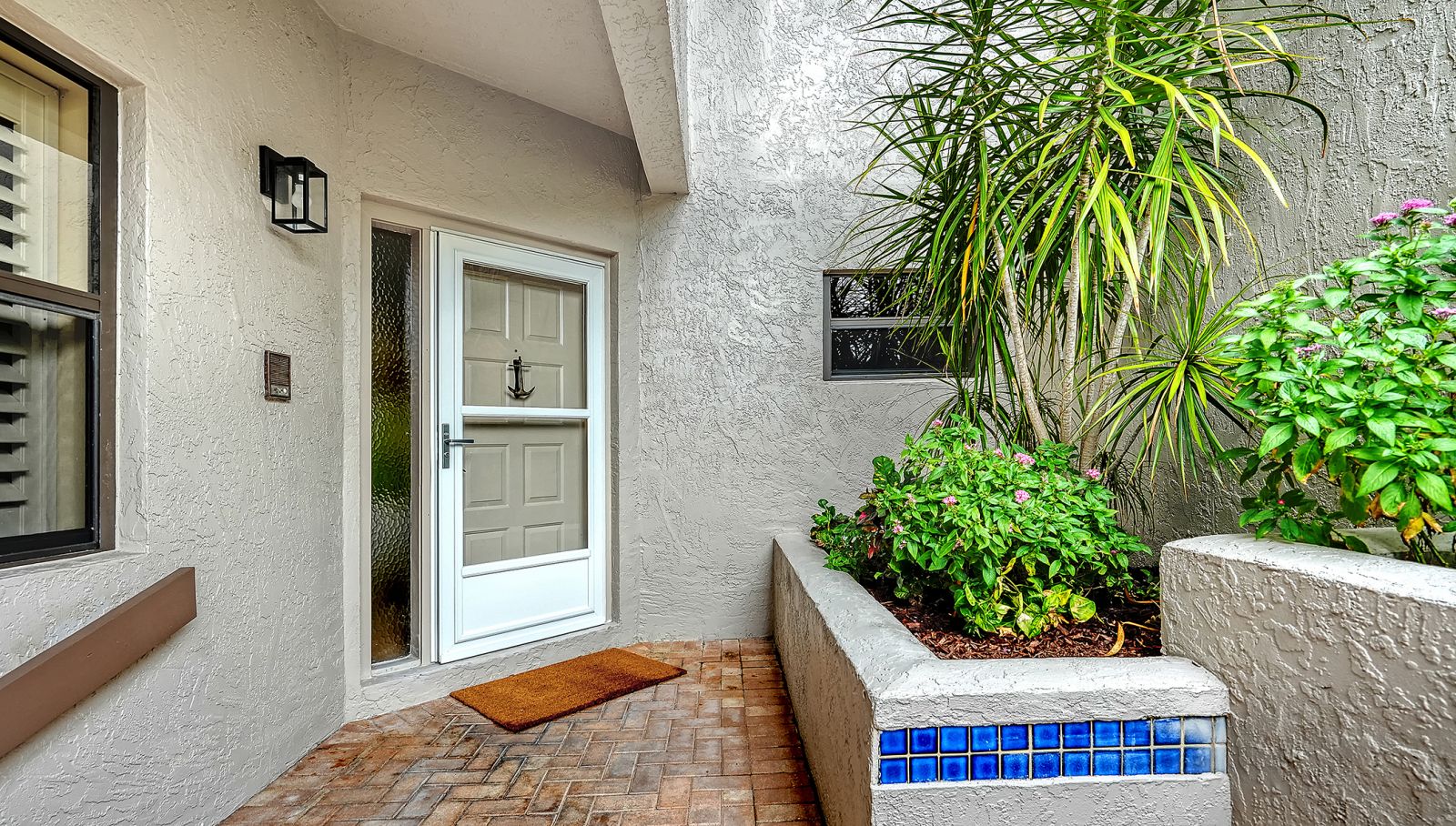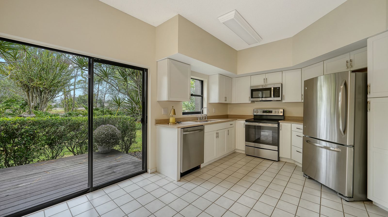 Opportunity awaits in this desirable end-unit Coach House in The Landings. Light-filled and inviting, this ground-floor end unit offers serene views of Phillippi Park Pond and the feel of a private backyard. Enjoy low-maintenance tile flooring throughout and an open floorplan that seamlessly connects the updated kitchen with the living and dining areas. An adjacent glass-enclosed Florida room provides flexible extra living space and sweeping views of the outdoors. The spacious master suite features room for a desk or sitting area, two closets, along with a generously sized bathroom, and a large walk-in shower. A separate guest bedroom, full guest bath, and laundry room complete this well-designed home. Relax on the sunny back patio and enjoy peaceful views of nature. Perfect as a seasonal retreat or year-round residence. Ownership includes membership to The Landings Racquet Club with 8 Har-Tru tennis courts, pool, hot tub, fitness center, library, and social activities. This gated west of the trail community is a hidden gem, centrally located, yet private. Featuring mature landscaping, lakes, and a nature trail to a dock on the Intracoastal. Just minutes to Siesta Key, restaurants, shopping, and downtown Sarasota.
