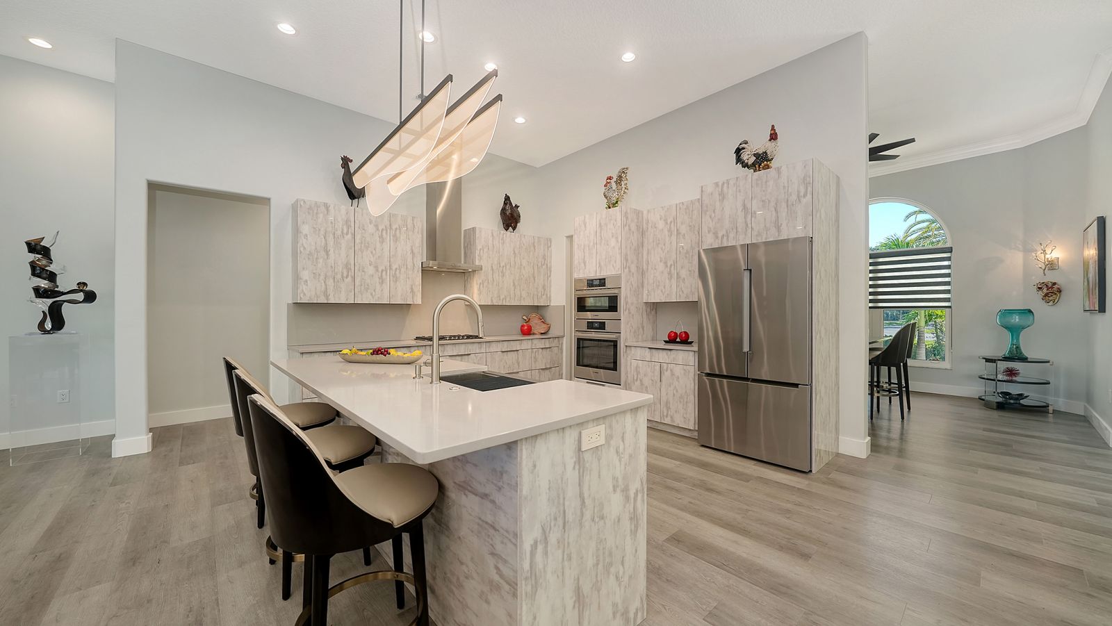 Refined Lakefront Luxury in Laurel Oak Estates!Experience timeless elegance and exceptional craftsmanship in this custom-built John Karel residence located within the prestigious Laurel Oak Country Club. Privately positioned on more than half an acre with 108 feet of lake frontage, this 3,900-square-foot home captures serene water views from nearly every room and offers the perfect blend of sophistication and modern livability. Meticulously updated and enhanced throughout; every element has been elevated to today's highest standards.A circular drive and manicured landscaping introduce the home's welcoming architecture, while a double-door entry opens to expansive living spaces with luxury vinyl flooring, high ceilings, crown molding, and abundant natural light. The open floor plan creates seamless flow between the great room, dining area, and the well-appointed kitchen--ideal for entertaining or casual gatherings.The chef's kitchen is equipped with custom European cabinetry, a large center island, stone counters, breakfast bar, Bosch Benchmark Series stainless appliances including built-in oven and gas range, farmhouse sink, and newly designed walk-in pantry. The adjacent family room features pocketing sliding glass doors that open to the covered lanai, blurring the line between indoor and outdoor living.The primary suite serves as a private retreat with tranquil lake views, a generous walk-in closet with custom shelving system, and spa-inspired bath featuring Brizo Black Onyx Chrome finishes, walk-in shower with bench seating, and private water closet. Three additional bedrooms, including an en-suite guest room and a Jack-and-Jill configuration, provide comfort for family and guests alike. A dedicated office enhances functionality for remote work or quiet study.Step outside to the panoramic newly screened lanai where a freshly resurfaced heated pool, spa, and outdoor kitchen invite year-round relaxation. The covered patio is ideal for al fresco dining, while the full lake view delivers a peaceful backdrop. The extensive list of recent improvements include a new metal roof, impact windows and doors, electric hurricane screens on entire lanai, resurfaced pool and spa, whole-house generator, 500-gallon buried propane tank, two new A/C units with ultra violet technology, tankless water heater, and water filtration system. All new window coverings, light fixtures and solid wood interior doors. All bathrooms have been updated and include Amorho touch mirrors. New driveway and walkway pavers and new irrigation system plus entire yard newly landscaped. Take comfort knowing this is a like-new home and ready for your immediate enjoyment.Residents of Laurel Oak Estates enjoy a secure, guard-gated setting with private roads, tree-lined streets, and the option to join Laurel Oak Country Club, featuring two championship golf courses, tennis and pickleball, a resort-style pool, and fine dining. The community's convenient location near I-75, UTC Mall, and Nathan Benderson Park offers quick access to Sarasota's renowned beaches, top-rated schools, and vibrant downtown arts scene.This exceptional lakefront residence combines classic architectural style with a modern open layout, offering an unparalleled lifestyle in one of Sarasota's most desirable golf and country club communities.