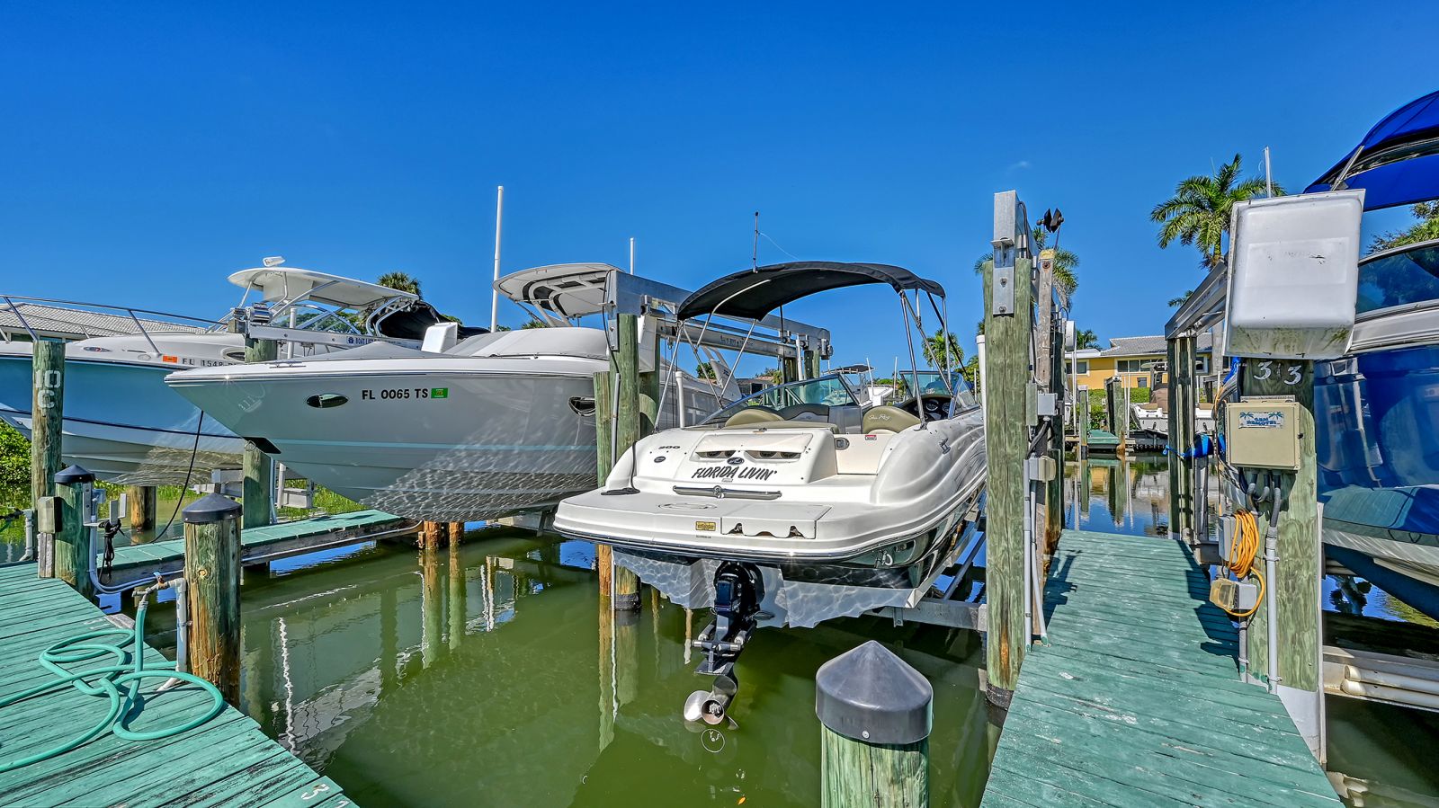 This property offers an ASSUMABLE VA loan for qualified buyers! Tucked away on a quiet cul-de-sac in one of Nokomis' most desirable BOATING COMMUNITIES , this coastal retreat combines modern updates, comfort, and true Florida living. Set on a generous 1/3 acre interior lot, this three-bedroom, two-bath pool home includes a DEEDED BOAT SLIP/DOCK with a 10,000-lb LIFT and direct Intracoastal access--ideal for boating, kayaking, or fishing and just minutes to the Gulf . Inside, the open layout features a spacious great room and vaulted dining area overlooking the screened lanai and sparkling pool, perfect for relaxing or entertaining. The kitchen offers stainless steel appliances, granite countertops, wood cabinetry, and a breakfast nook with pool views. The spacious primary suite has private access to the lanai, a reading nook, ensuite bathroom with dual sinks, a walk-in shower, and ample closet space, while the guest bath includes a large linen closet, bathtub/shower combo.This home has been thoughtfully maintained and updated throughout, including a NEW ROOF 2024 , IMPACT RESISTANT WINDOWS , RE-PLUMBED and REWIRED systems, a Rainbird six-zone well-fed IRRIGATION system, WATER FILTRATION, RESURFACED POOL 2014 , and a NEW POOL HEATER in 2022. Additional highlights include an oversized paver driveway, two-car garage, a storage shed or golf cart garage, and a recently serviced septic system (2025). The private backyard is lush and serene, with tropical landscaping, a MATURE MANGO TREE , and a charming water feature out front. A dog-friendly design with a doggie door offers easy access to the fenced yard.Located in the high and dry X flood zone, this property delivers peace of mind and effortless coastal living. It's just a golf cart ride to Nokomis Beach and close to Historic Downtown Venice, Casey Key, Siesta Key, the Legacy Trail, Pine View School for the Gifted, and Sarasota's vibrant dining and cultural scene. This hidden gem offers the perfect blend of location, lifestyle, and lasting value--Florida coastal living at its best.