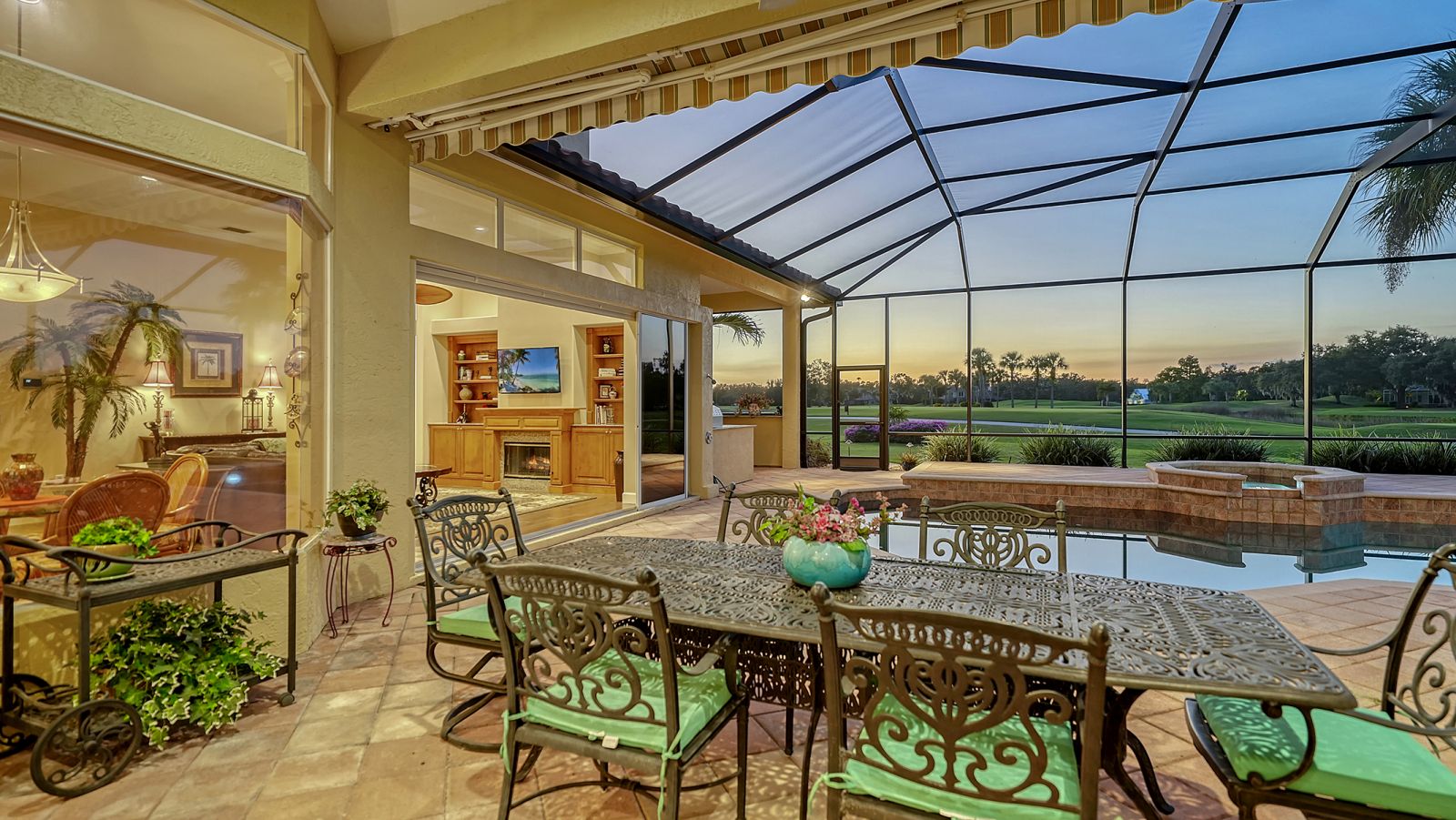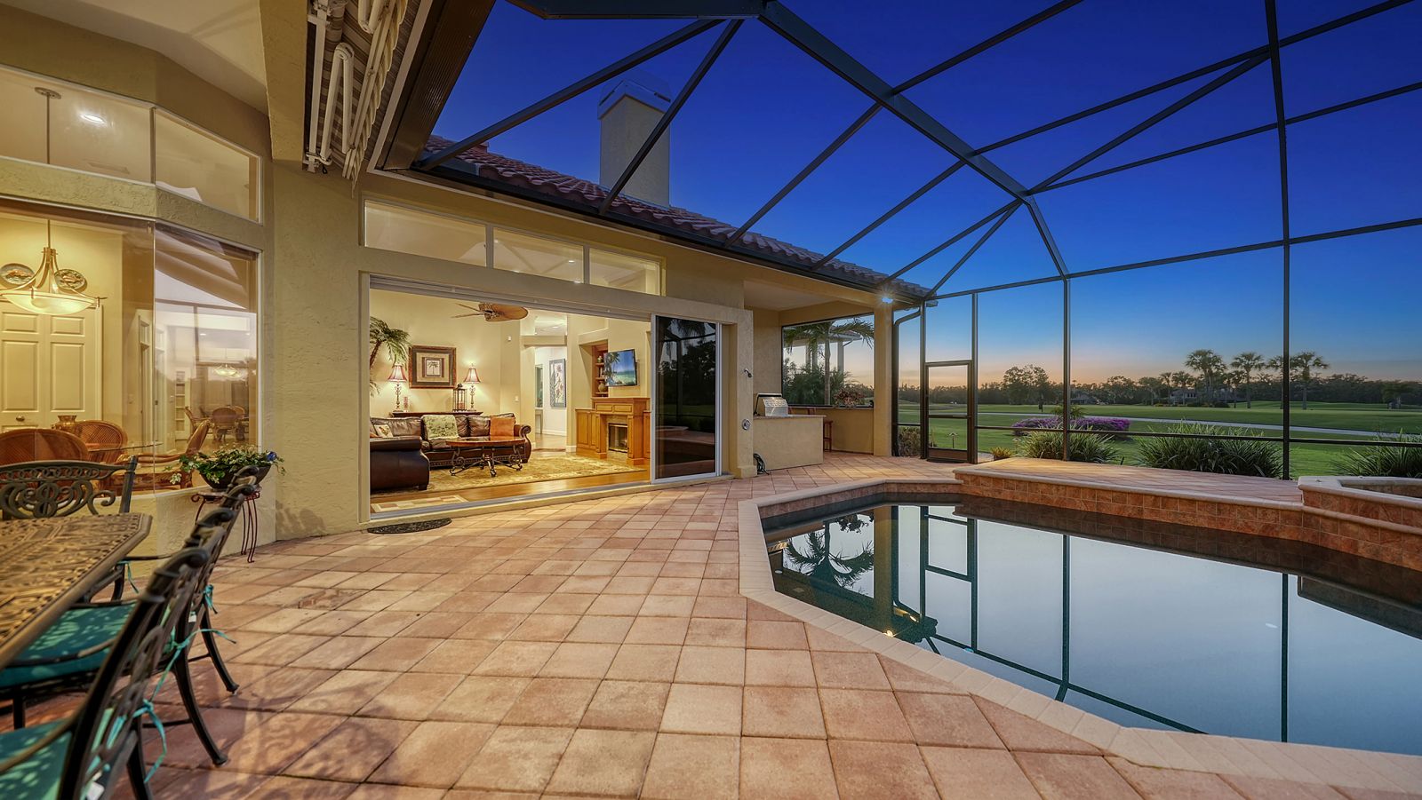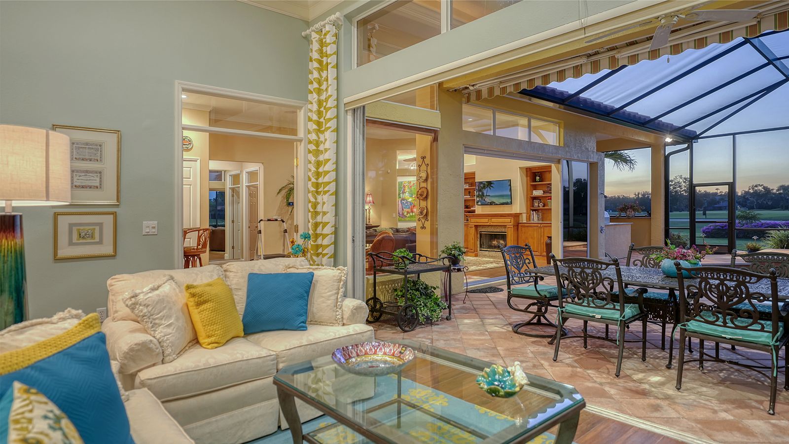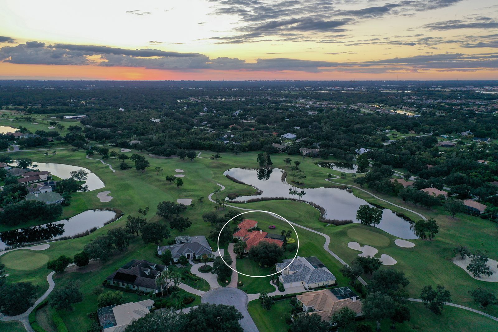 Set on a serene cul-de-sac within the prestigious Laurel Oak Estates, this custom-built residence captures the essence of Sarasota's coveted golf-course lifestyle. Poised on nearly an acre with sweeping fairway and lake views, the home offers more than 5,100 square feet of beautifully designed living space enhanced by timeless architectural detail, modern functionality, and effortless indoor-outdoor flow.A private winding drive and manicured landscaping introduce the stately faade, where double entry doors open to a grand foyer with high ceilings and walls of large windows that fill the interiors with natural light. The spacious living and dining areas feature custom built-ins and millwork, with expansive sliders framing sunset views of the sparkling pool and golf course beyond. Perfect for entertaining, the gourmet kitchen combines rich wood cabinetry with granite countertops, a large center island, double ovens, built-in refrigerator, wet bar area, and casual dining nook overlooking the fairway. The adjoining family room offers a warm gathering space anchored by solid wood built-ins and a gas fireplace, with seamless access to the screened lanai for alfresco living.The primary suite is a private retreat with peaceful golf and water views, two custom walk-in closets, and a spa-inspired bath complete with soaking tub, separate shower, dual vanities, and private water closet. Three additional bedrooms, plus a fourth bedroom currently being used as den, provide ideal comfort for family and guests. The theater room is equipped with platform seating, custom cabinetry, 120" screen, surround sound, remote-controlled lighting, and 4K projector. A true highlight of the home is the second-floor bonus suite, currently used as an art studio, featuring vaulted tongue-and-groove ceiling, built-in desks, a full bathroom, and an expansive balcony capturing unforgettable sunset vistas across the course.The screened outdoor living area defines the Florida lifestyle, showcasing a heated pool and spa, outdoor kitchen, and multiple seating areas for relaxing or entertaining. Mature landscaping, accent lighting, and the home's ideal southwest exposure create a tranquil backdrop year-round. Additional features include plantation shutters, central vacuum, a three-car side-entry garage with golf-cart parking, and a whole-house solar system offering efficiency and peace of mind.Nestled behind the gates of Laurel Oak Country Club, residents enjoy access to 36 championship holes of golf, tennis and pickleball courts, a junior Olympic pool, fitness facilities, and a vibrant social calendar--all available with optional membership. Beyond the gates, you're moments from Sarasota's best amenities, including UTC Mall's upscale shopping and dining, Nathan Benderson Park, and downtown Sarasota's world-class arts, culture, and waterfront entertainment. Siesta Key and Lido Key beaches are within easy reach, completing the perfect blend of privacy, luxury, and convenience.With its exquisite craftsmanship, prime location, and inspiring golf-course vistas, this Laurel Oak Estates residence delivers the ideal balance of sophistication and relaxed Sarasota living--an exceptional opportunity for those seeking elegance within one of the region's most prestigious gated communities.