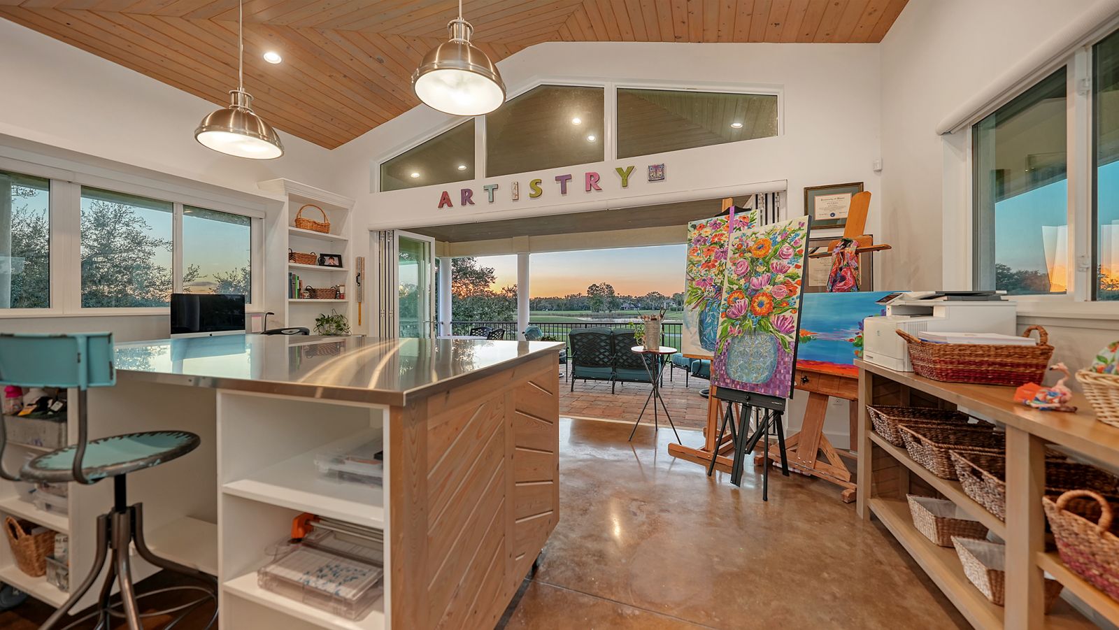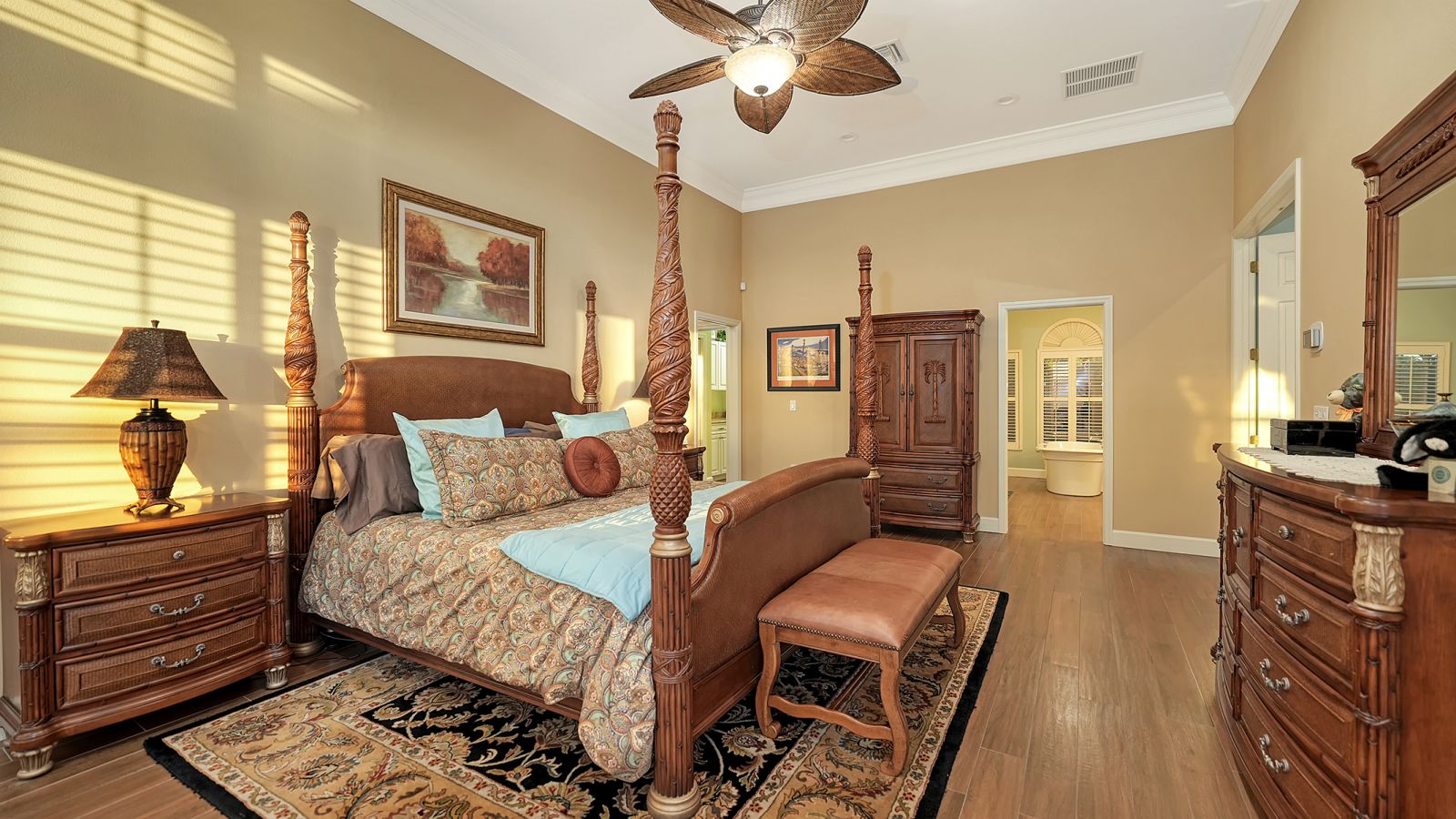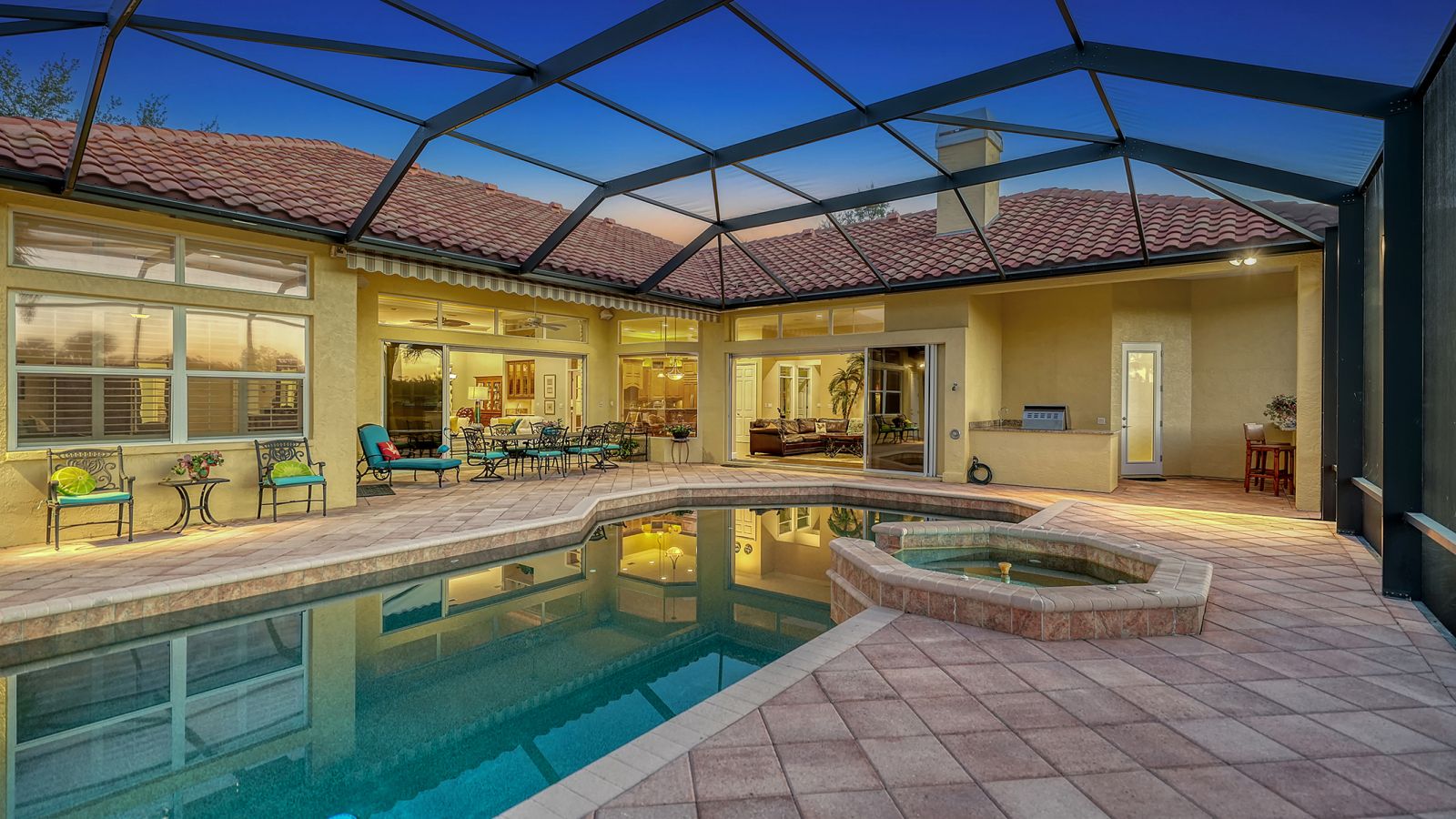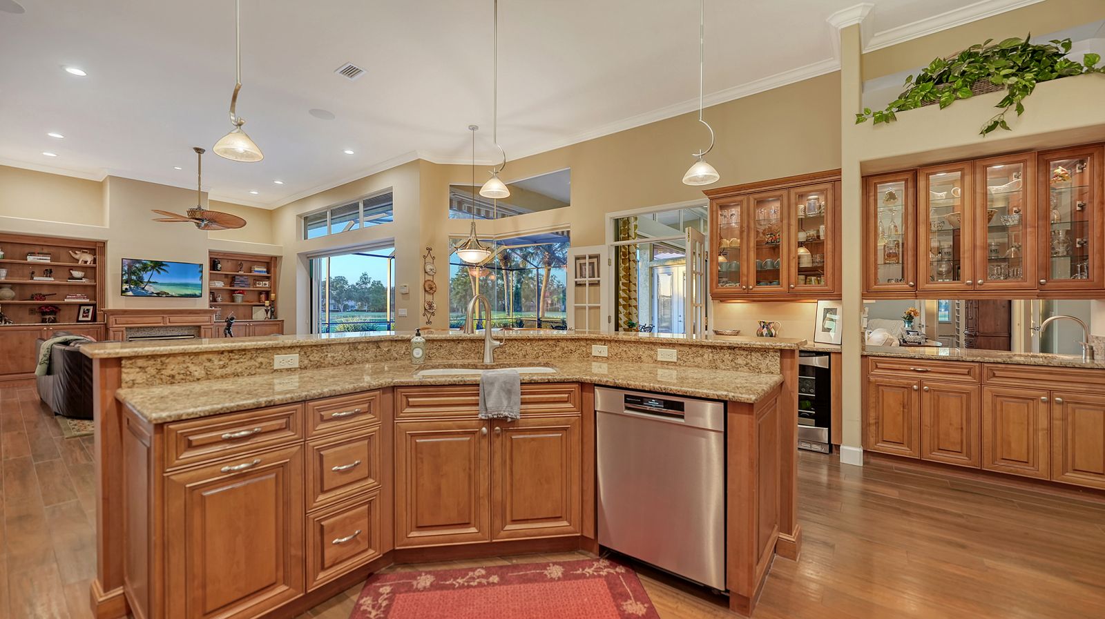 Set on a serene cul-de-sac within the prestigious Laurel Oak Estates, this custom-built residence captures the essence of Sarasota's coveted golf-course lifestyle. Poised on nearly an acre with sweeping fairway and lake views, the home offers more than 5,100 square feet of beautifully designed living space enhanced by timeless architectural detail, modern functionality, and effortless indoor-outdoor flow.A private winding drive and manicured landscaping introduce the stately faade, where double entry doors open to a grand foyer with high ceilings and walls of large windows that fill the interiors with natural light. The spacious living and dining areas feature custom built-ins and millwork, with expansive sliders framing sunset views of the sparkling pool and golf course beyond. Perfect for entertaining, the gourmet kitchen combines rich wood cabinetry with granite countertops, a large center island, double ovens, built-in refrigerator, wet bar area, and casual dining nook overlooking the fairway. The adjoining family room offers a warm gathering space anchored by solid wood built-ins and a gas fireplace, with seamless access to the screened lanai for alfresco living.The primary suite is a private retreat with peaceful golf and water views, two custom walk-in closets, and a spa-inspired bath complete with soaking tub, separate shower, dual vanities, and private water closet. Three additional bedrooms, plus a fourth bedroom currently being used as den, provide ideal comfort for family and guests. The theater room is equipped with platform seating, custom cabinetry, 120" screen, surround sound, remote-controlled lighting, and 4K projector. A true highlight of the home is the second-floor bonus suite, currently used as an art studio, featuring vaulted tongue-and-groove ceiling, built-in desks, a full bathroom, and an expansive balcony capturing unforgettable sunset vistas across the course.The screened outdoor living area defines the Florida lifestyle, showcasing a heated pool and spa, outdoor kitchen, and multiple seating areas for relaxing or entertaining. Mature landscaping, accent lighting, and the home's ideal southwest exposure create a tranquil backdrop year-round. Additional features include plantation shutters, central vacuum, a three-car side-entry garage with golf-cart parking, and a whole-house solar system offering efficiency and peace of mind.Nestled behind the gates of Laurel Oak Country Club, residents enjoy access to 36 championship holes of golf, tennis and pickleball courts, a junior Olympic pool, fitness facilities, and a vibrant social calendar--all available with optional membership. Beyond the gates, you're moments from Sarasota's best amenities, including UTC Mall's upscale shopping and dining, Nathan Benderson Park, and downtown Sarasota's world-class arts, culture, and waterfront entertainment. Siesta Key and Lido Key beaches are within easy reach, completing the perfect blend of privacy, luxury, and convenience.With its exquisite craftsmanship, prime location, and inspiring golf-course vistas, this Laurel Oak Estates residence delivers the ideal balance of sophistication and relaxed Sarasota living--an exceptional opportunity for those seeking elegance within one of the region's most prestigious gated communities.