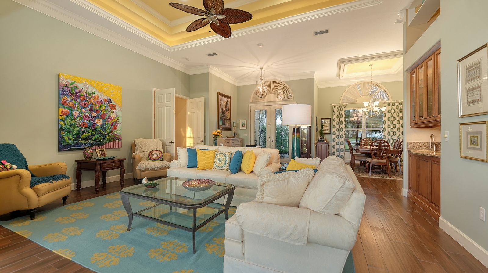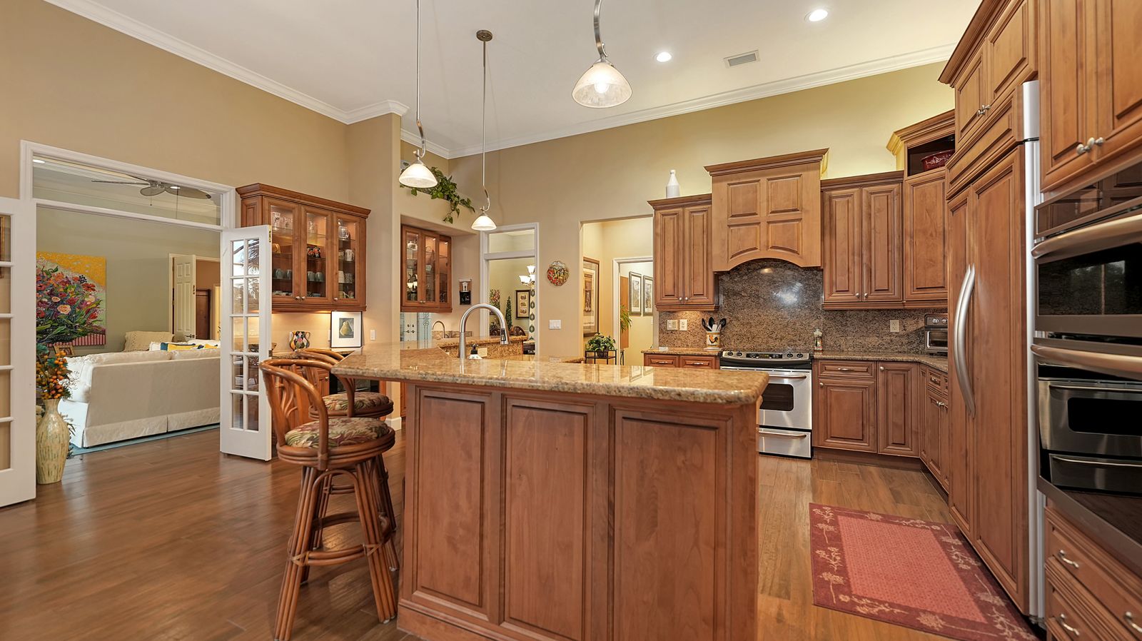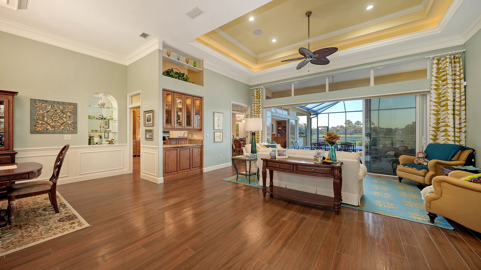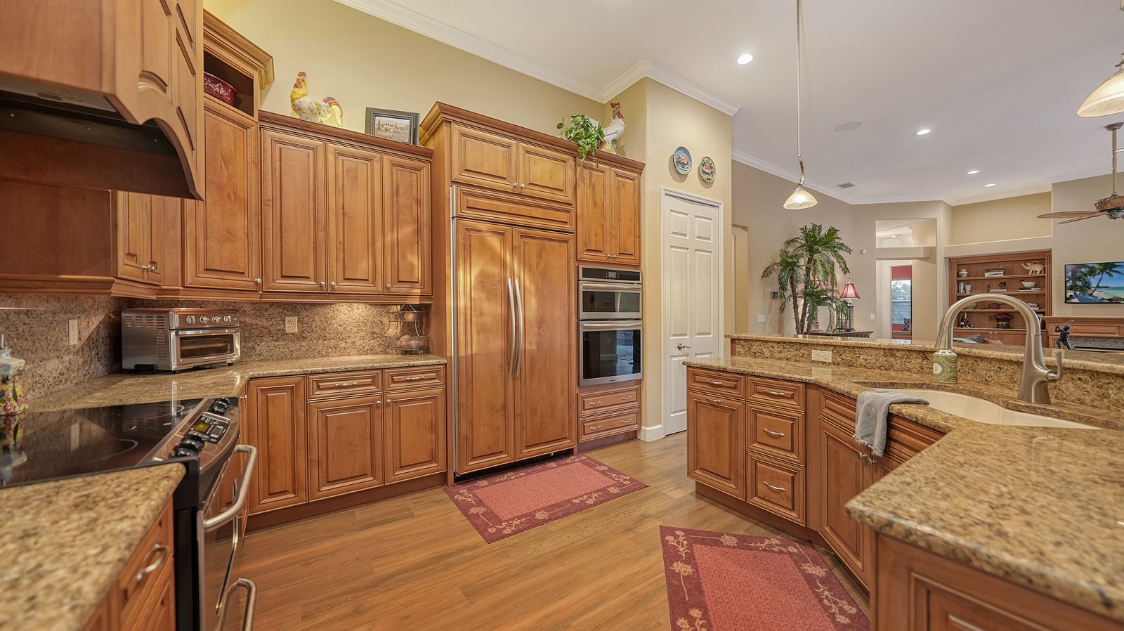 Set on a serene cul-de-sac within the prestigious Laurel Oak Estates, this custom-built residence captures the essence of Sarasota's coveted golf-course lifestyle. Poised on nearly an acre with sweeping fairway and lake views, the home offers more than 5,100 square feet of beautifully designed living space enhanced by timeless architectural detail, modern functionality, and effortless indoor-outdoor flow.A private winding drive and manicured landscaping introduce the stately faade, where double entry doors open to a grand foyer with high ceilings and walls of large windows that fill the interiors with natural light. The spacious living and dining areas feature custom built-ins and millwork, with expansive sliders framing sunset views of the sparkling pool and golf course beyond. Perfect for entertaining, the gourmet kitchen combines rich wood cabinetry with granite countertops, a large center island, double ovens, built-in refrigerator, wet bar area, and casual dining nook overlooking the fairway. The adjoining family room offers a warm gathering space anchored by solid wood built-ins and a gas fireplace, with seamless access to the screened lanai for alfresco living.The primary suite is a private retreat with peaceful golf and water views, two custom walk-in closets, and a spa-inspired bath complete with soaking tub, separate shower, dual vanities, and private water closet. Three additional bedrooms, plus a fourth bedroom currently being used as den, provide ideal comfort for family and guests. The theater room is equipped with platform seating, custom cabinetry, 120" screen, surround sound, remote-controlled lighting, and 4K projector. A true highlight of the home is the second-floor bonus suite, currently used as an art studio, featuring vaulted tongue-and-groove ceiling, built-in desks, a full bathroom, and an expansive balcony capturing unforgettable sunset vistas across the course.The screened outdoor living area defines the Florida lifestyle, showcasing a heated pool and spa, outdoor kitchen, and multiple seating areas for relaxing or entertaining. Mature landscaping, accent lighting, and the home's ideal southwest exposure create a tranquil backdrop year-round. Additional features include plantation shutters, central vacuum, a three-car side-entry garage with golf-cart parking, and a whole-house solar system offering efficiency and peace of mind.Nestled behind the gates of Laurel Oak Country Club, residents enjoy access to 36 championship holes of golf, tennis and pickleball courts, a junior Olympic pool, fitness facilities, and a vibrant social calendar--all available with optional membership. Beyond the gates, you're moments from Sarasota's best amenities, including UTC Mall's upscale shopping and dining, Nathan Benderson Park, and downtown Sarasota's world-class arts, culture, and waterfront entertainment. Siesta Key and Lido Key beaches are within easy reach, completing the perfect blend of privacy, luxury, and convenience.With its exquisite craftsmanship, prime location, and inspiring golf-course vistas, this Laurel Oak Estates residence delivers the ideal balance of sophistication and relaxed Sarasota living--an exceptional opportunity for those seeking elegance within one of the region's most prestigious gated communities.