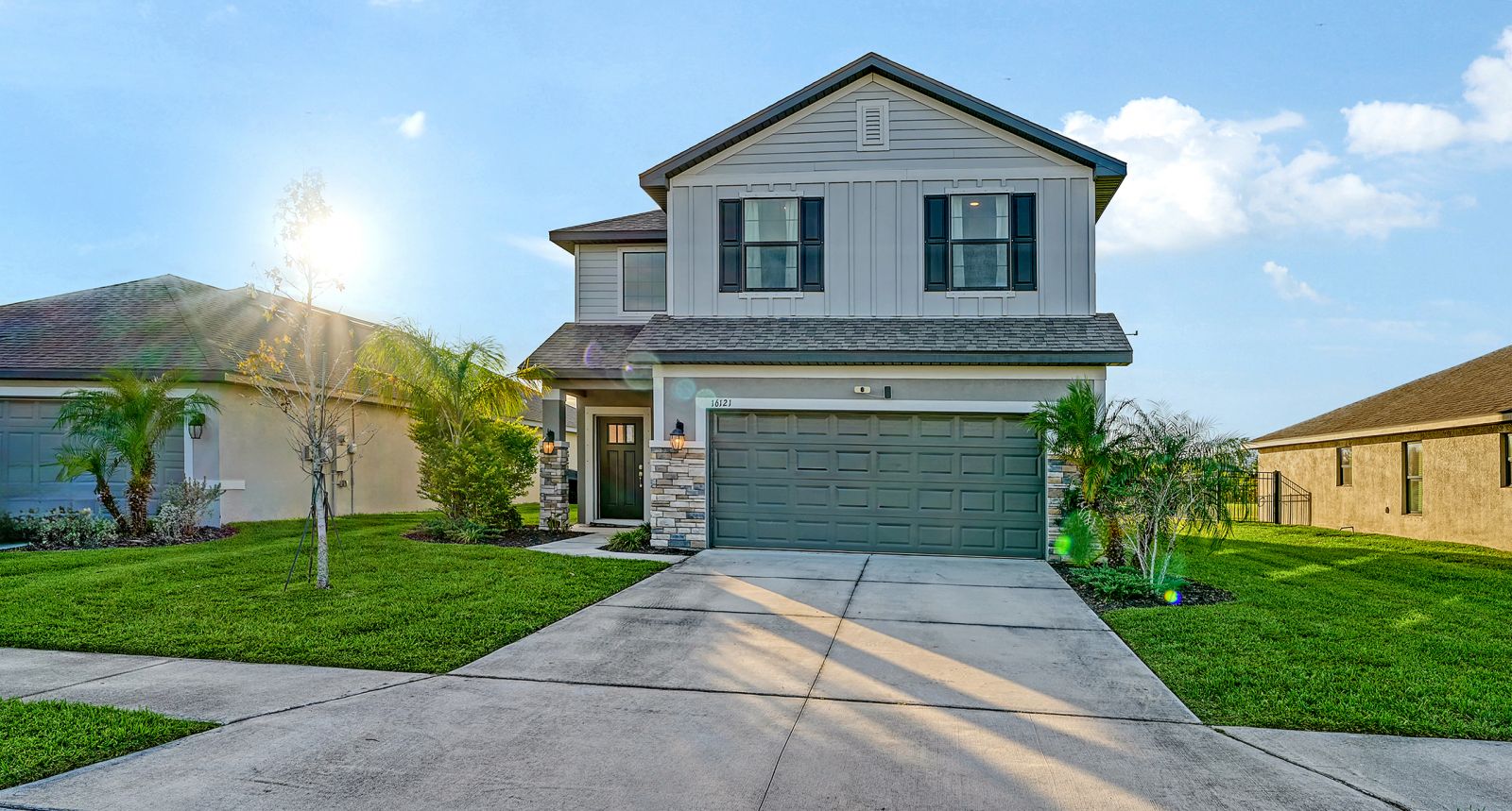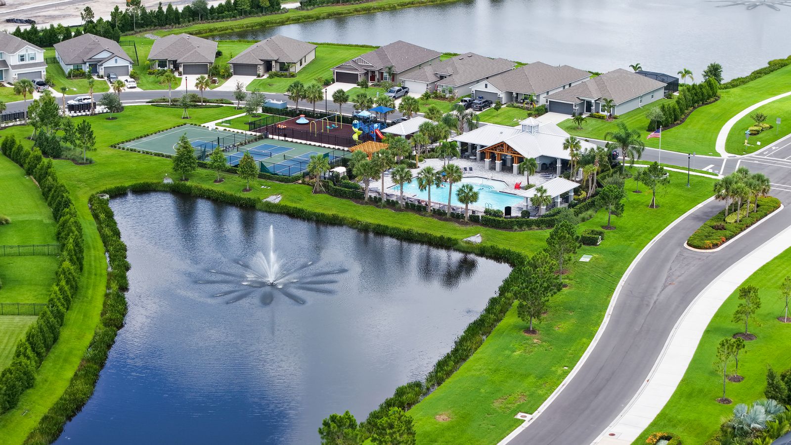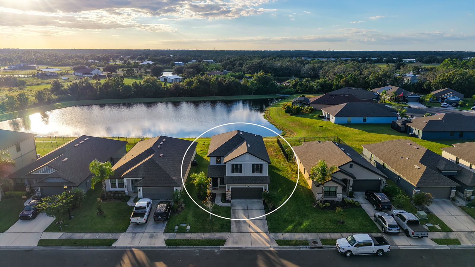 Experience stunning sunset views from your private back patio! This meticulously maintained 2022 home, nestled on a conservation lot in Aviary at Rutland Ranch, offers serene preserve and pond vistas teeming with Florida's diverse wildlife and abundance of Florida birds. Enjoy the perfect blend of modern convenience and tranquil living, with easy access to I-75, US 301, and I-275, yet surrounded by the peace and natural beauty of wild Florida.This spacious home welcomes you with abundant natural light, seamlessly blending open living and dining areas with a beautiful kitchen featuring granite countertops, stainless steel appliances, a large pantry, and a convenient half bath. The expansive center island is ideal for hosting family and friends. Upstairs, discover four well-appointed bedrooms, including a primary suite with a generous walk-in closet and a luxurious spa-inspired bathroom, plus a dedicated laundry room for added convenience.Equipped with a built-in pest control system and reclaimed water irrigation, this home is as practical as it is beautiful. The vibrant Aviary at Rutland Ranch community offers resort-style amenities, including a sparkling pool, playground, pickleball courts, cabana, and scenic nature trails. Located in a thriving area with new shops, restaurants, and top-rated schools, this home is the perfect haven for your family's next chapter. Schedule your tour today!