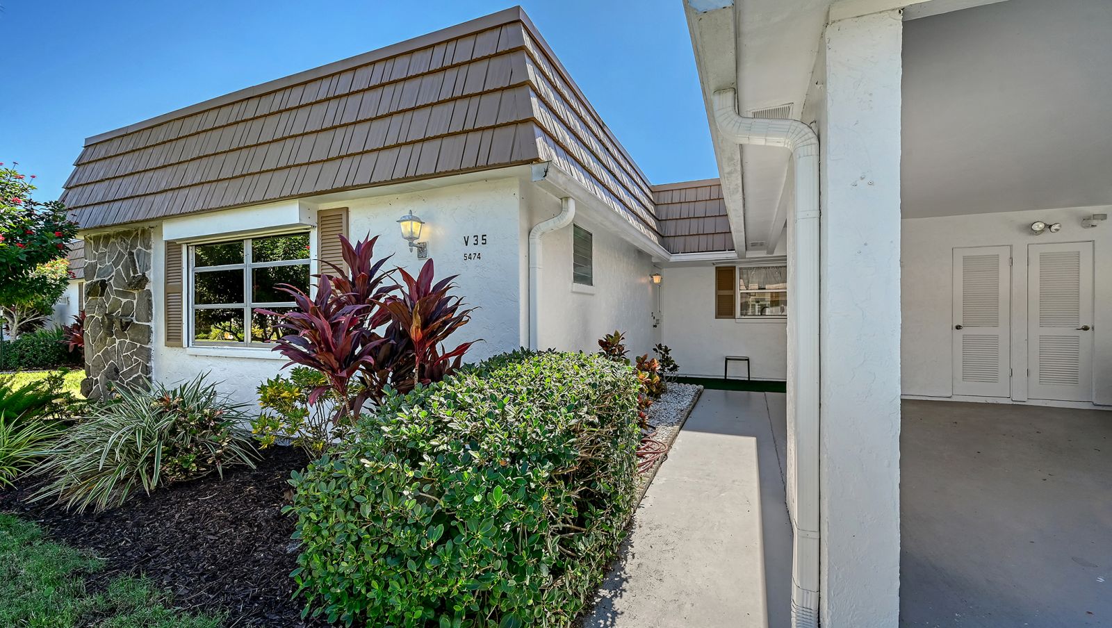 Welcome to Strathmore Riverside Villas, a vibrant 55+ community perfectly situated in the heart of Sarasota. This spacious two-bedroom, two-bath villa offers the ideal blend of comfort, convenience, and endless potential. Light, bright, and airy, the home features an open-concept layout with generous room sizes and an inviting flow throughout. The enclosed lanai, complete with both windows and screens, provides a wonderful year-round living space; perfect for morning coffee, relaxing afternoons, or entertaining friends. The villa also includes a one-car carport and a separate storage and laundry area, offering privacy, security, and plenty of extra space. With just a touch of personalization, this residence can truly shine. The community itself is beautifully maintained and lushly landscaped, creating a serene and welcoming atmosphere surrounded by green space. Strathmore Riverside Villas is known for its active lifestyle and warm sense of community. Residents enjoy a wealth of amenities, including a heated geothermal pool overlooking the marina, clubhouse, fitness center, library, meeting rooms, sauna, and billiards. There's always something happening here; social events, card games, bingo nights, potlucks, concerts, dancing, and more. Boat docks are available on a first-come, first-served basis for just $1,344 per year, and the community is pet-friendly. The location couldn't be better; just minutes from shopping, hospitals, and the world-famous Siesta Key Beach, as well as the rich cultural attractions of downtown Sarasota, including opera, ballet, symphony, and live theatre. Whether you're looking for a full-time residence or a seasonal getaway, this villa lives like a single-family home and offers the perfect opportunity to enjoy Florida's relaxed coastal lifestyle. Don't wait; schedule your private tour today and discover the charm of Strathmore Riverside Villas.