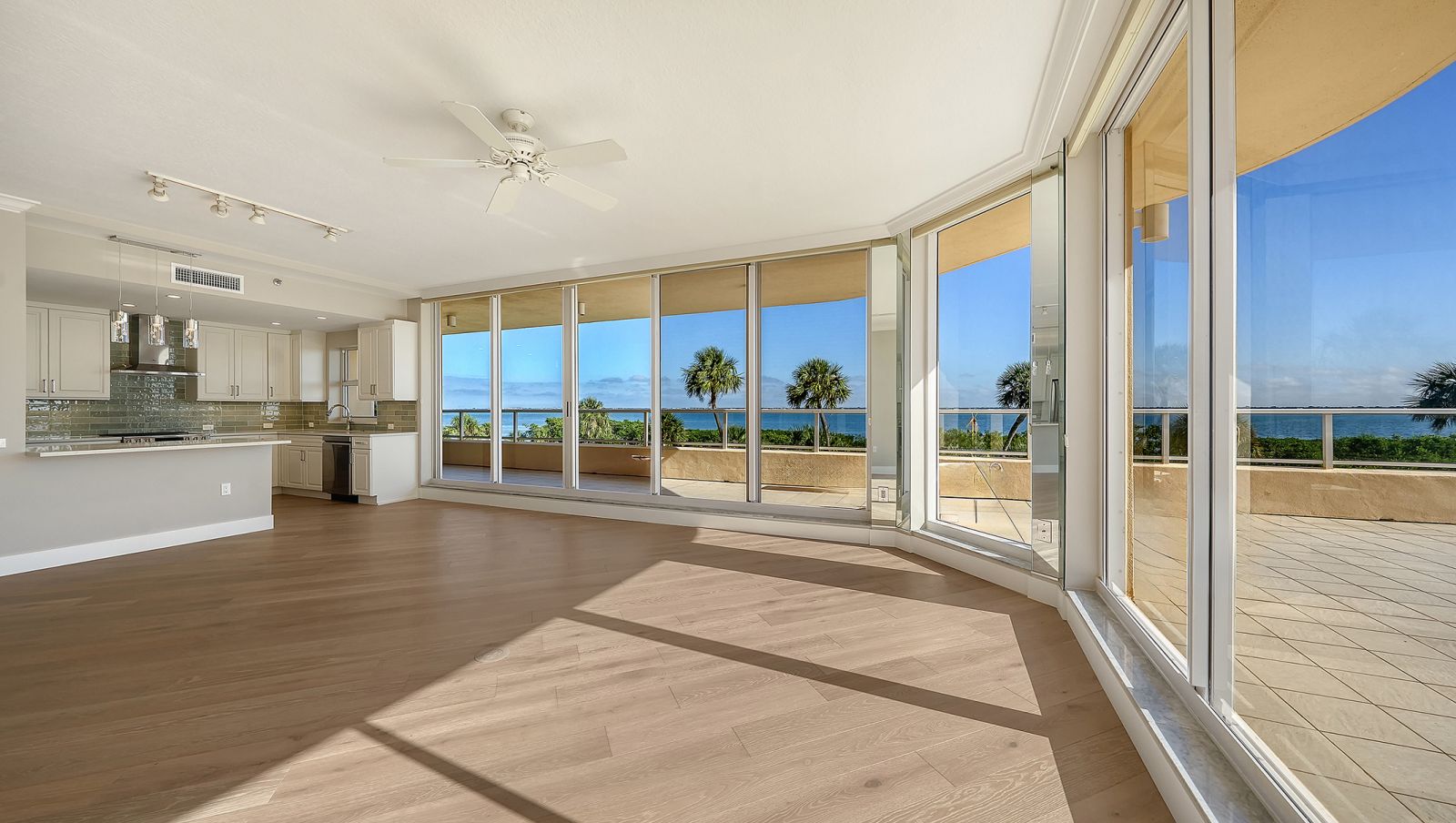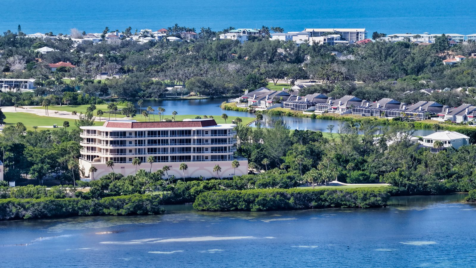 Perfectly positioned within the sought-after Grand Bay community, this Aruba residence blends convenient design, refined comfort, and a premier Longboat Key lifestyle. Overlooking Sarasota Bay, the golf course, and the downtown skyline, this two-bedroom home offers a combination of privacy, panoramic vistas, and recent designer enhancements.Set behind the gates of Bay Isles, this corner residence is bathed in natural light from expansive floor-to-ceiling glass doors and windows. The open great room serves as the heart of the home, offering a flexible space for entertaining and relaxing, framed by captivating views of the bay and city beyond. A wraparound balcony extends the living area outdoors, ideal for morning coffee, al fresco dining, or evening sunsets.The 2025 kitchen renovation introduced a complete reimagining of this important space--featuring custom cabinetry, removal of overhead soffits for added height and openness, upgraded plumbing, new LED and under-cabinet lighting, and all-new hardwood flooring carried throughout the residence. The modernized kitchen blends timeless finishes with functional elegance, offering ample workspace and stylish appeal for both everyday use and entertaining.The primary suite is a tranquil retreat, capturing water views and featuring an en-suite bath with dual sinks, a soaking tub, and a separate walk-in shower. A spacious walk-in closet provides exceptional storage. The guest bedroom doubles as an office or den and includes built-in storage and a Murphy bed, allowing effortless flexibility for visiting guests. Additional features also include two under-building parking spaces and a private storage locker.Within the secure and beautifully maintained Grand Bay community, residents enjoy an array of luxury amenities, including two resort-style swimming pools and spas, fully equipped fitness center, and clubhouse, tennis courts and pickleball, 24-hour guarded gate entry and on-site management. Grand Bay's location behind the Bay Isles gates grants owners private beach access to the Gulf of Mexico through the Bay Isles Beach Club. The Longboat Key Club golf course and marina are nearby, offering exceptional recreation options.Beyond the gates, you're moments from St. Armands Circle's boutiques and fine dining, the vibrant arts and theater scene of downtown Sarasota, and world-renowned beaches along Longboat and Lido Key. Whether you're seeking a seasonal escape or a year-round residence, this Grand Bay condominium captures the essence of coastal sophistication--where modern updates meet the serenity of bayfront living.