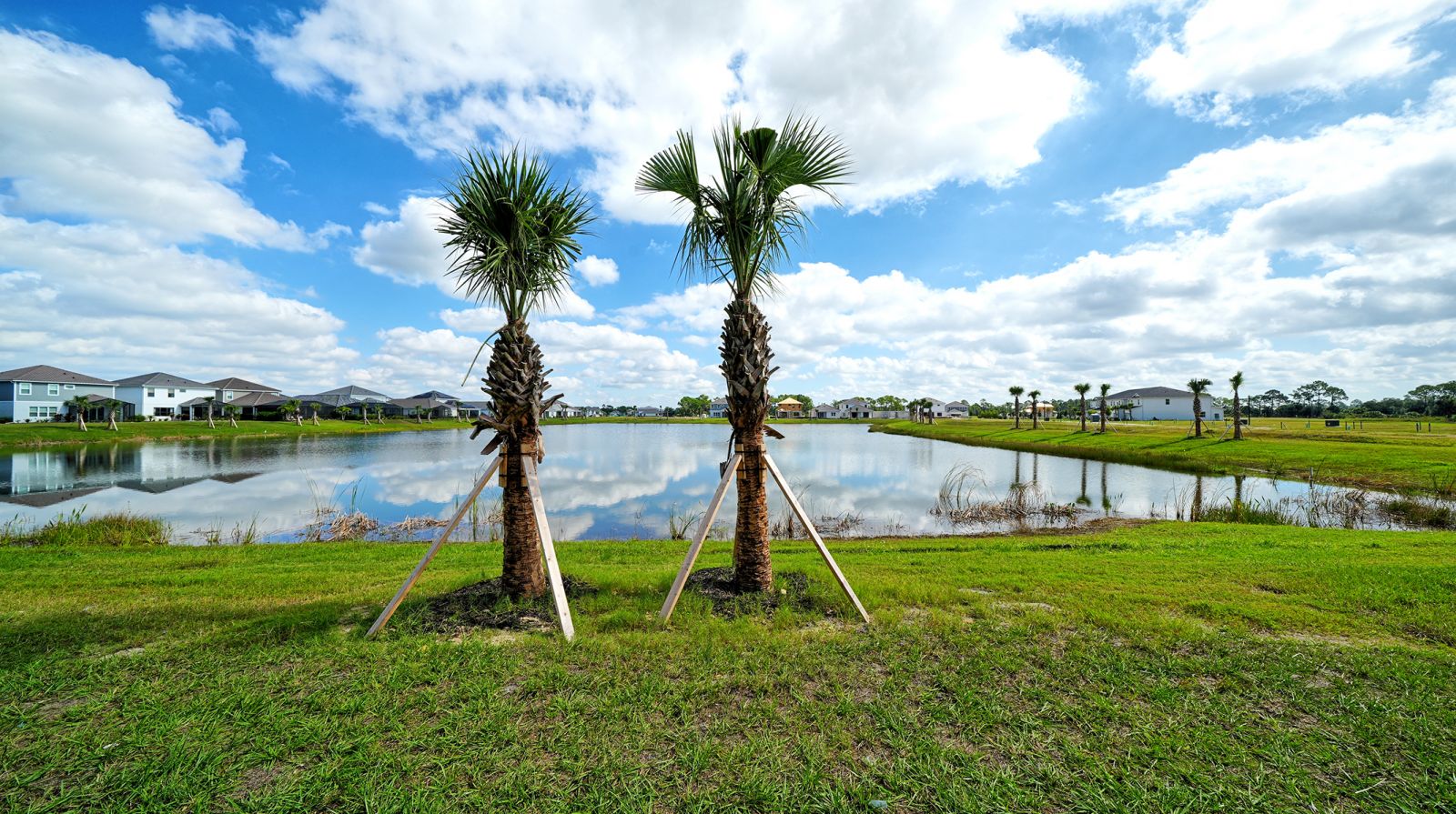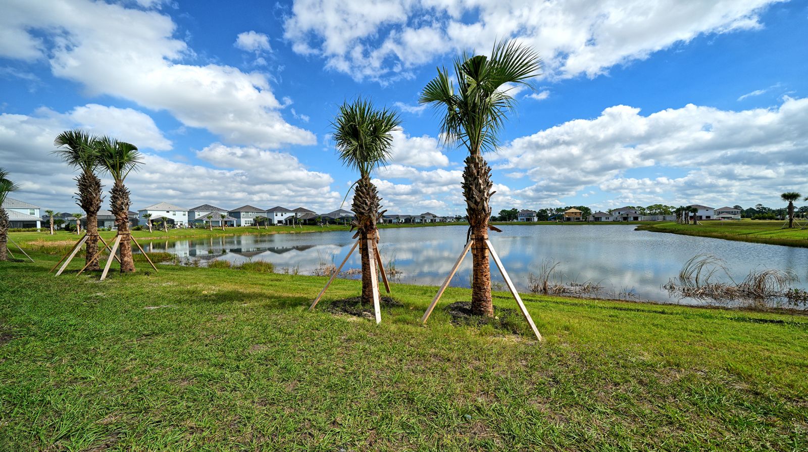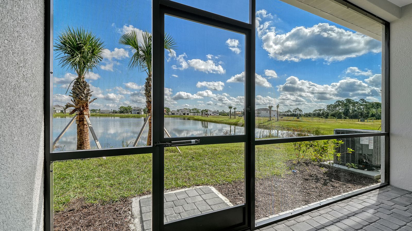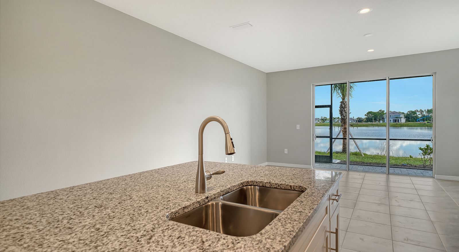 This stunning 1,790-square-foot end-unit Avery is flooded with natural light from two large south-facing windows and an 8-foot triple sliding glass door overlooking the serene Grand Park pond. The nearly 20' wide great room at the rear of the home provides an open, airy space perfect for relaxing or entertaining. Enjoy abundant storage with the convenience of a spacious garage, pantry under the stairs, large lanai closet, and a full laundry room. With three bedrooms, there's plenty of room for everyone. Residents enjoy full access to Grand Park's extensive amenities, trails, and lush green spaces. Don't miss this rare end-unit opportunity!