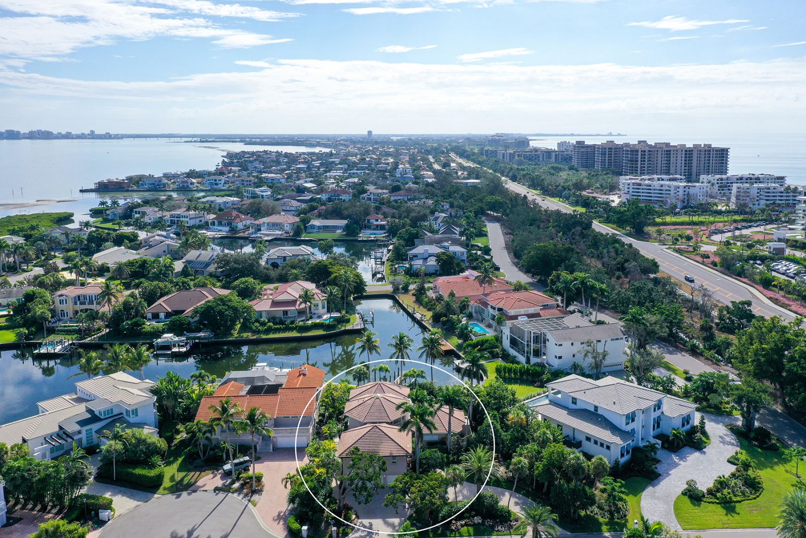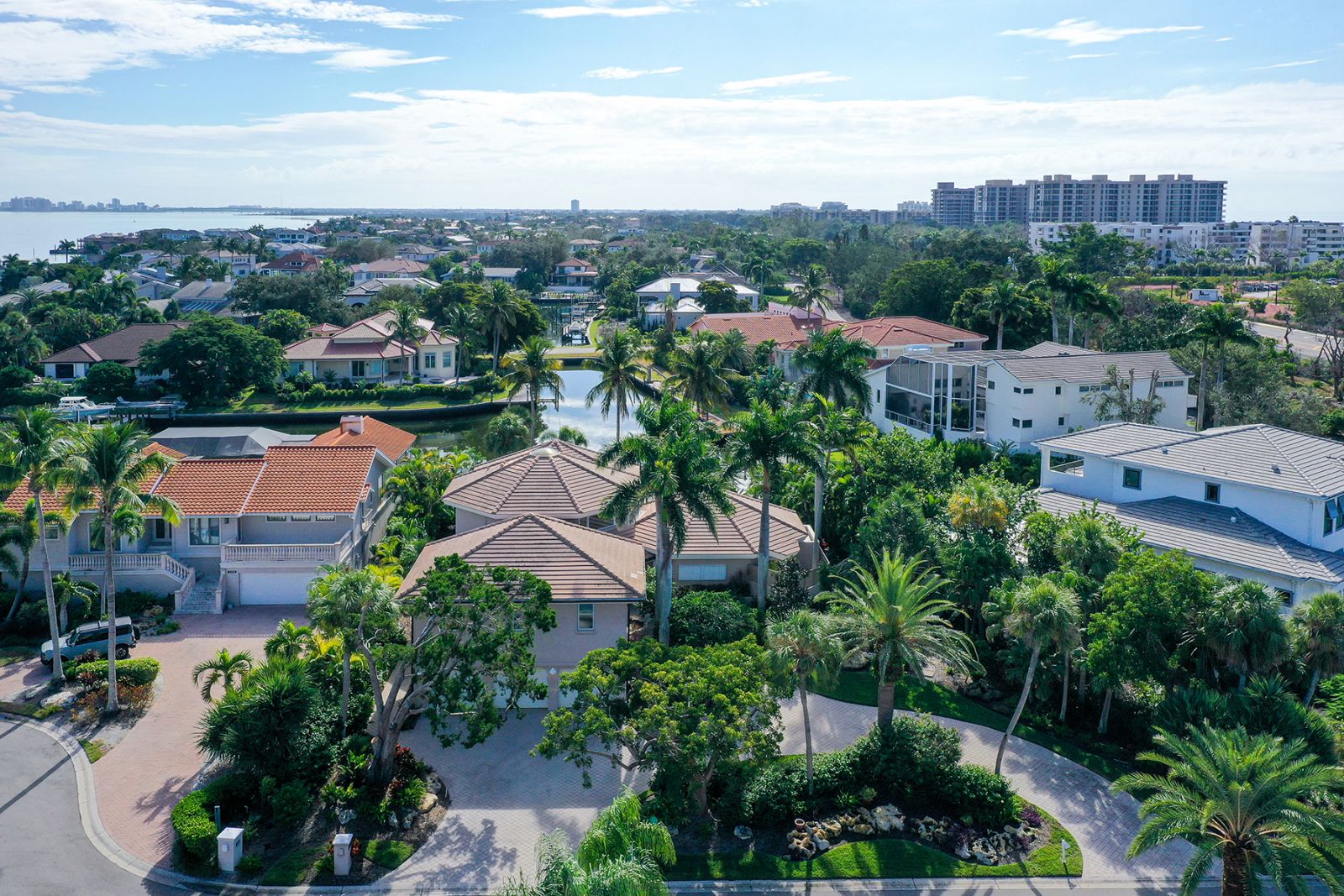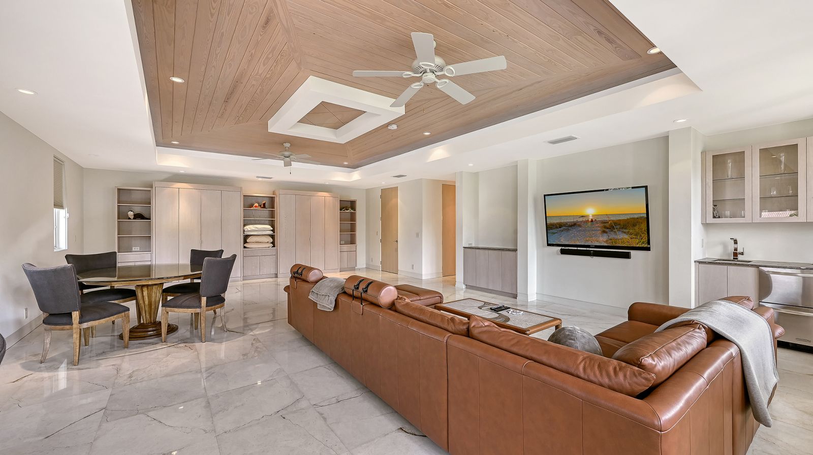 Bay Isles Harbor, Longboat Key - Stunning 4BR/5.5BA, 5,080 SF waterfront home in the prestigious Bay Isles Harbor section of Longboat Key. This architectural masterpiece features a dramatic great room with soaring tongue-and-groove ceilings and floor-to-ceiling windows showcasing sweeping water views. The circular kitchen offers stone counters, top-tier appliances, and integrated Lutron lighting, audio, and video systems. The first-floor primary suite opens to the pool and screened patio with a spa-style bath and private office. A newer 32x23 guest suite includes two Murphy beds, entertainment area, steam shower, and sauna. Enjoy a private dock on protected deep sailboat water with a 12,000 lb. lift. Bay Isles residents enjoy gated security and access to the exclusive Bay Isles Beach Club on the Gulf of Mexico.