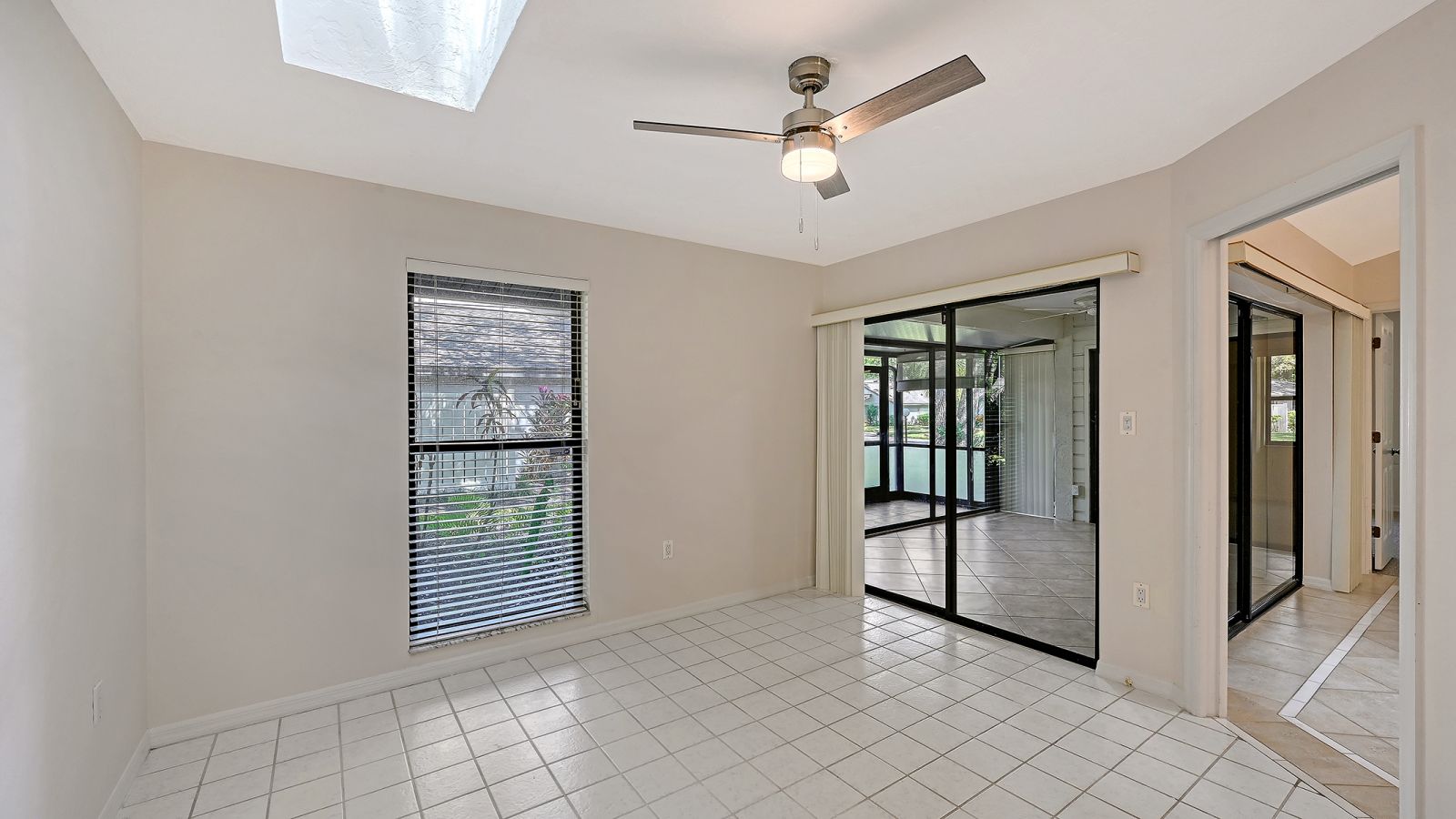One or more photo(s) has been virtually staged. You will love Oak Forest with all the mature trees and grassy landscaped areas and its LOCATION! Just minutes to Siesta Key Beaches, Downtown shopping, restaurants, social events and theater. This community is impeccably maintained and modernized. Recent updates include roofs, exterior painting and paver driveways. The Association remains diligent regarding their finances and are fully reserved. Conveniently located directly across from the community pool and tennis courts, the entire interior of this end unit was just painted and all of the popcorn has been removed. The guest bathroom totally remodeled with a walk-in shower. New never been used stainless steel appliances: refrigerator, stove and dishwasher are included. AC was replaced in 2025. Tile flooring throughout the villa with vinyl flooring for easy maintenance in the guest bedroom. Primary bedroom has brand new carpet and offers two walk-in custom designed closets for maximum efficiency. Primary bathroom designed with dual sinks and a walk-in shower with glass doors. The Primary Bedroom, Living Room and Kitchen have sliding glass doors to access the extended private lanai. This community is not an age restricted community, is pet friendly and offers tennis, pickleball, heated pool and clubhouse. Whether you are a snow bird or a full-time resident this property checks desired boxes for your new home. No CDD fees!