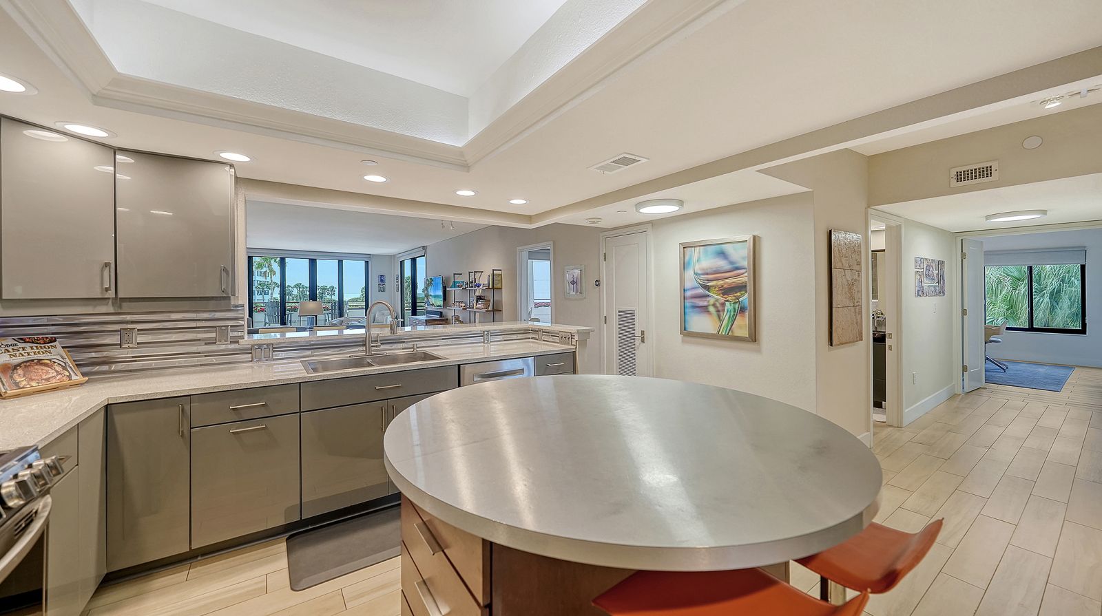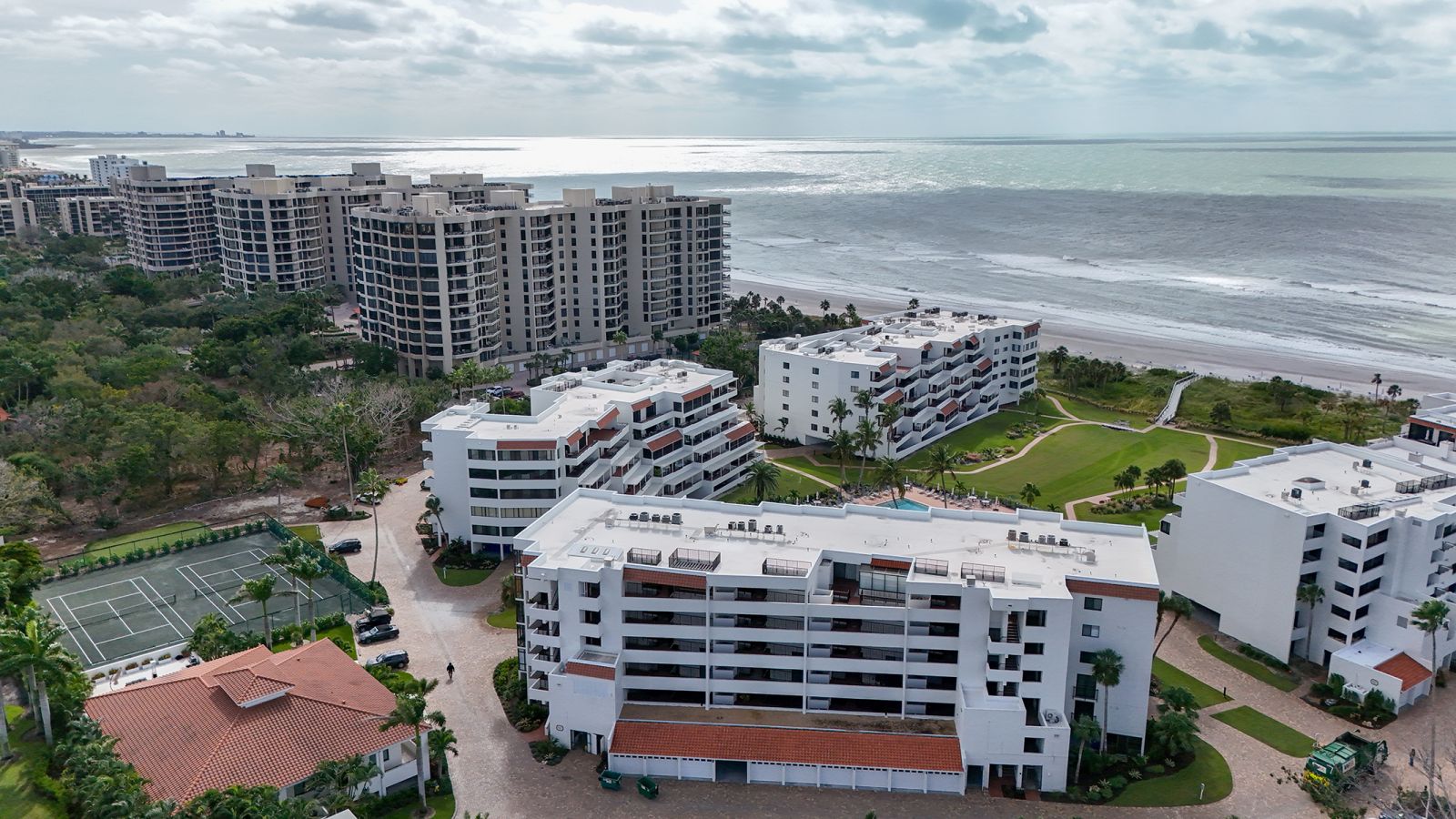 Welcome to luxury Gulf-front living at The Players Club. This sophisticated residence is a three-bedroom, three-bathroom, end-unit condominium. The great room and two primary suites each provide beautiful Gulf views and private access to the two spacious covered terraces. Its thoughtfully designed floor plan maximizes vistas and natural light across an expansive interior. The residence has undergone a comprehensive renovation, featuring a modern kitchen outfitted with custom cabinetry, quartz countertops, a center island adorned with stainless steel and espresso wood base cabinets, as well as a contemporary tile backsplash and high-end appliances. Additional upgrades include new porcelain plank flooring, freshly interior painting updated all interior doors and hardware, moldings, baseboards designer window treatments, and enhanced lighting throughout. All bathrooms have been beautifully updated with new cabinetry, countertops, tile, and premium fixtures. The great room layout with two master suites, each providing water views and private access to the extended terrace. Impact-resistant windows and sliding doors have been installed to comply with the latest building codes. For convenience, the unit includes both an assigned under-building parking space and an enclosed garage, accompanied by an external storage room. The Players Club demonstrates a commitment to excellence with recent engineering and reserve studies, ensuring ongoing community stability and maintenance. Elevator systems have been modernized and certified. The association maintains fully funded reserves for long-term reliability. Spanning 11 pristine Gulf-front acres on Longboat Key, this private community offers unparalleled amenities. Life at The Players Club is defined by luxury and leisure. Residents enjoy a newly renovated clubhouse equipped with a state-of-the-art fitness center, library and meeting room, catering kitchen, various gathering spaces, four Har-Tru tennis courts with pickleball capabilities, a 70-foot heated saltwater pool and spa, putting green, fire pits, outdoor grills, lushly landscaped grounds, deeded beach access, and the assurance of 24/7 gated security and on-site management. Players Club is ideally situated near the new St. Regis Resort, with optional membership available at The Longboat Key Club & Resort, granting privileged access to golf, dining, tennis, and the only deep-water marina on the island. Beyond the community, residents benefit from proximity to local conveniences, including Publix, CVS. and boutiques within two minutes, and the upscale shops and restaurants of renowned St. Armands Circle just five minutes away. The famed cultural amenities, many fine dining options, and shopping in downtown Sarasota is just 15 minutes from The Players Club.