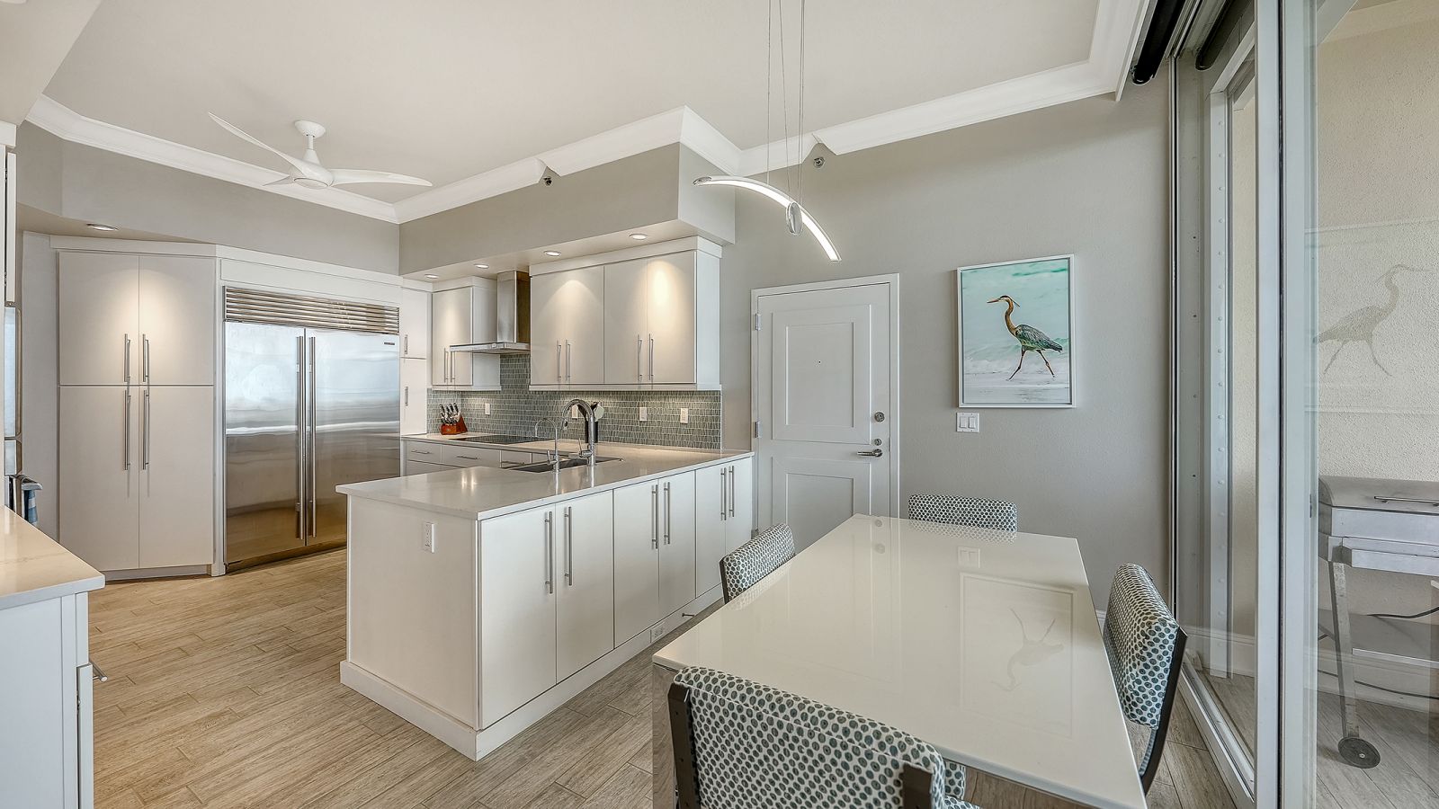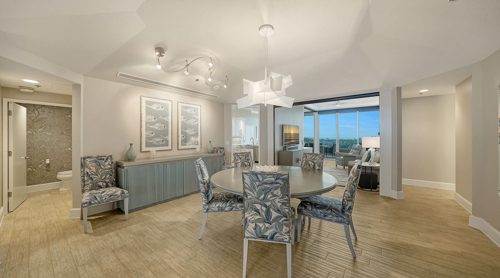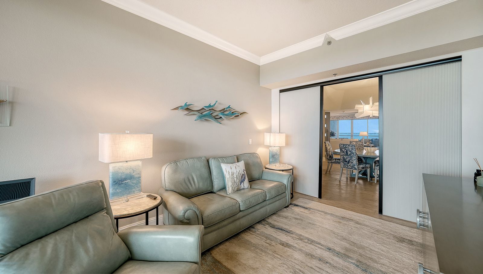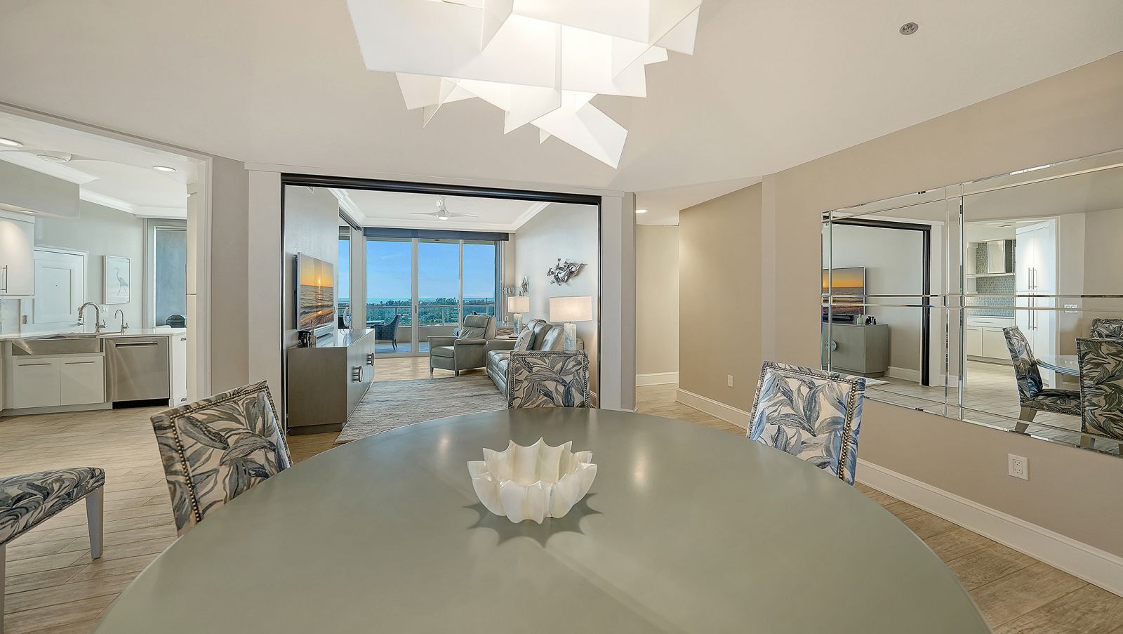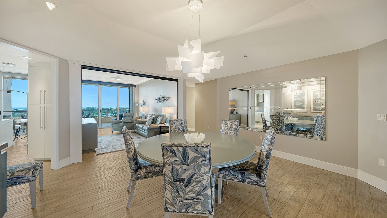 Under contract-accepting backup offers. Experience breathtaking views from this rarely available ninth-floor residence in Grand Bay on Longboat Key. Ideally positioned to capture direct Sarasota Bay vistas, the sparkling downtown Sarasota skyline, and even Gulf of Mexico views, a unique advantage not offered by lower-floor units. From this elevation, enjoy year-round sunsets over the Gulf right from your private terrace. This spacious two-bedroom, 3.5-bath layout also includes a convertible den/third bedroom, offering flexibility for guests or a home office. The residence has been attractively updated, offering a fresh, modern feel throughout. The owners also recently installed new electric storm shutters, providing added peace of mind. Grand Bay offers resort-style living with two Har-Tru tennis courts, a state-of-the-art clubhouse, fitness center, large resort pool and 24-hour security. Deeded access to the Bay Isles Beach Club is included. A prime opportunity to enjoy luxury living with some of the captivating views on Longboat Key.