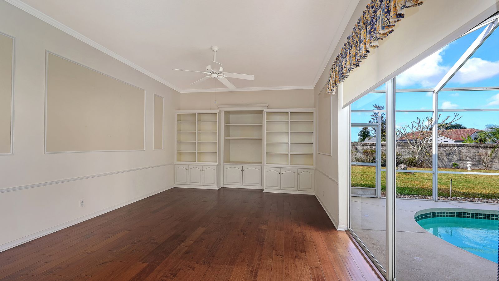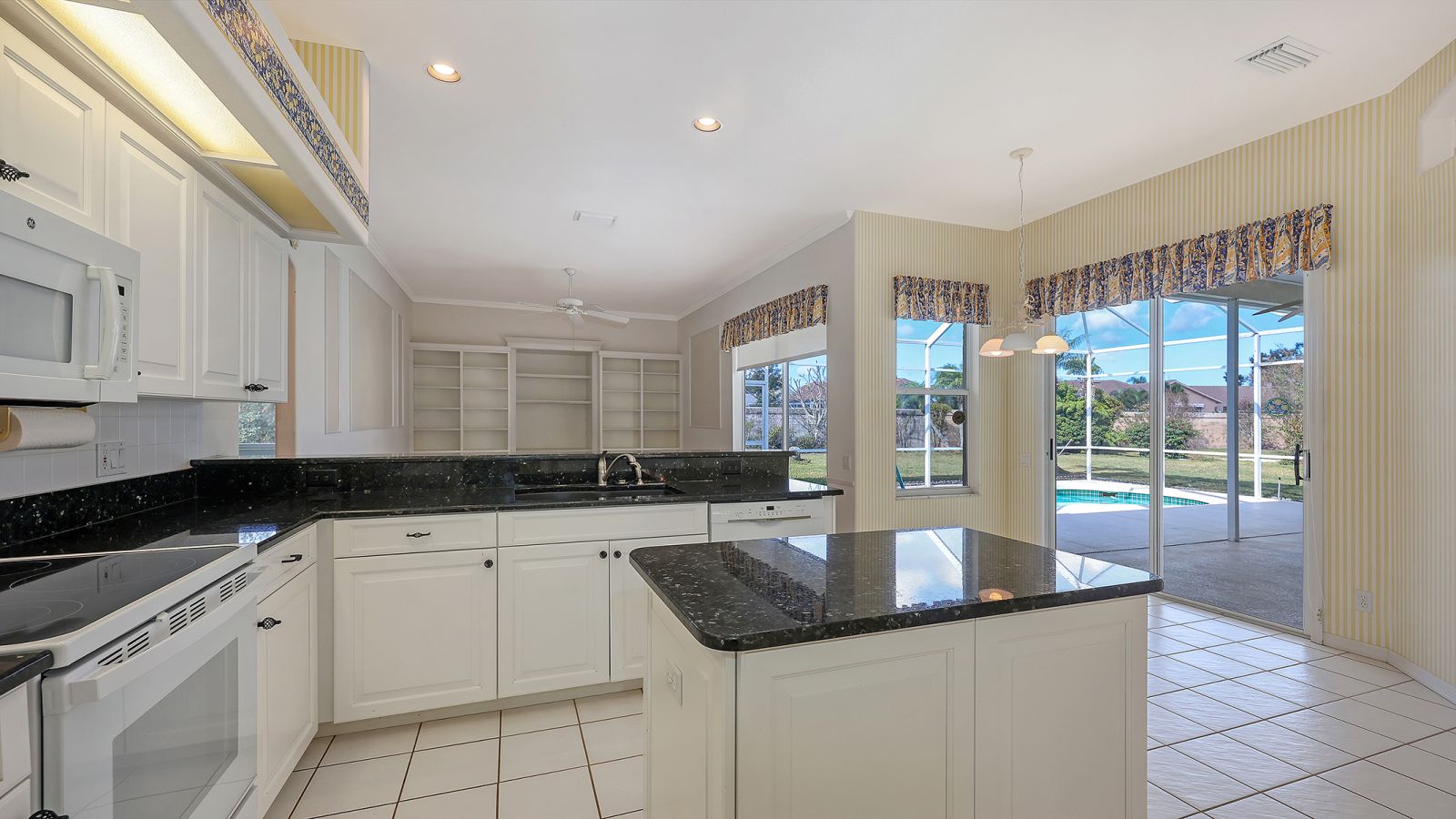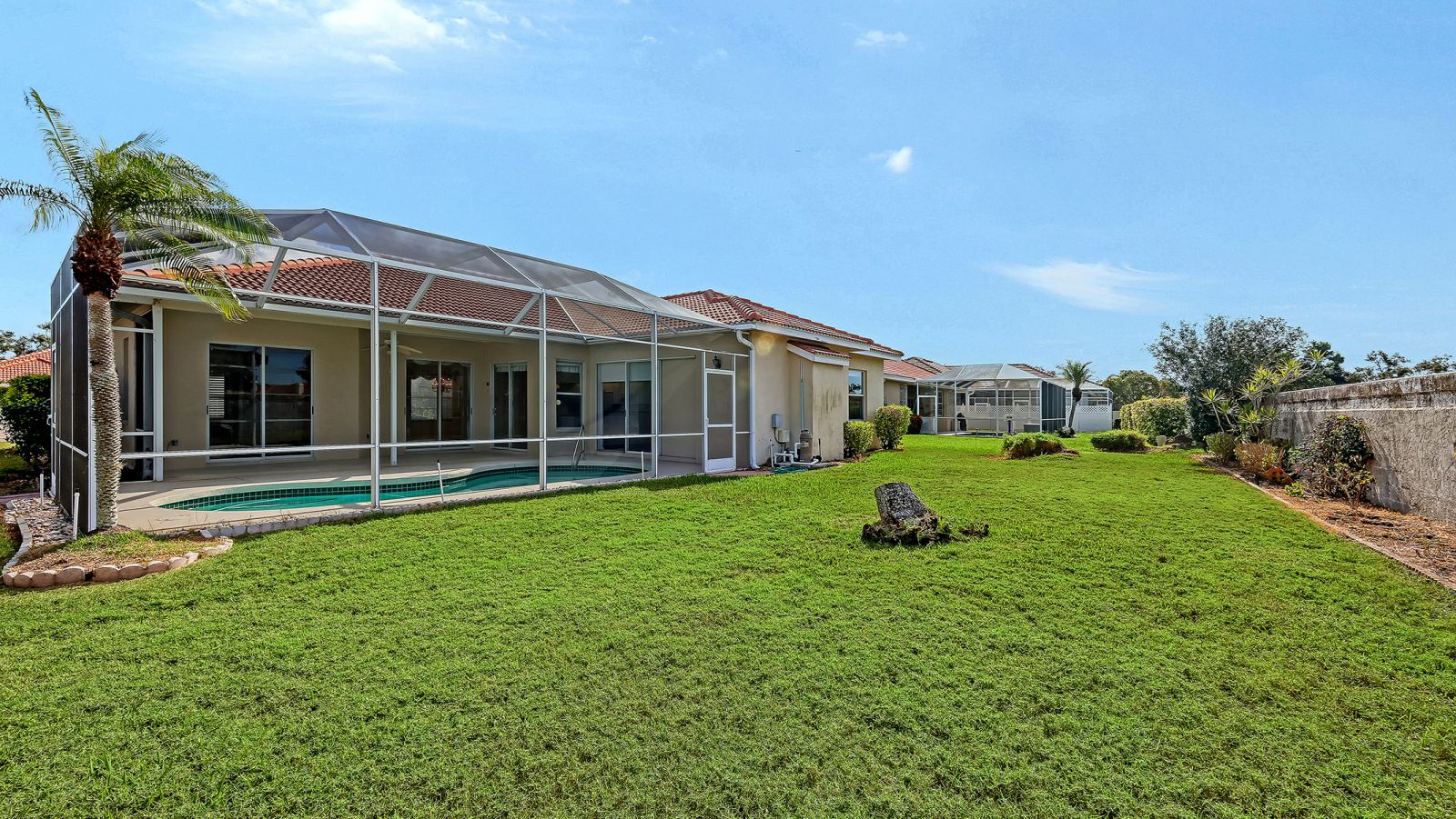 One or more photo(s) has been virtually staged. The Trails is one of Sarasota's most sought-after neighborhoods. This 1996 custom home welcomes you the moment you arrive with its 2023 barrel-tile roof, paver driveway and walkway, and handsome navy double entry doors with etched glass. Inside, high ceilings and an immediate view of the pool and spacious caged lanai create a bright, open first impression. The kitchen features black marbled granite counters, white cabinetry, and a generous breakfast bar adjoining the caf-style dining area and large family room with built-ins and wood flooring. Two sets of sliding doors--including one full-pocket slider--fill the space with natural light and invite you to enjoy the covered lanai and pool. The primary suite, set apart for privacy, also offers wood floors, sliders to the lanai, a large walk-in closet, dual vanities, a private water closet, soaking tub, and walk-in shower. The Trails is prized for its location just off University Parkway--close to world-famous beaches, University Town Center, Lakewood Ranch, I-75, and the Sarasota International Airport, and all that downtown Sarasota has to offer. Low fees and no CDD. Amenities include a heated community pool, tennis courts and community room.