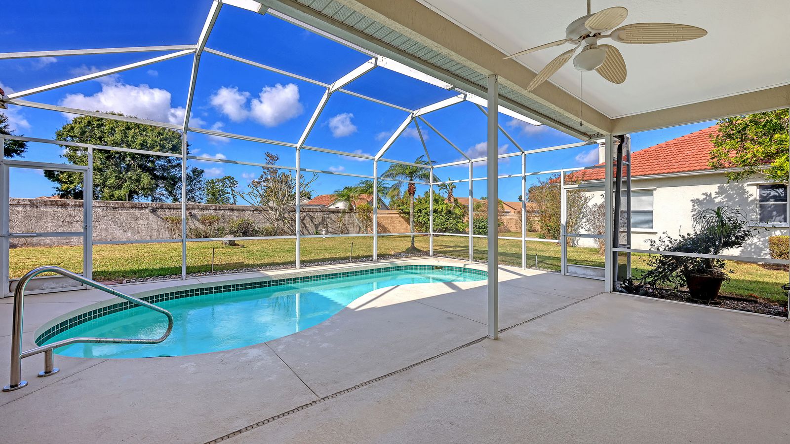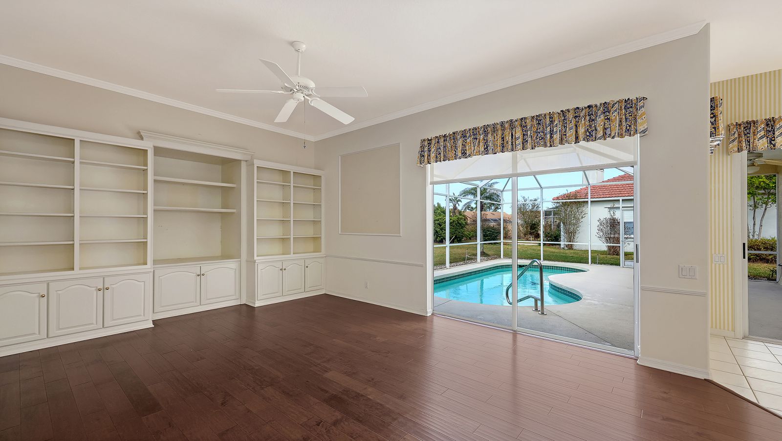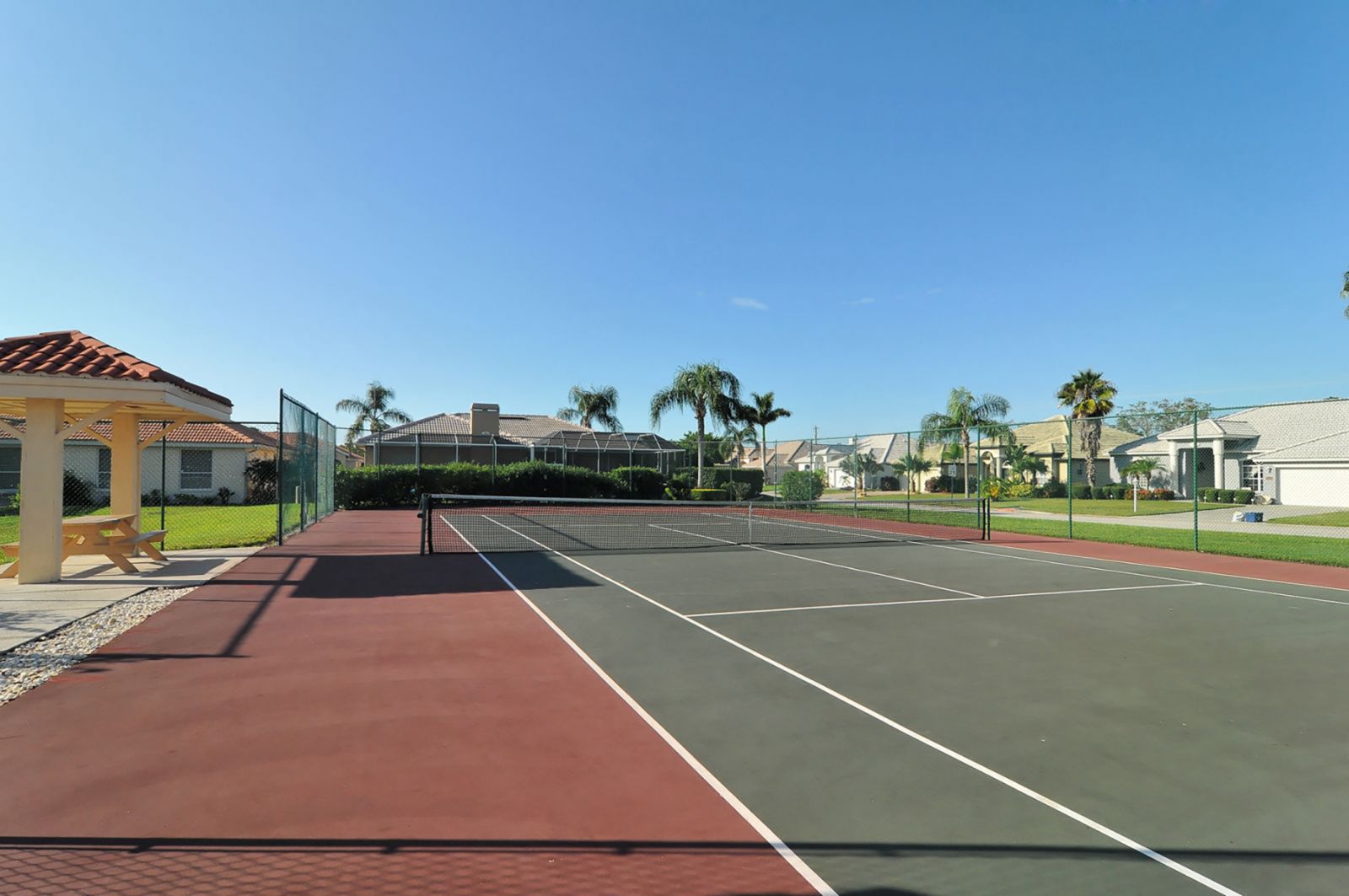 One or more photo(s) has been virtually staged. The Trails is one of Sarasota's most sought-after neighborhoods. This 1996 custom home welcomes you the moment you arrive with its 2023 barrel-tile roof, paver driveway and walkway, and handsome navy double entry doors with etched glass. Inside, high ceilings and an immediate view of the pool and spacious caged lanai create a bright, open first impression. The kitchen features black marbled granite counters, white cabinetry, and a generous breakfast bar adjoining the caf-style dining area and large family room with built-ins and wood flooring. Two sets of sliding doors--including one full-pocket slider--fill the space with natural light and invite you to enjoy the covered lanai and pool. The primary suite, set apart for privacy, also offers wood floors, sliders to the lanai, a large walk-in closet, dual vanities, a private water closet, soaking tub, and walk-in shower. The Trails is prized for its location just off University Parkway--close to world-famous beaches, University Town Center, Lakewood Ranch, I-75, and the Sarasota International Airport, and all that downtown Sarasota has to offer. Low fees and no CDD. Amenities include a heated community pool, tennis courts and community room.